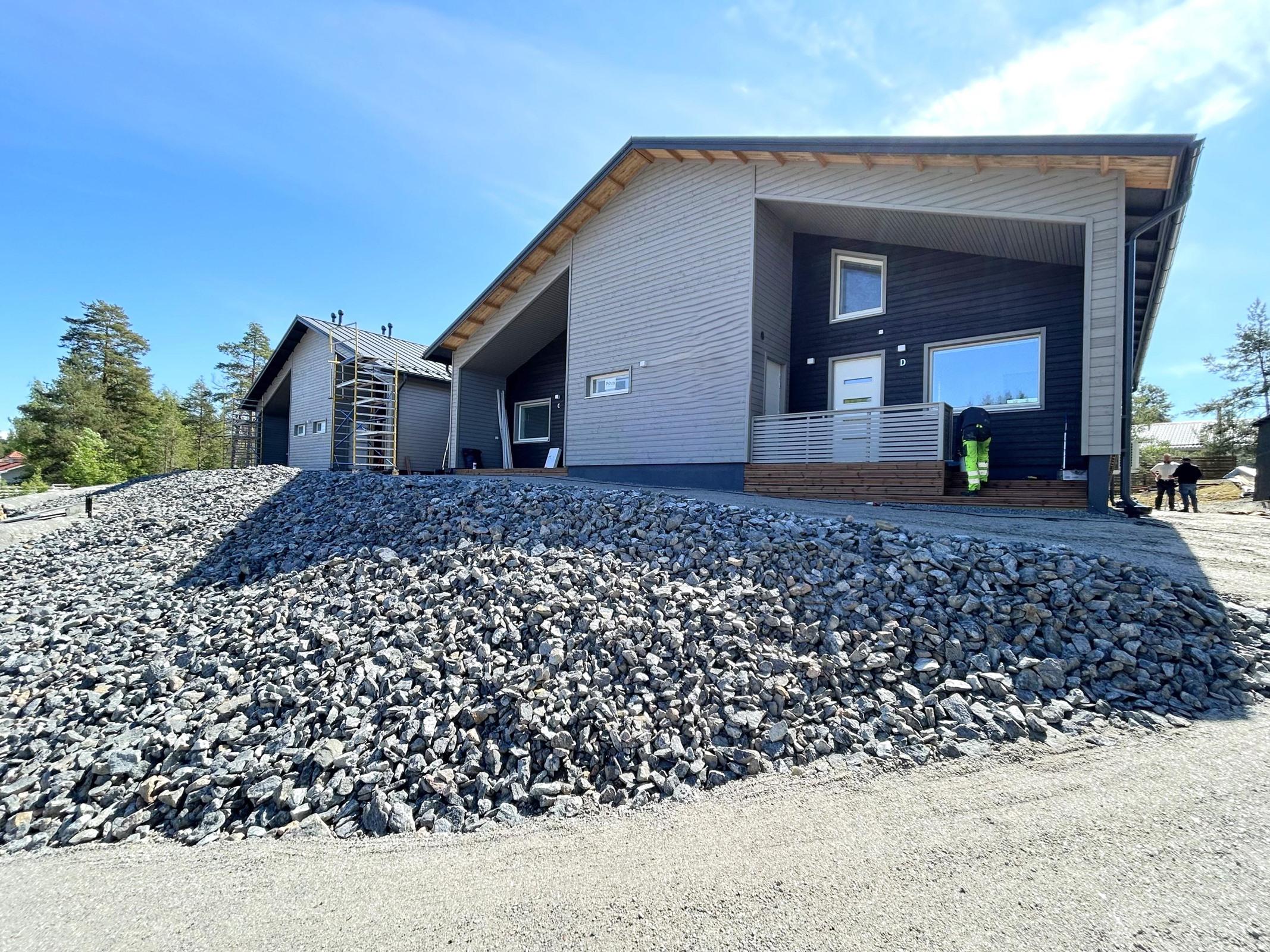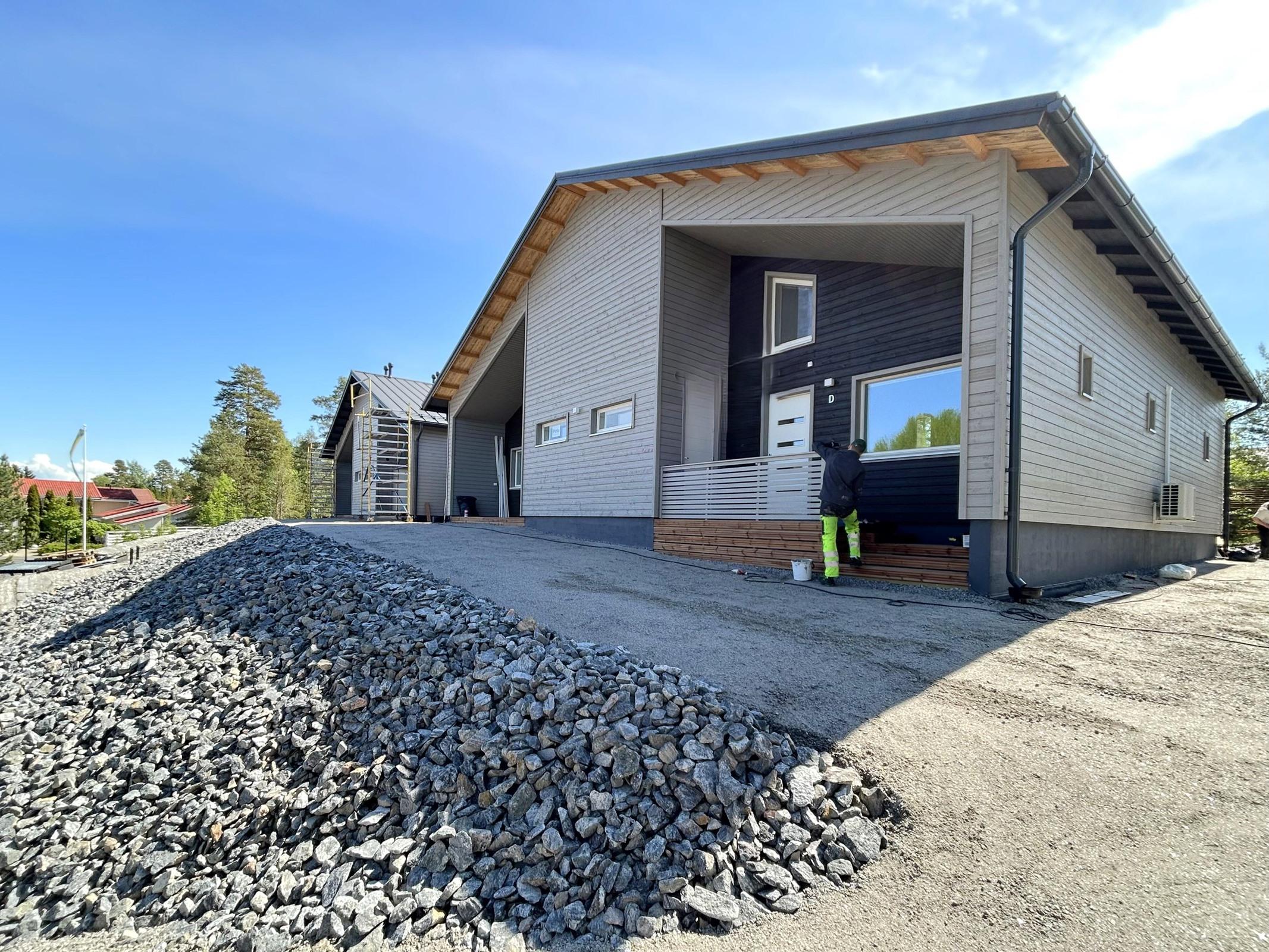 Tuomoniemessä, upealla paikalla ylväästi kallion päällä, juuri valmistunut neljän asunnon rivitaloyhtiö.