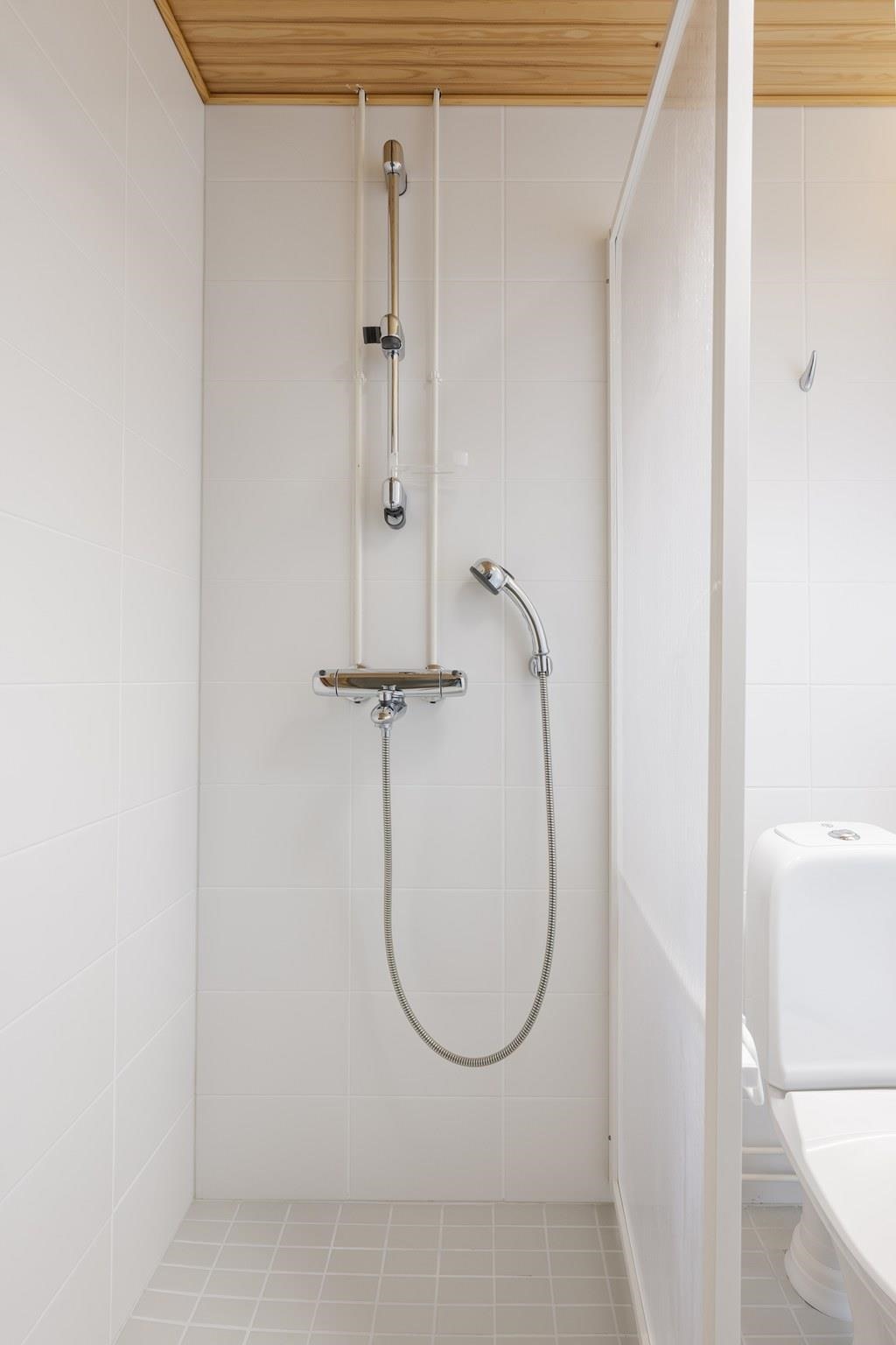 - Sauna, sähkökiuas, suihku, suihkuseinä, peilikaappi, kaapit, allaskaappi, pesukoneliitäntä, lattialämmitys, kiinteät valaisimet.