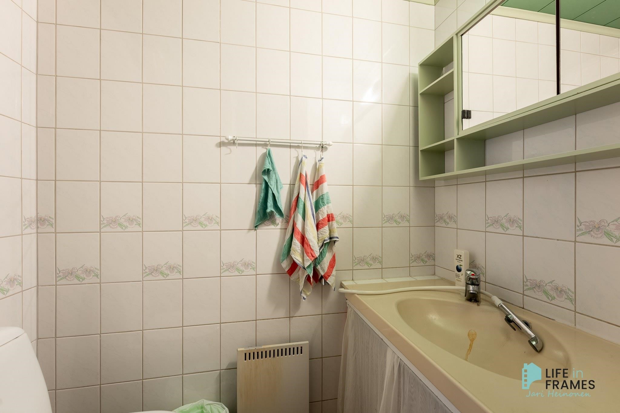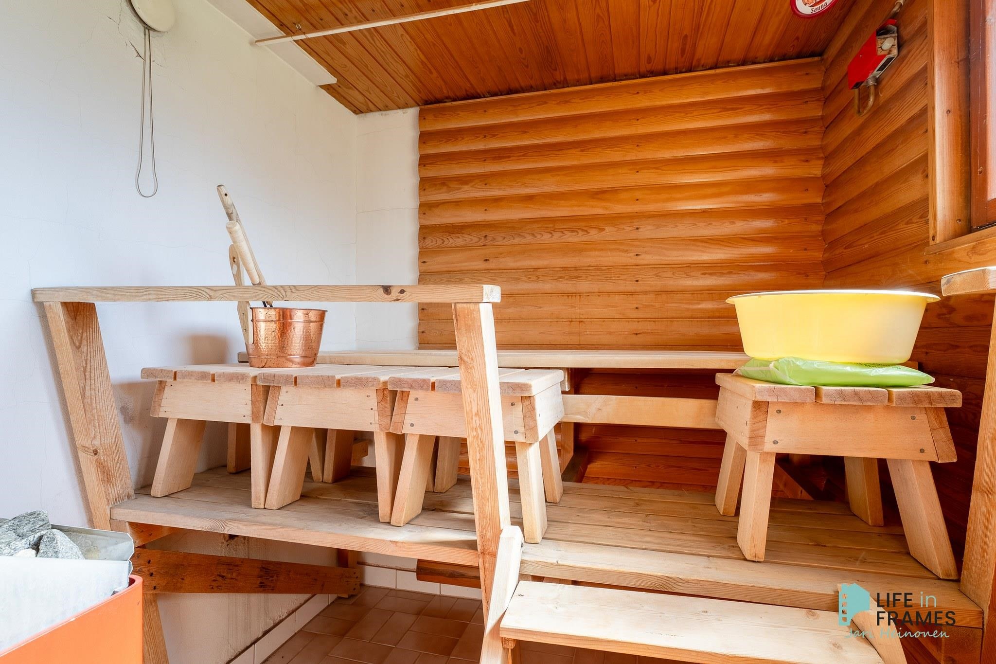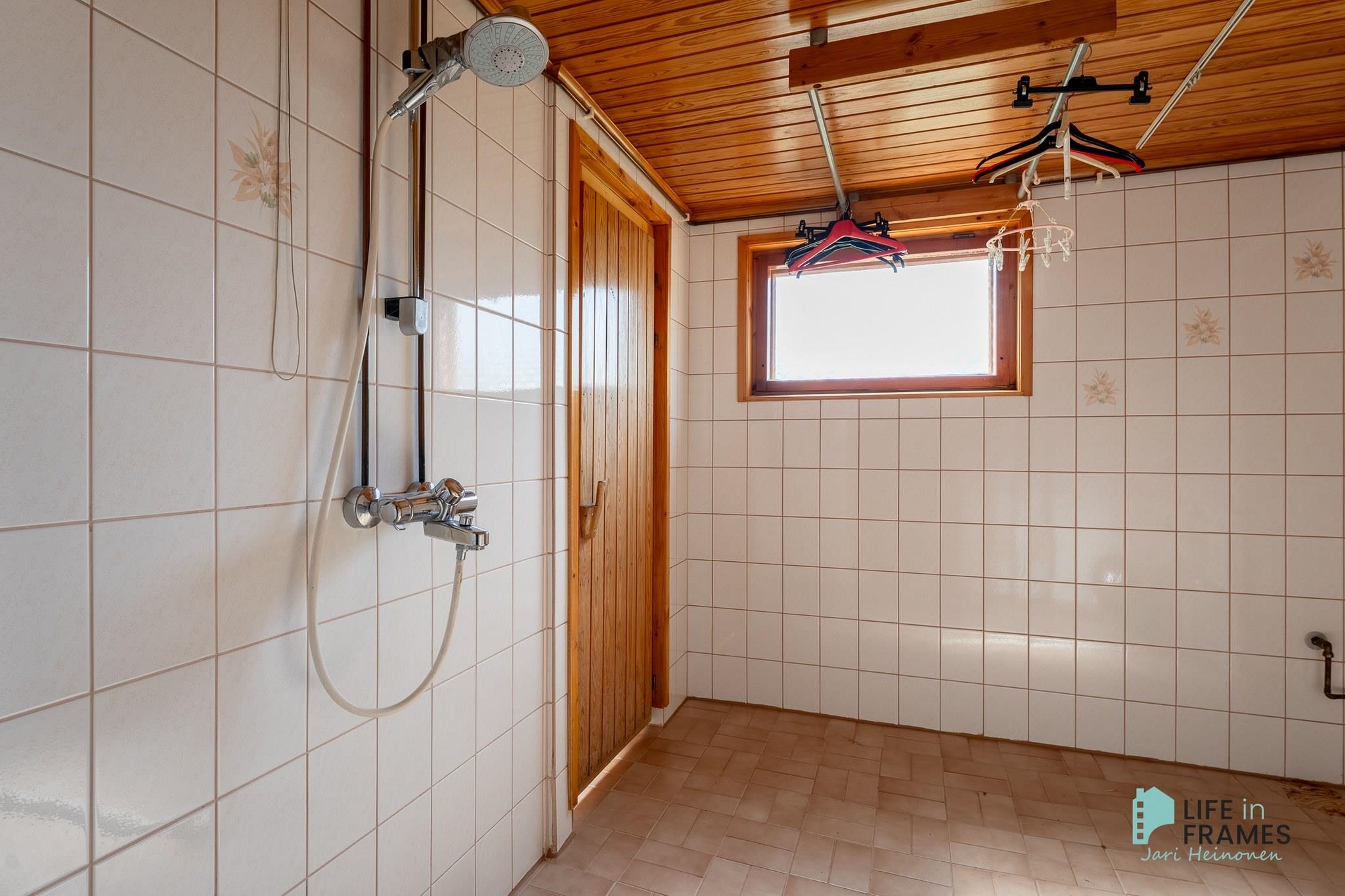 - Sauna, sähkökiuas, kylpyhuone, erillinen wc, suihku, peilikaappi, pesukoneliitäntä, lattialämmitys pesuhuoneessa.