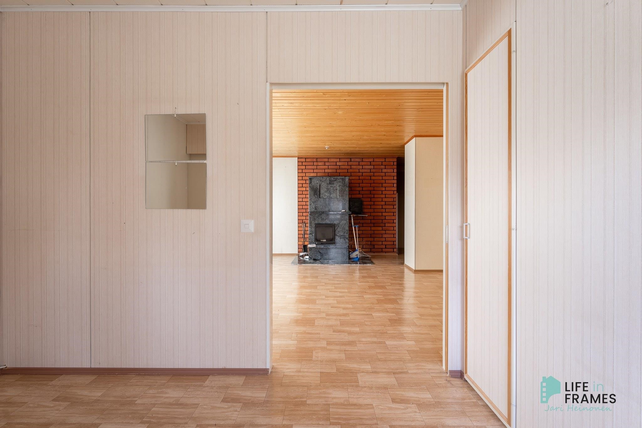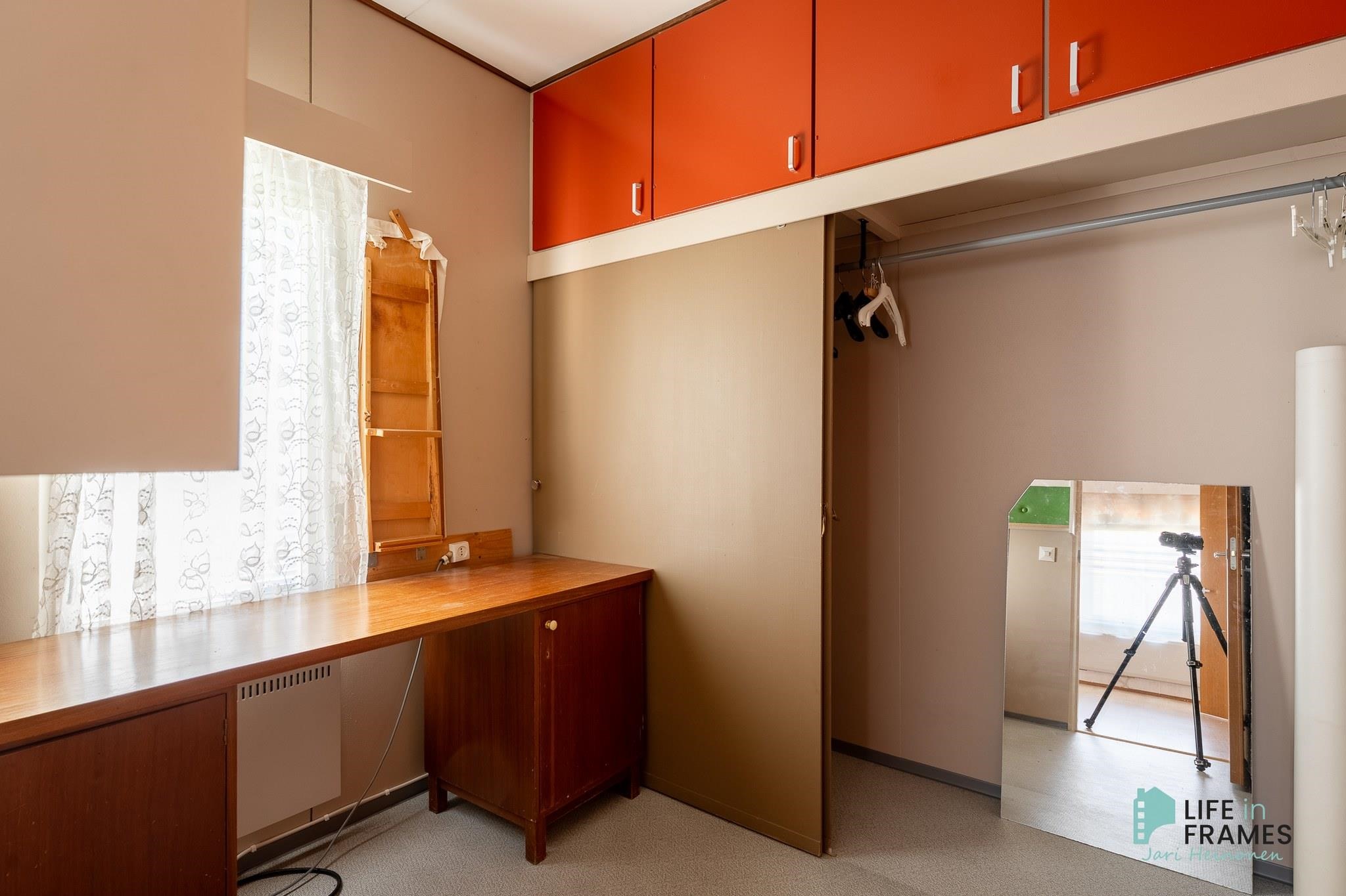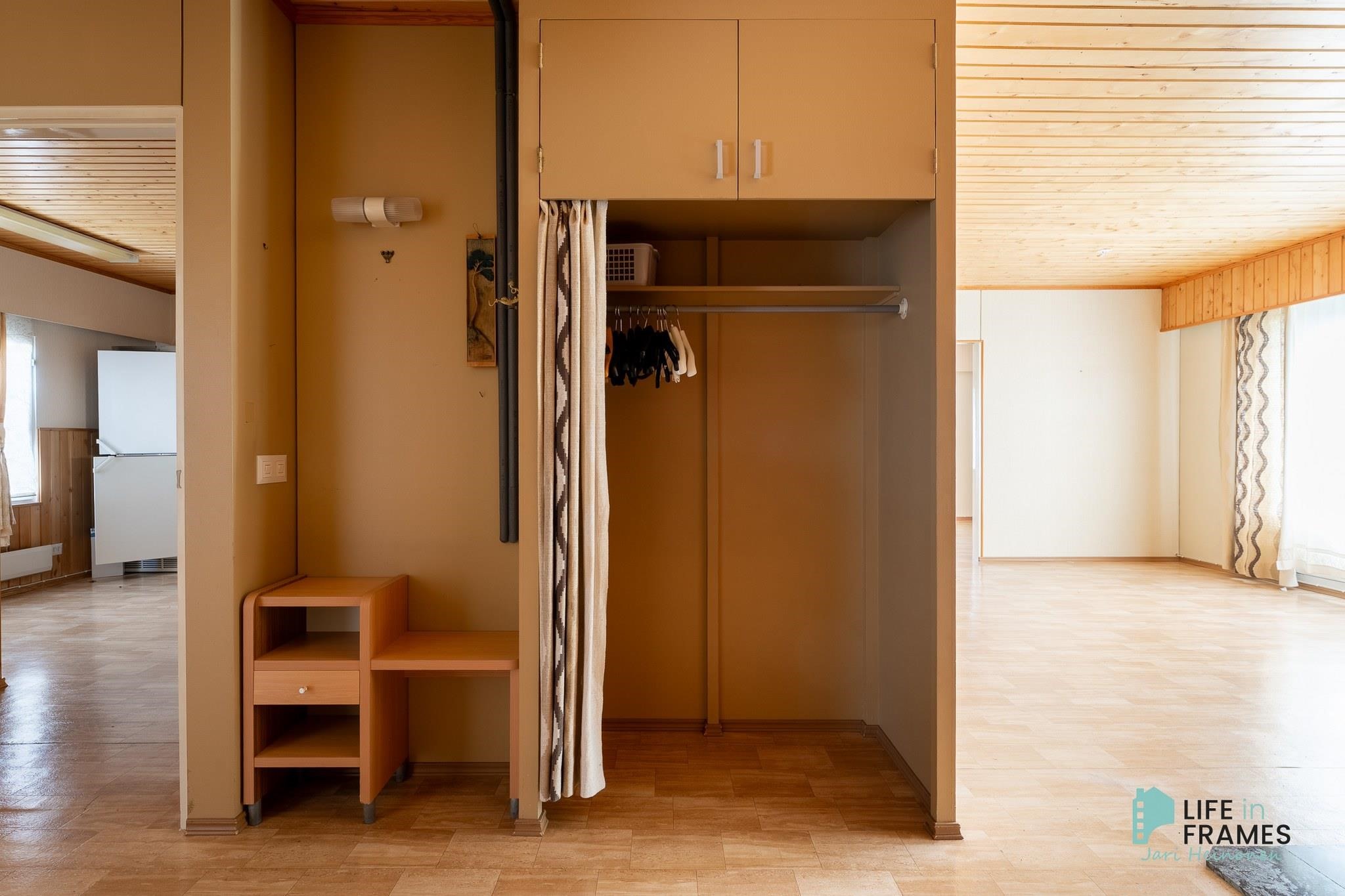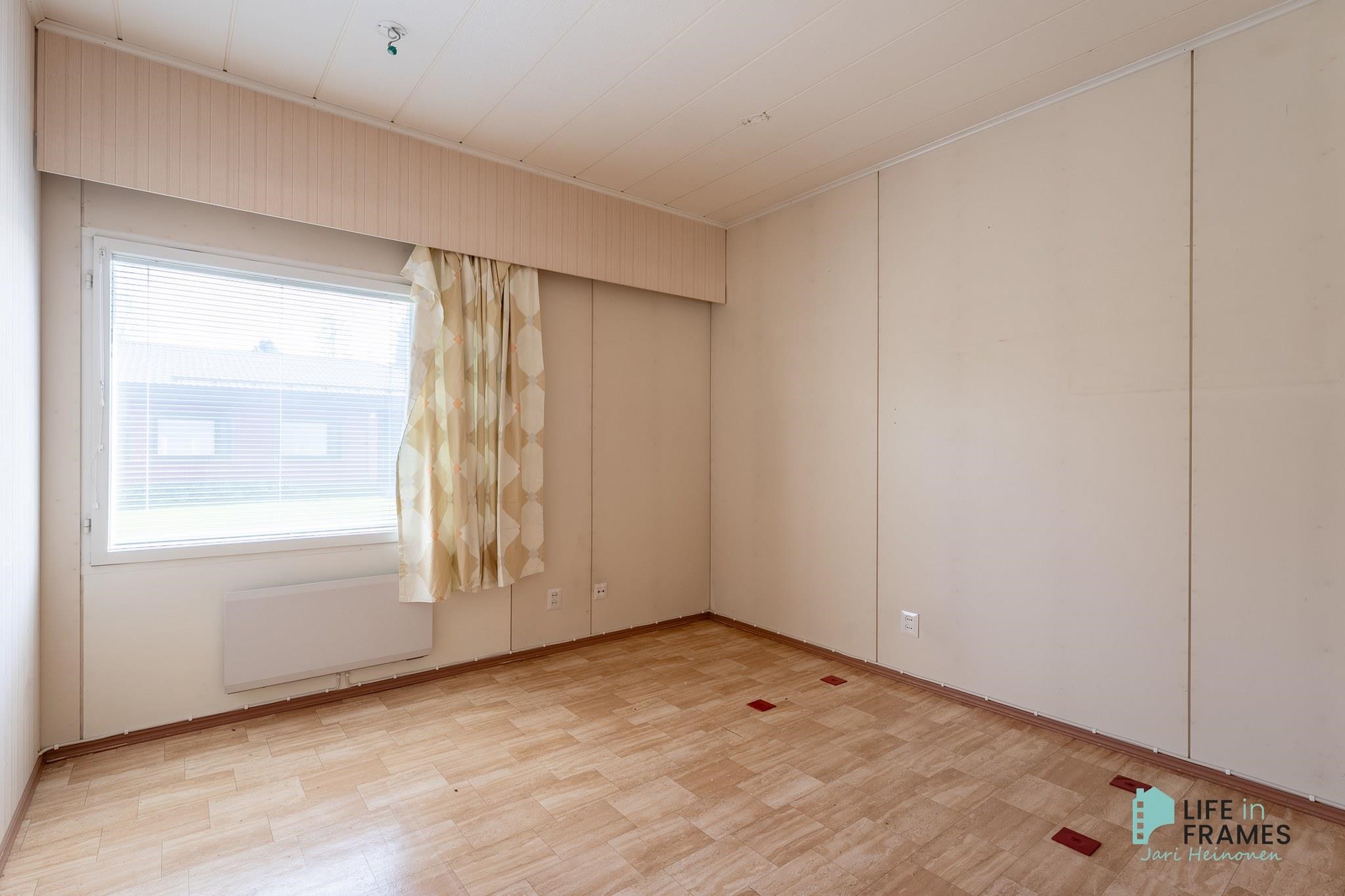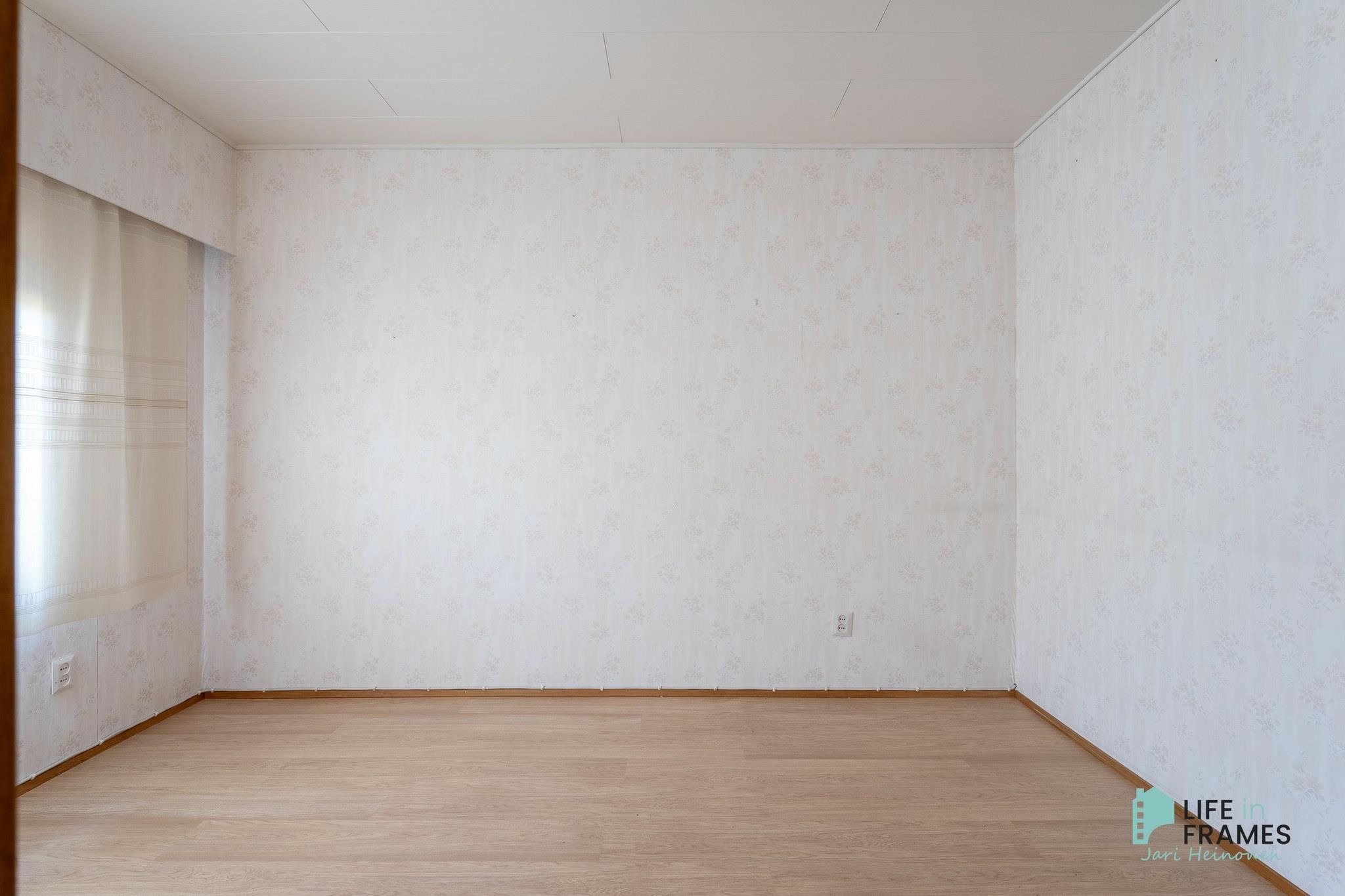 - Huonetilat: seinissä tapetti, maali tai tiili, lattiassa laminaatti tai muovimatto.