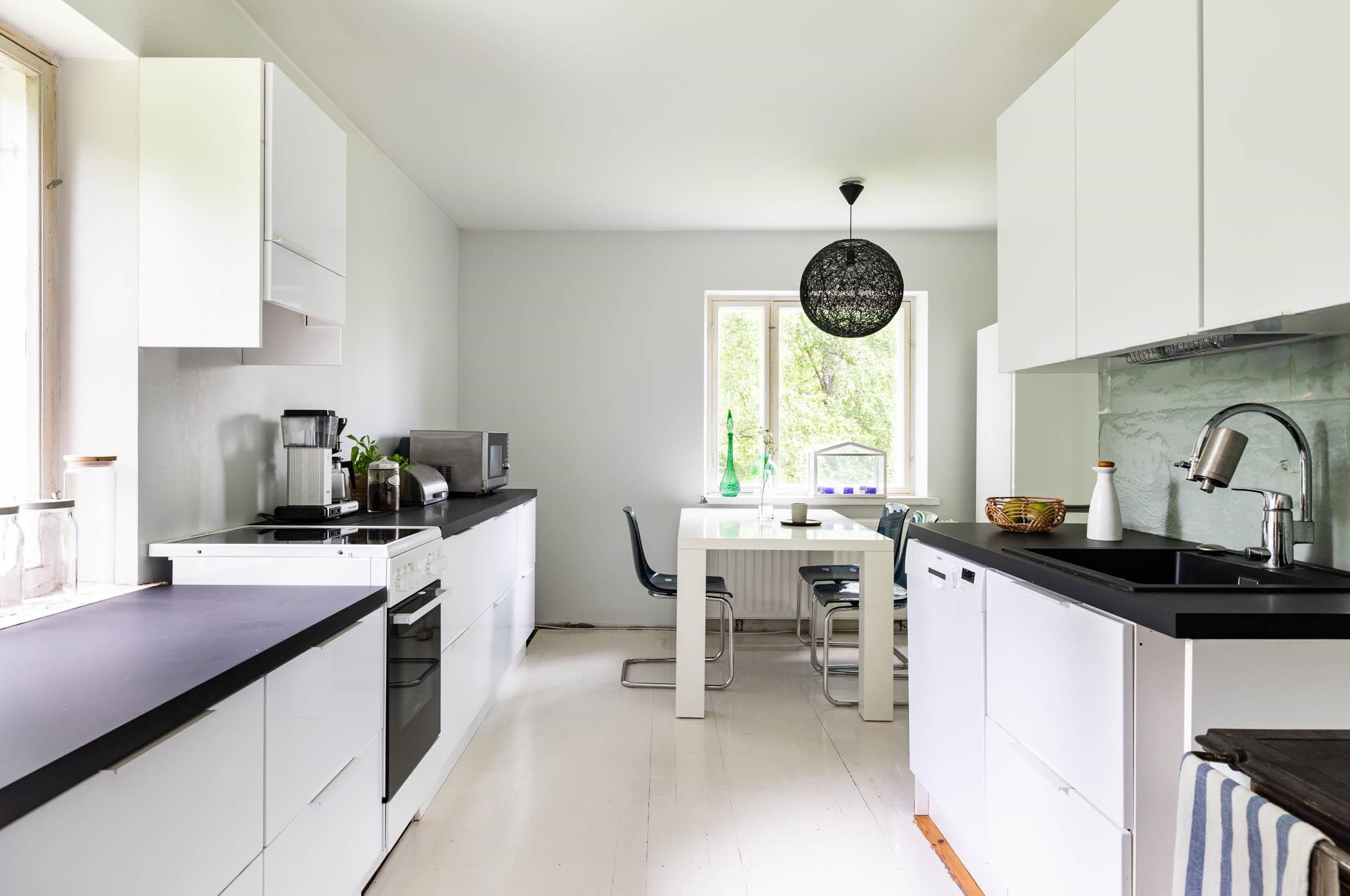 - Jääkaappipakastin, sähköliesi, astianpesukone, kaapistot, kiinteät valaisimet, pöytätasojen materiaali. Laminaatti . Liesi tuuletin puuttuu