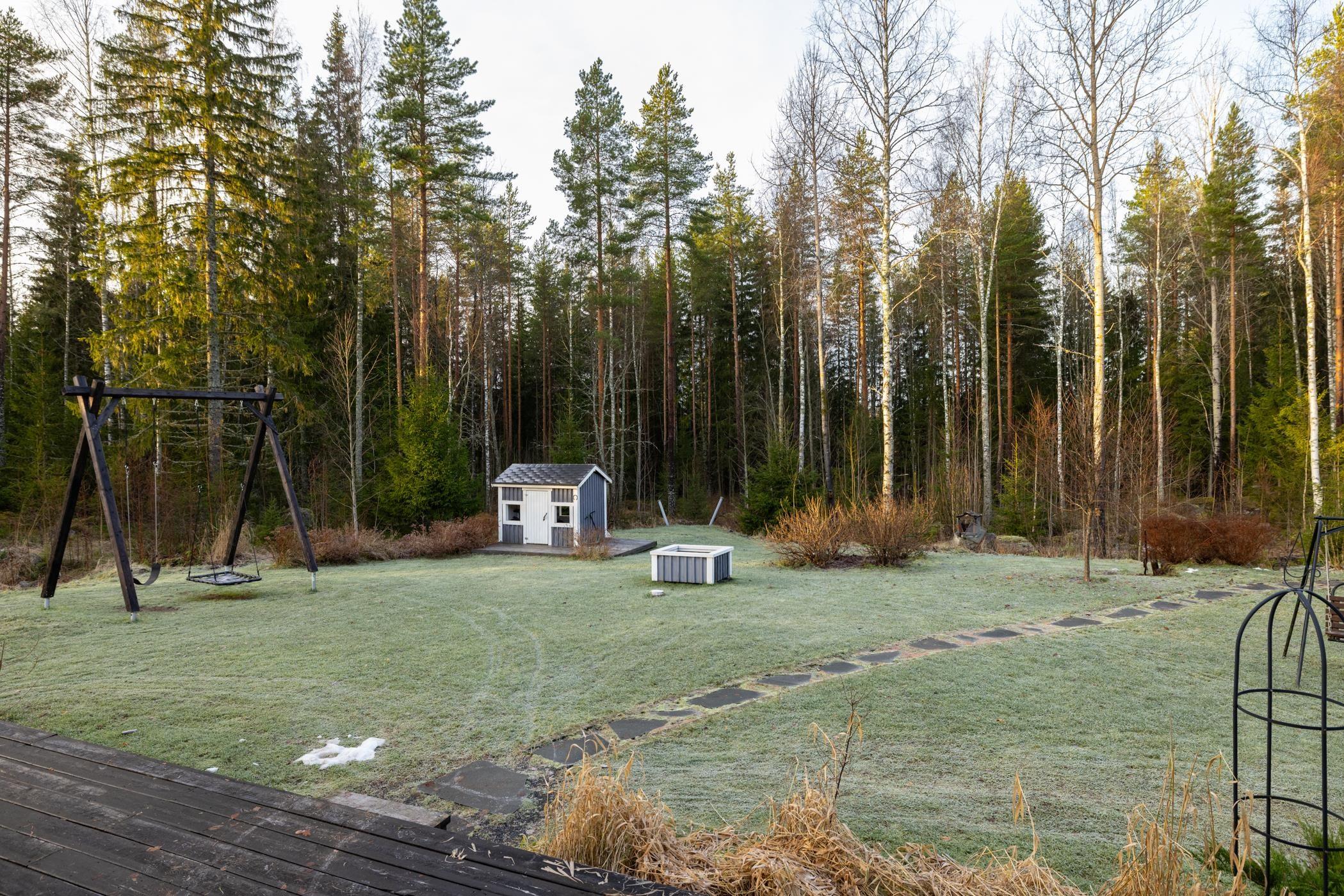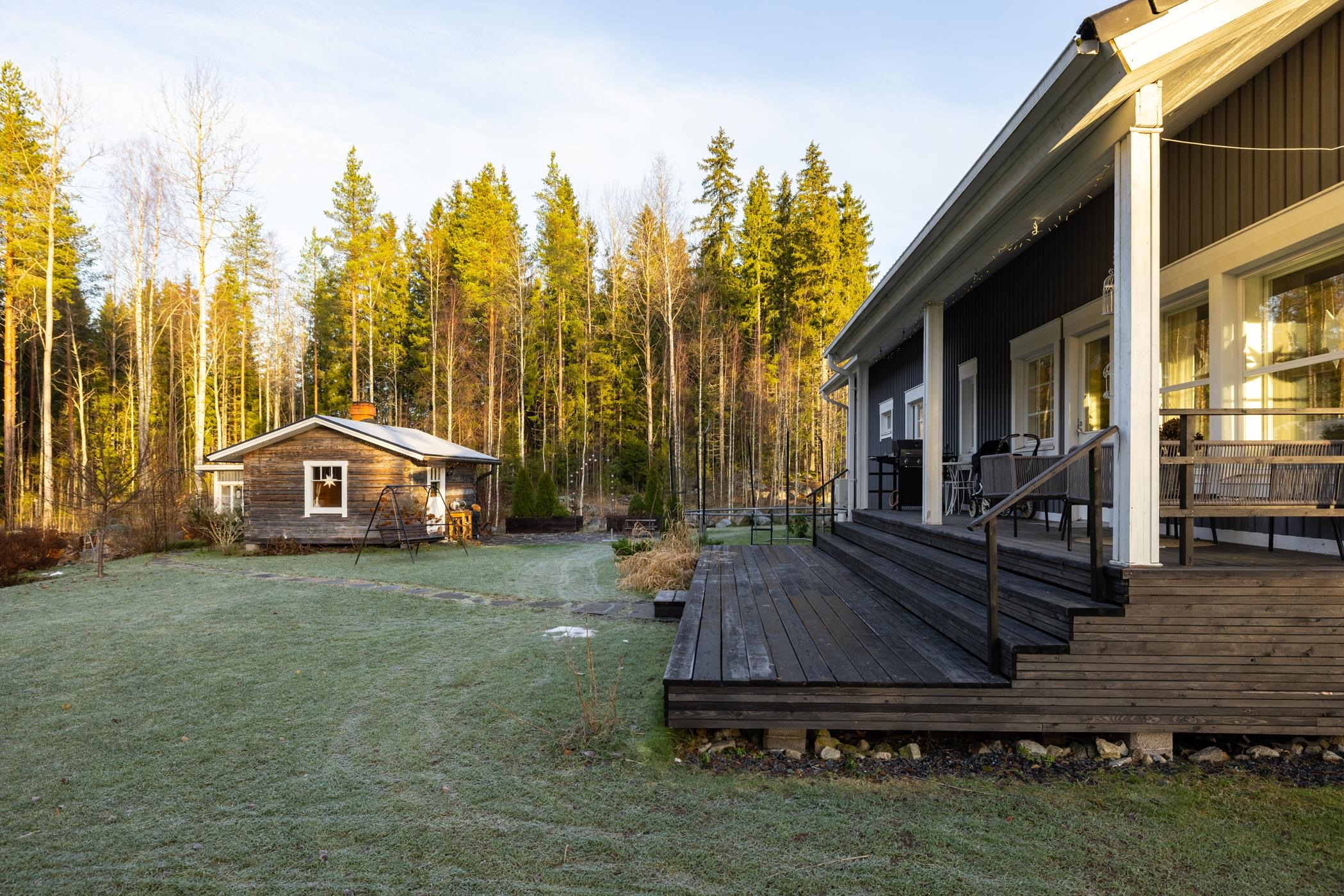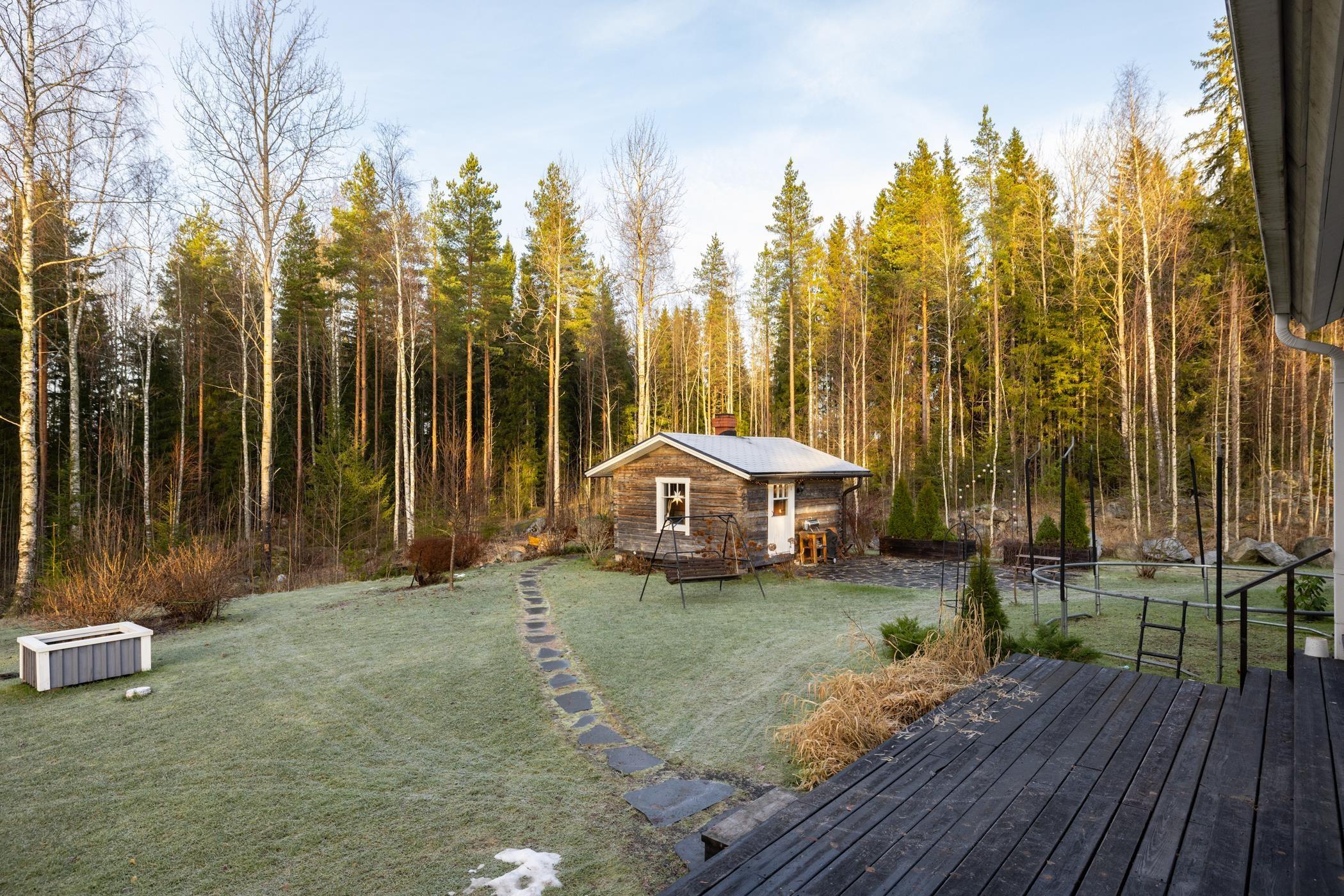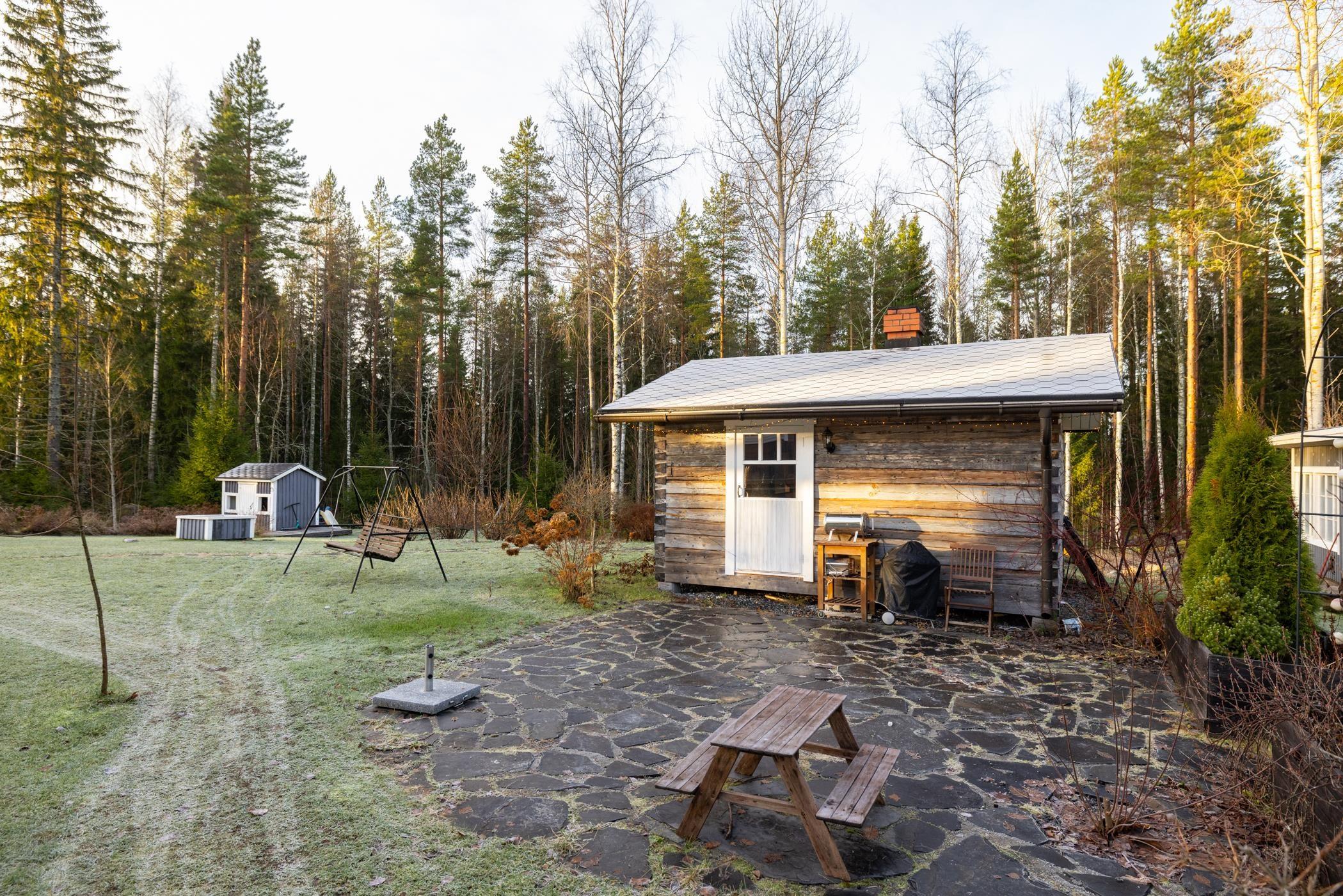 Suojaisan kotipihan tunnelmallinen pihasauna saunatuvan kanssa on yksi tämän kodin helmistä. Sauna on käytössä ympäri vuoden ja tarjoaa arkeen ihanaa rentoumista. Pihasaunan yhteydessä on kotoisa saunatupa. Viihtyisässä pihapiirissä on tilaa puutarhaunelmille, leikkimiseen ja terassihetkiin.