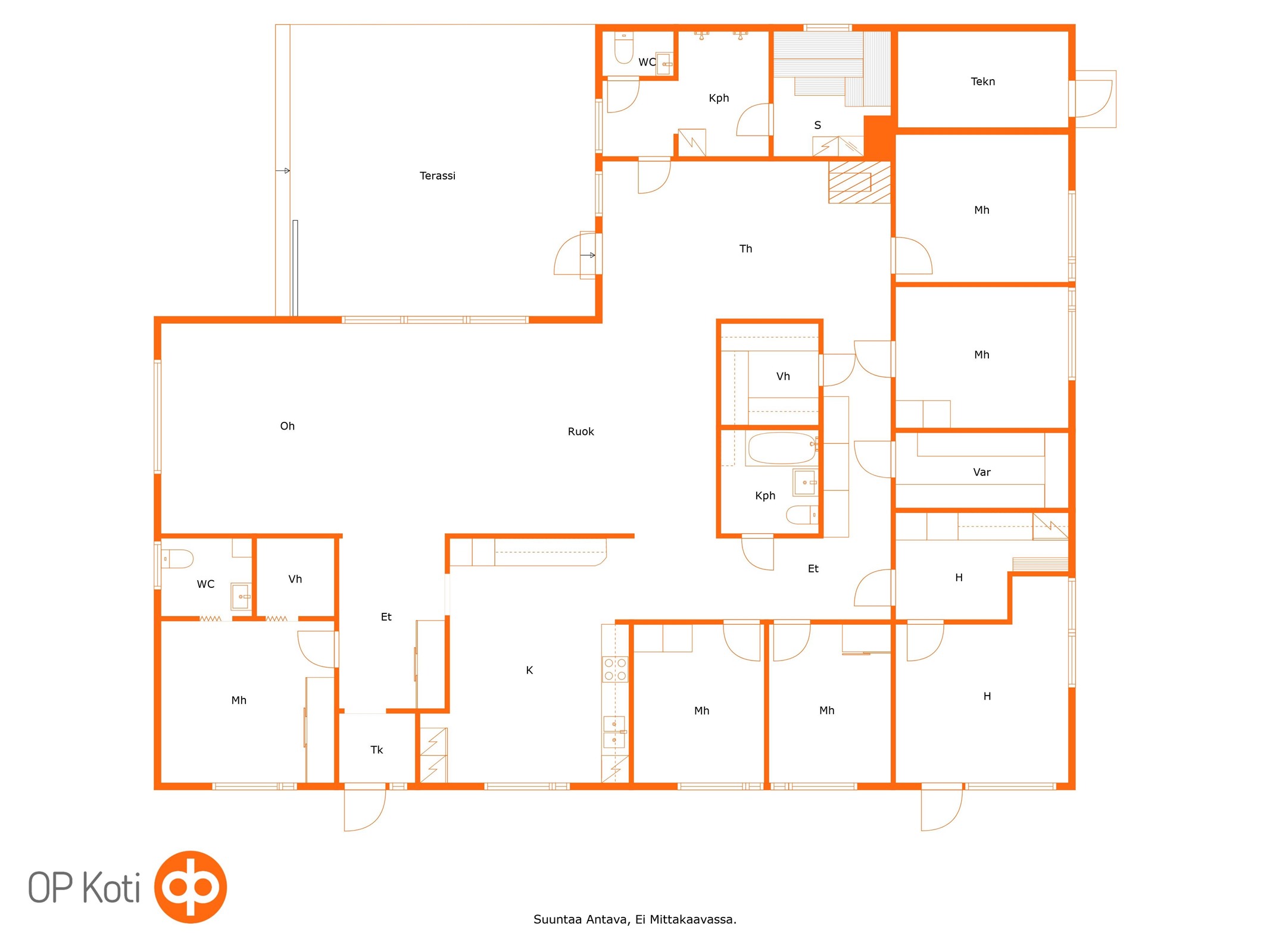 - 5mh, k, oh, takkah, 3kph, 3wc, s, 2vh, kylmiö, toimistoh, terassi