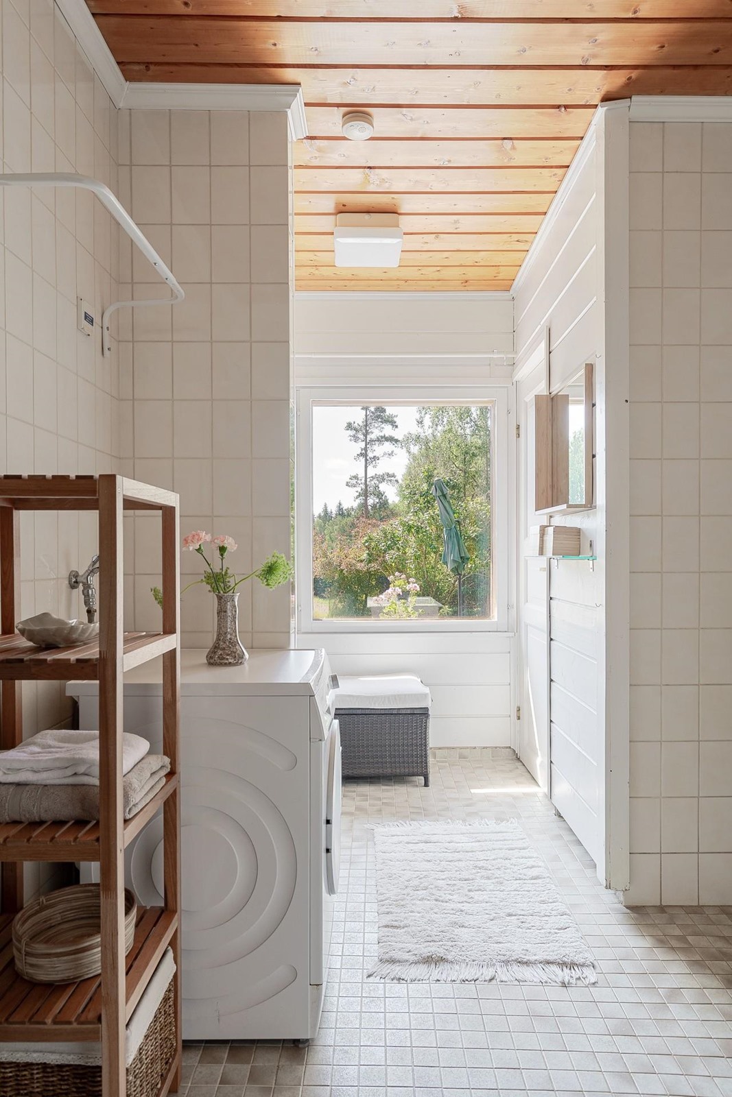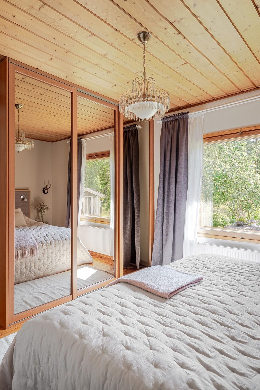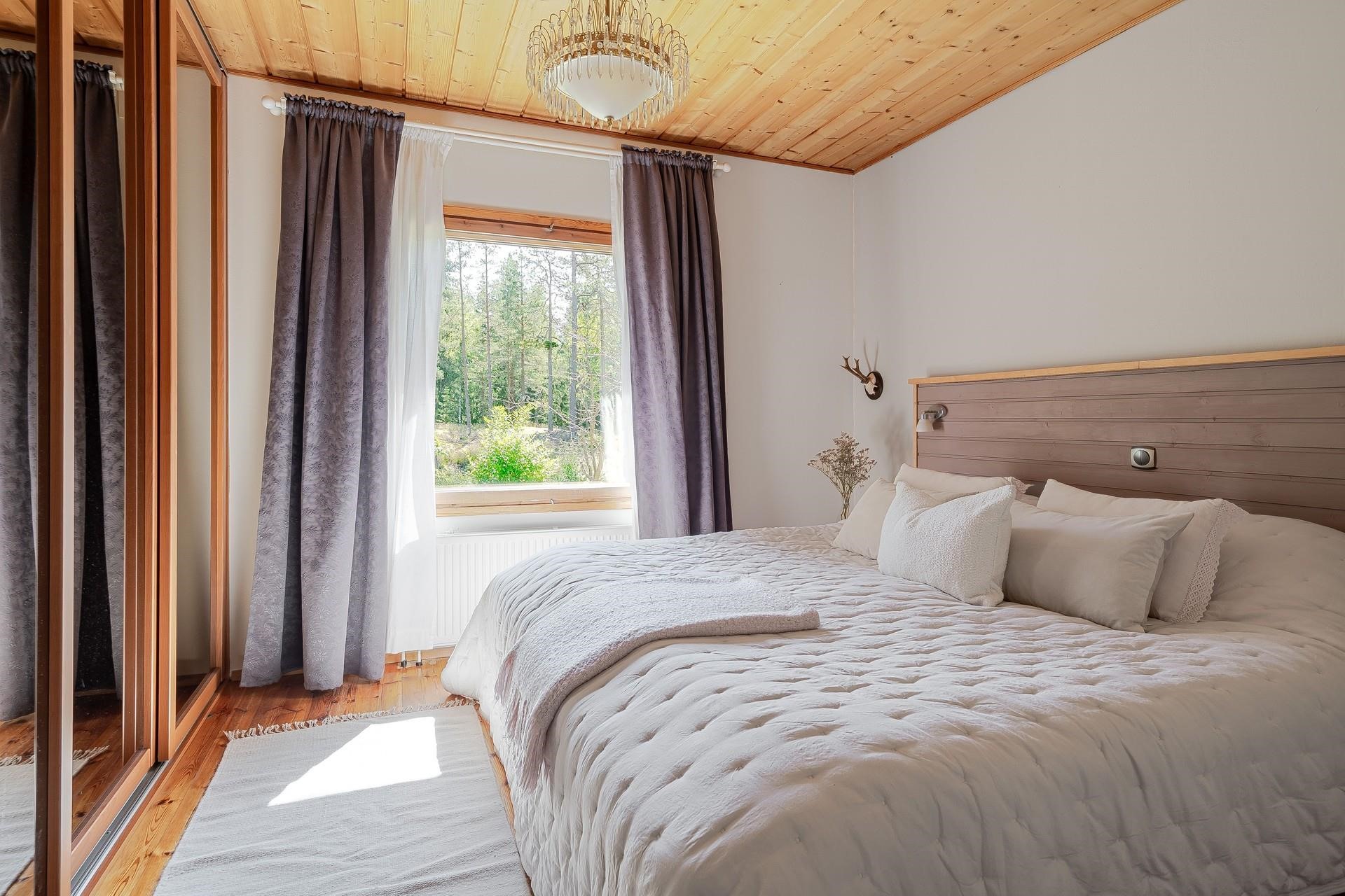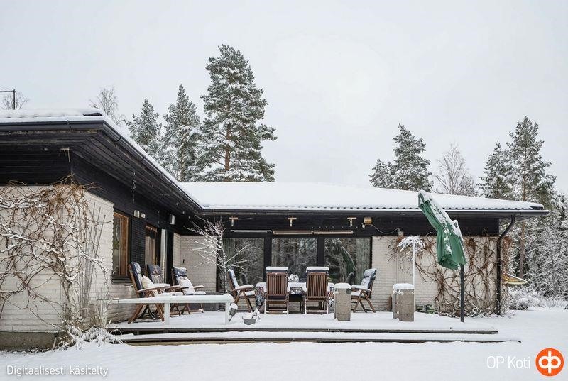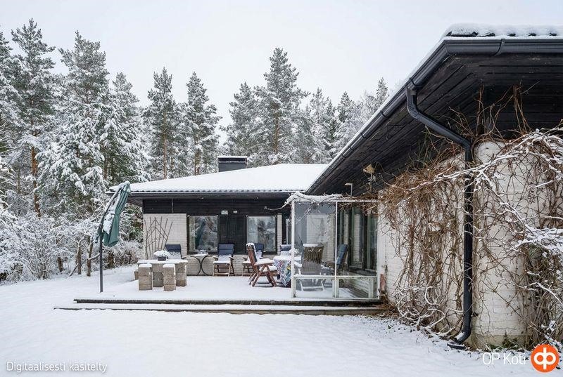 Viiden makuuhuoneen ja keittiön lisäksi tässä kodissa on kolme erillistä kylpyhuonetta ja tilava saunaosasto, jossa sekä puu- että sähkölämmiteinen kiuas. Terassille mahtuu mukavasti ruokaryhmä. Kodista avautuu upeat näkymät ja ympärilläsi luonto on lähellä: pihapiirissä saatat nähdä hirviä, valkohäntä- ja kuusipeuroja, joskus myös ketun.