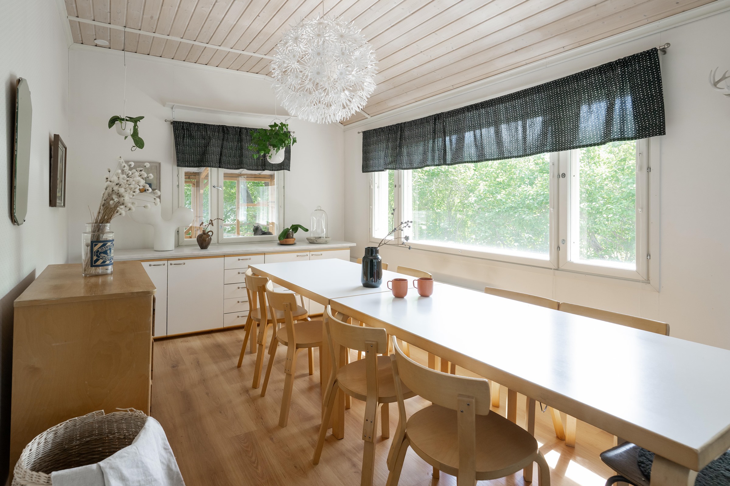 - Keittiön yhteyteen rakennettu laajennusosa vuonna 2006, jossa ruokailutila. Keittiö remontoitu kokonaisuudessaan vuonna 2017, jossa varusteina: jääkaappi (2024), pakastekaappi, erillisuuni, induktioliesi, liesikupu, liesituuletin, integroitu mikroaaltouuni, astianpesukone (2025) ja kiinteät valaisimet.