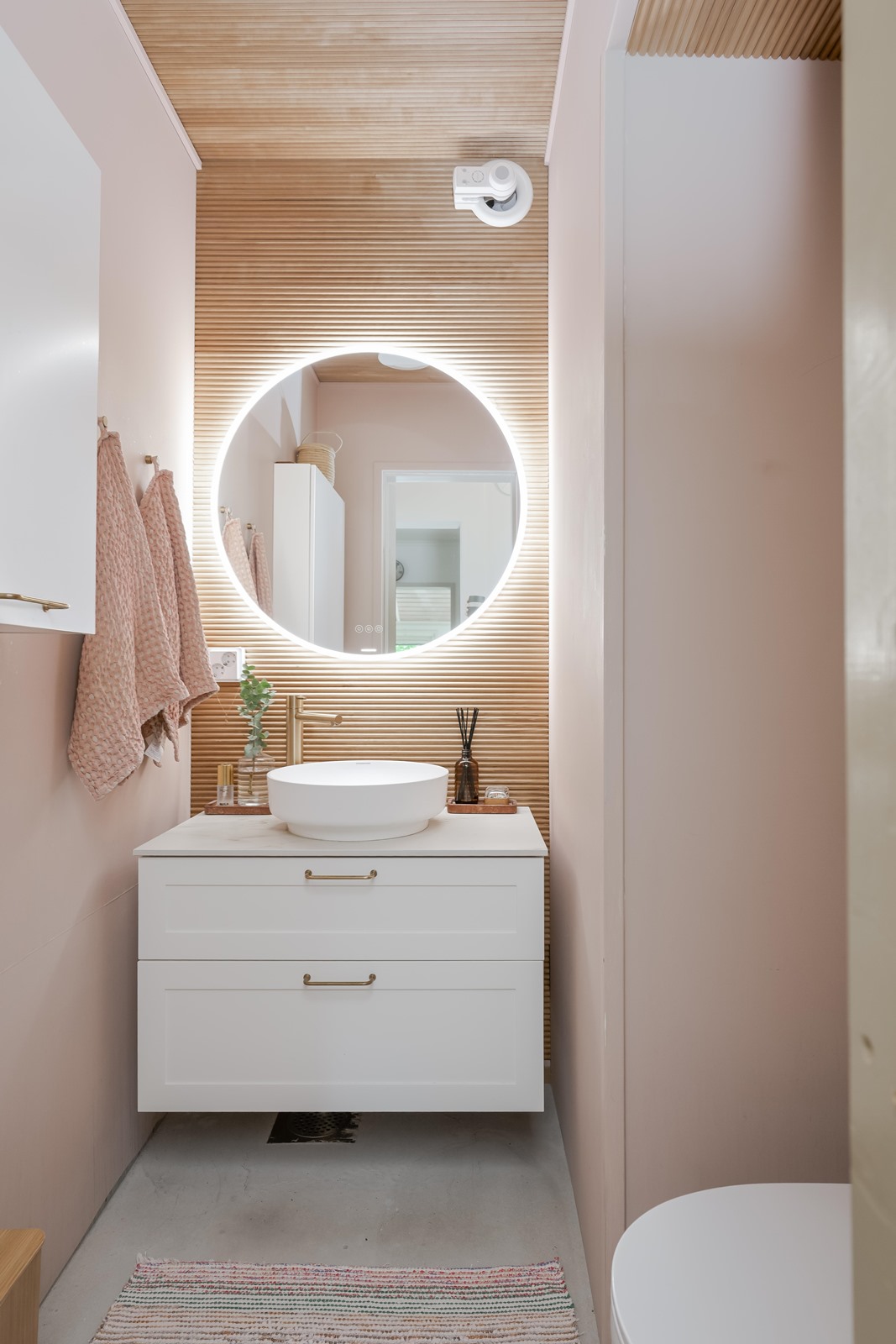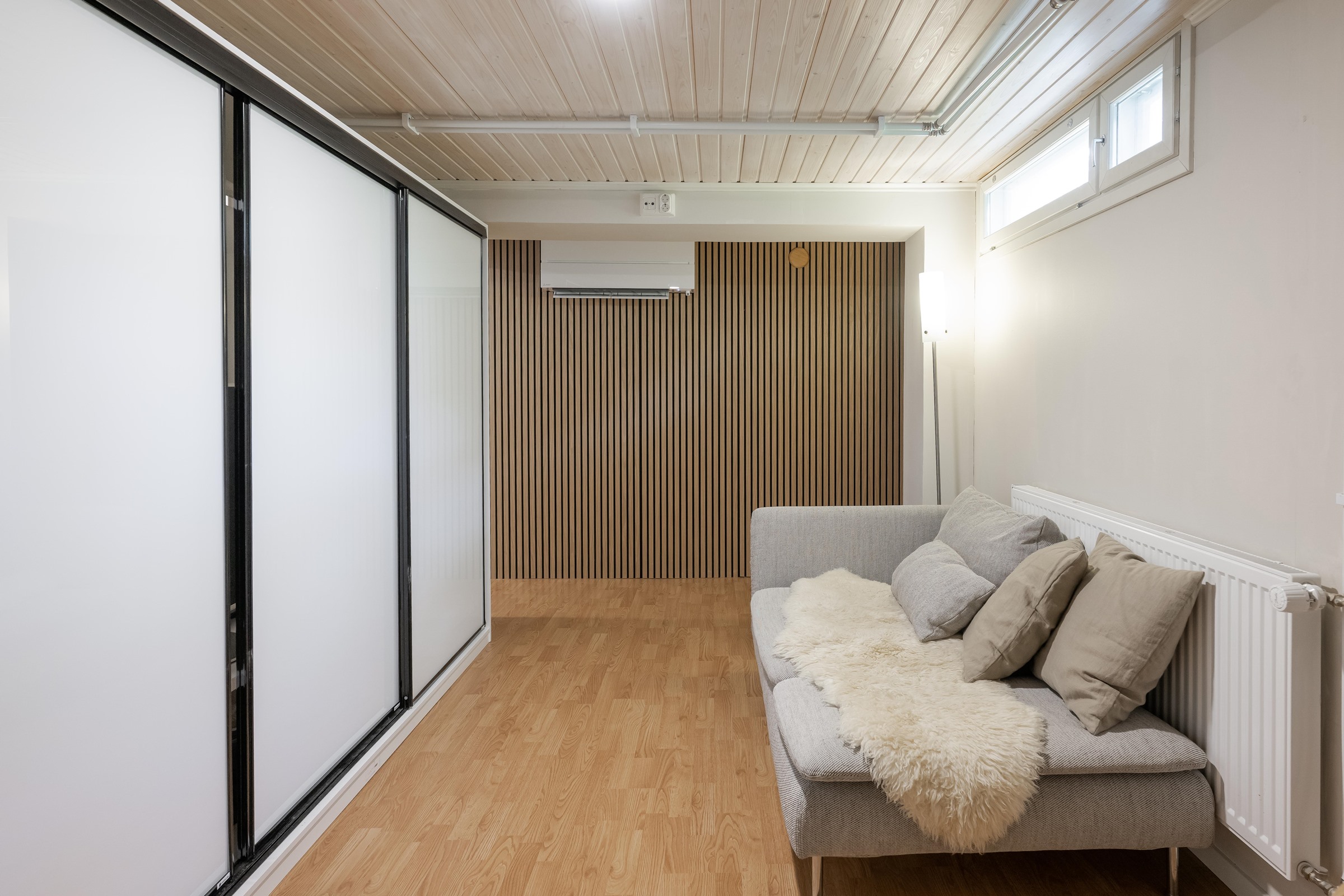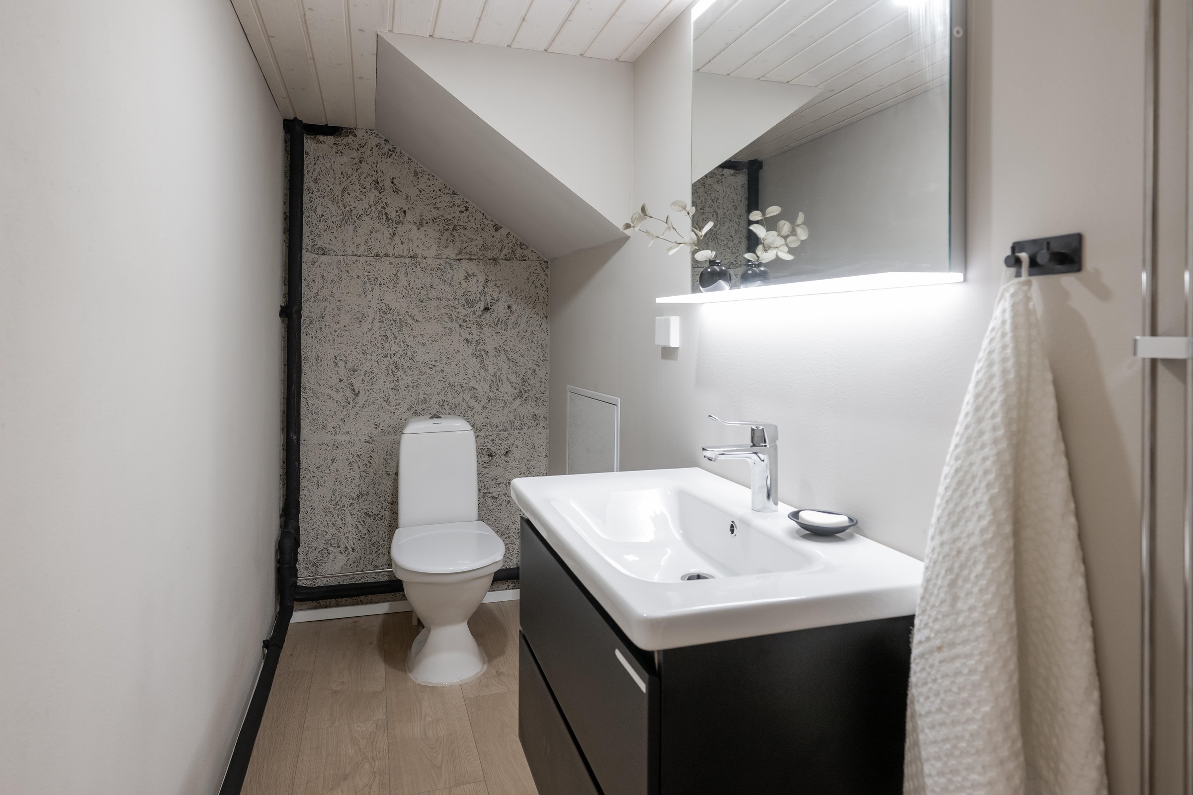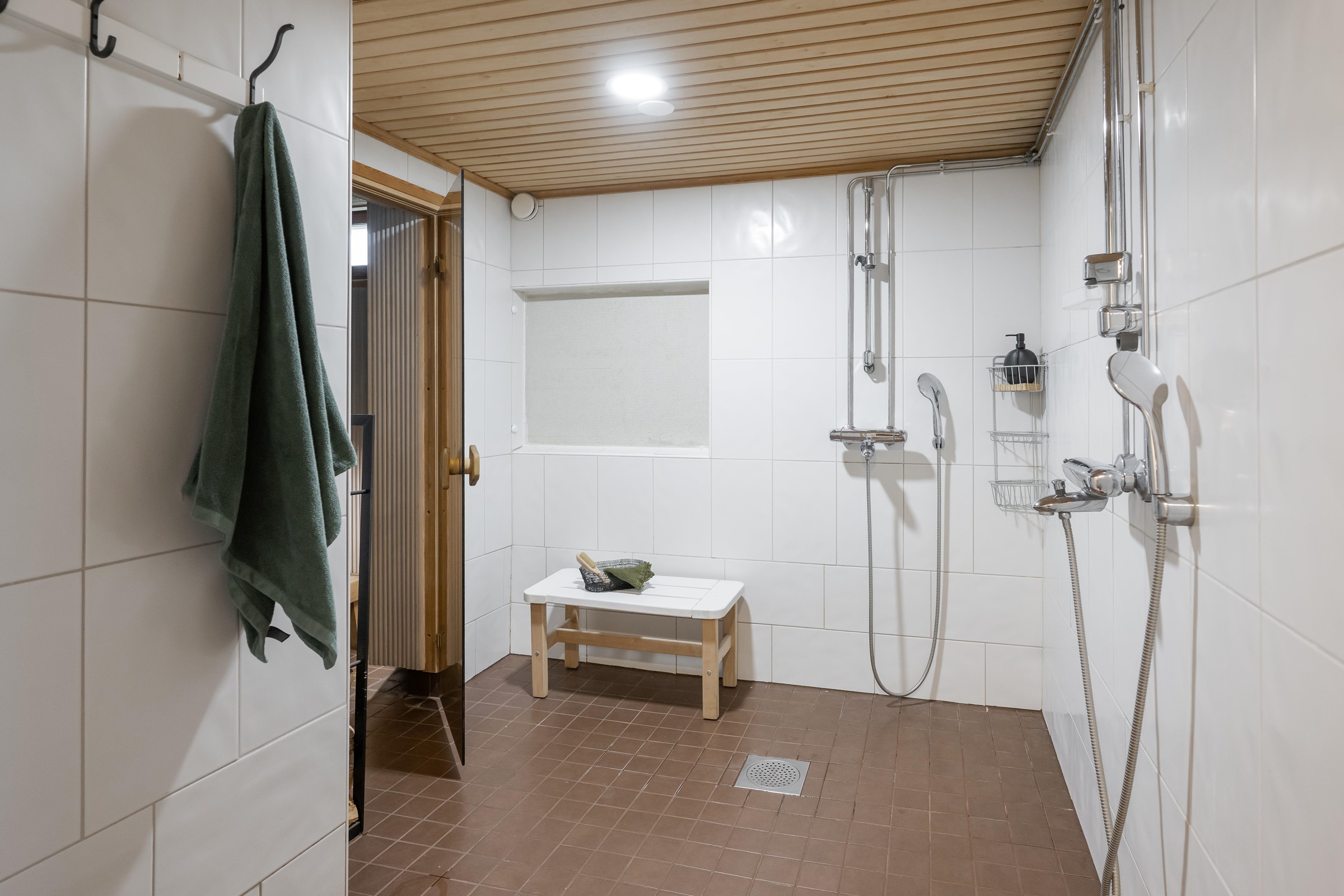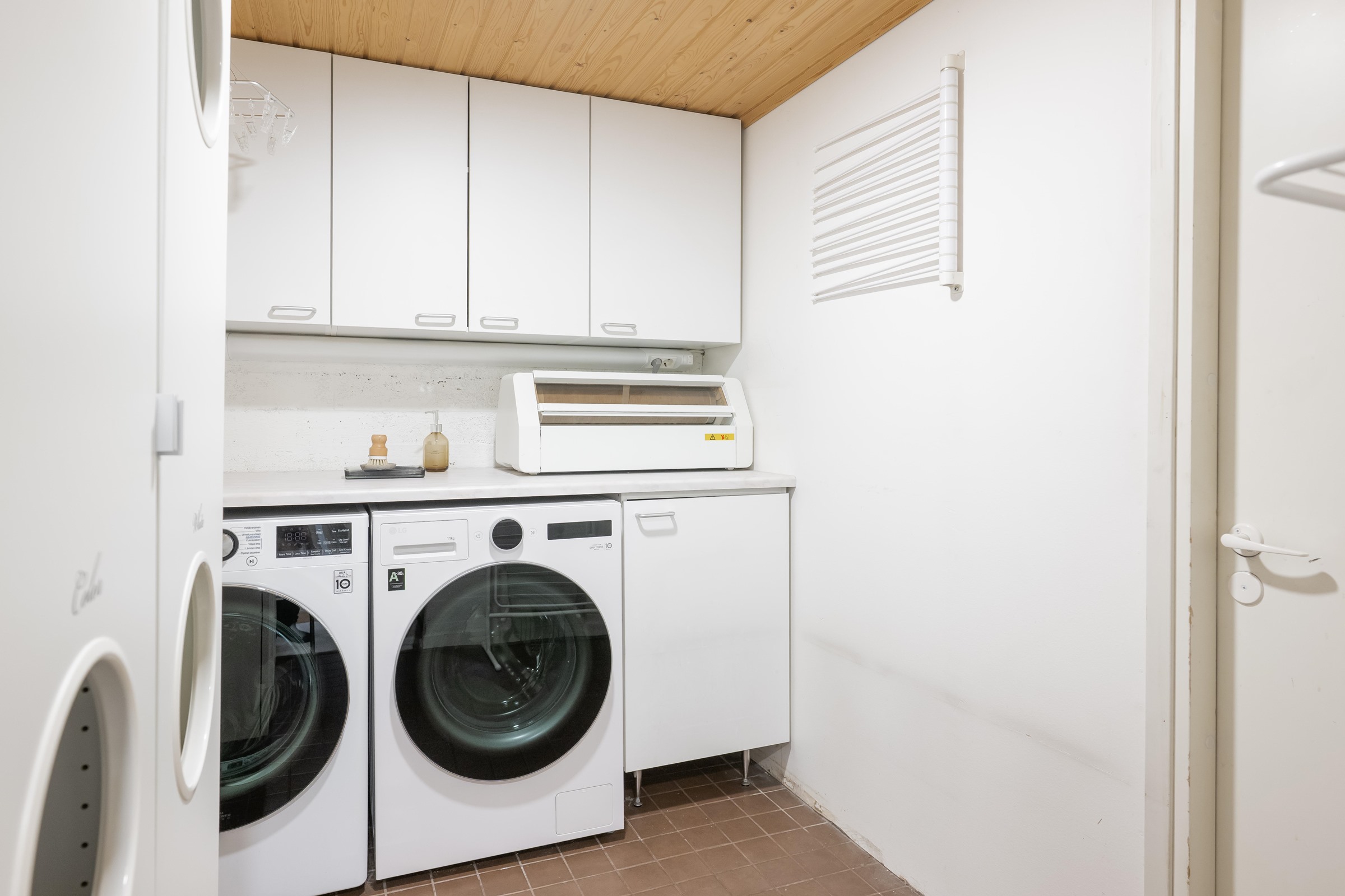 - Joka kerroksessa erilliset wc-tilat. Keskikerroksen erillinen wc on remontoitu vuonna 2023 ja alakerran erillinen wc on valmistunut vuonna 2025. Alakerrassa on pesuhuone,sauna ja kodinhoitohuone.