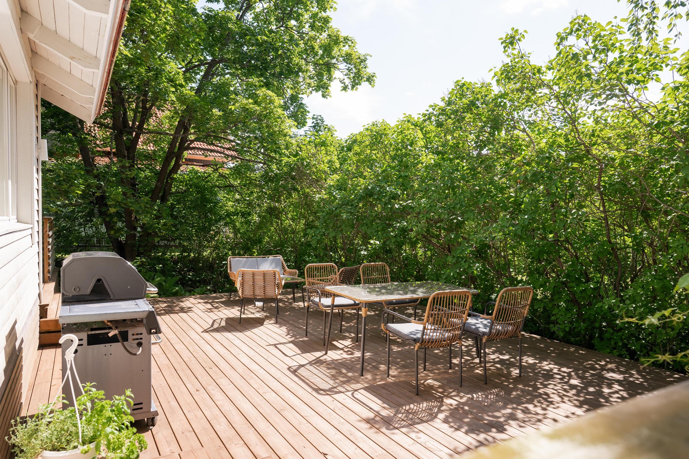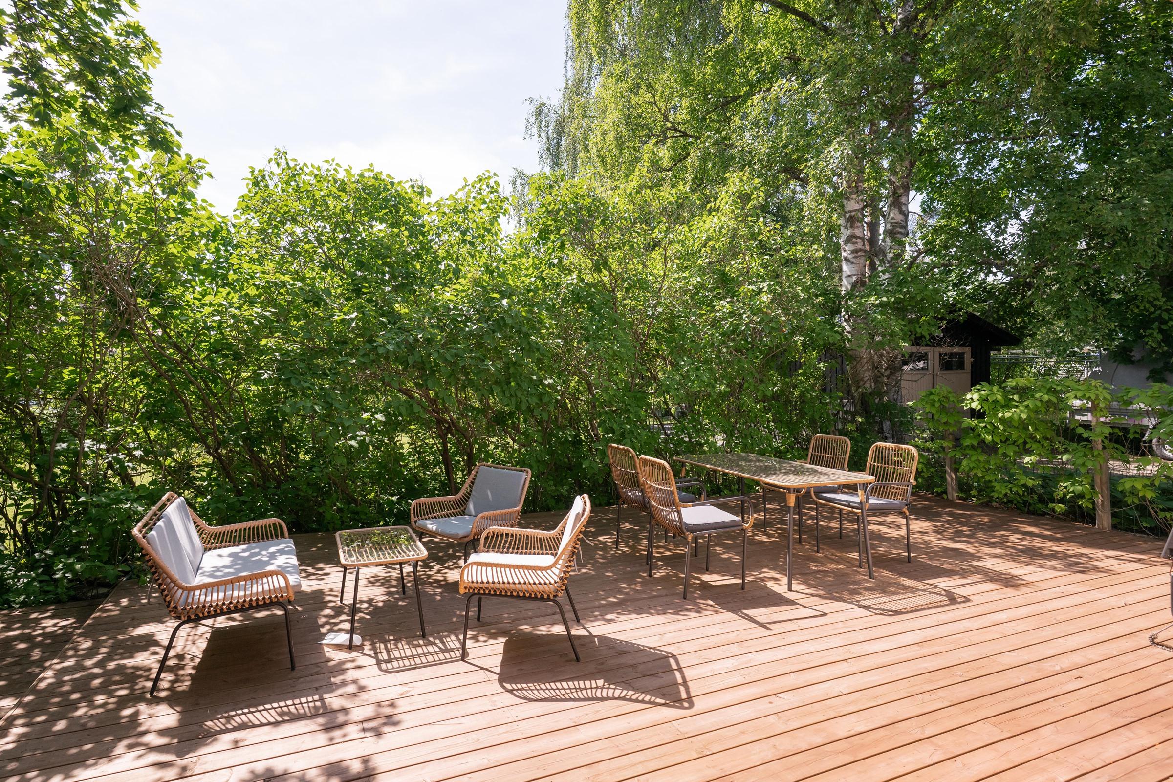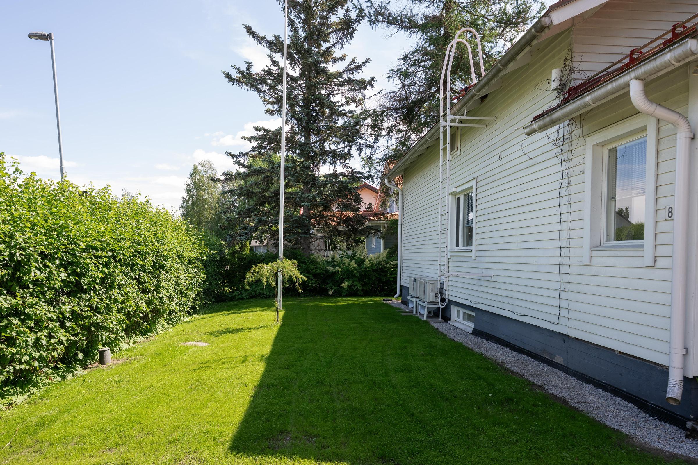 - Tontti on erittäin suojaisa, verheä ja tekemistä on valmiina jokaisen makuun. Pensaat ja puut rajaavat tontin rajoja ympäriinsä. Piha-alueella on kaksi terassia. Toinen talon edustalla, jonne kulku ruokailutilasta sekä olohuoneesta ja toinen autotallin sivulla.