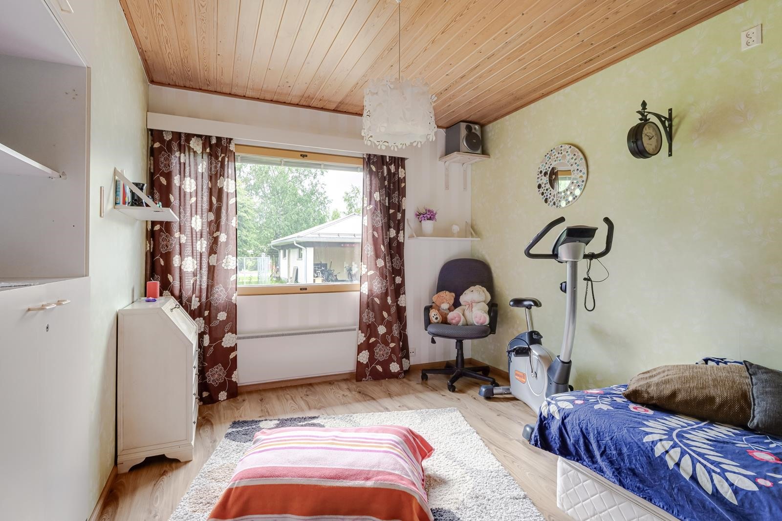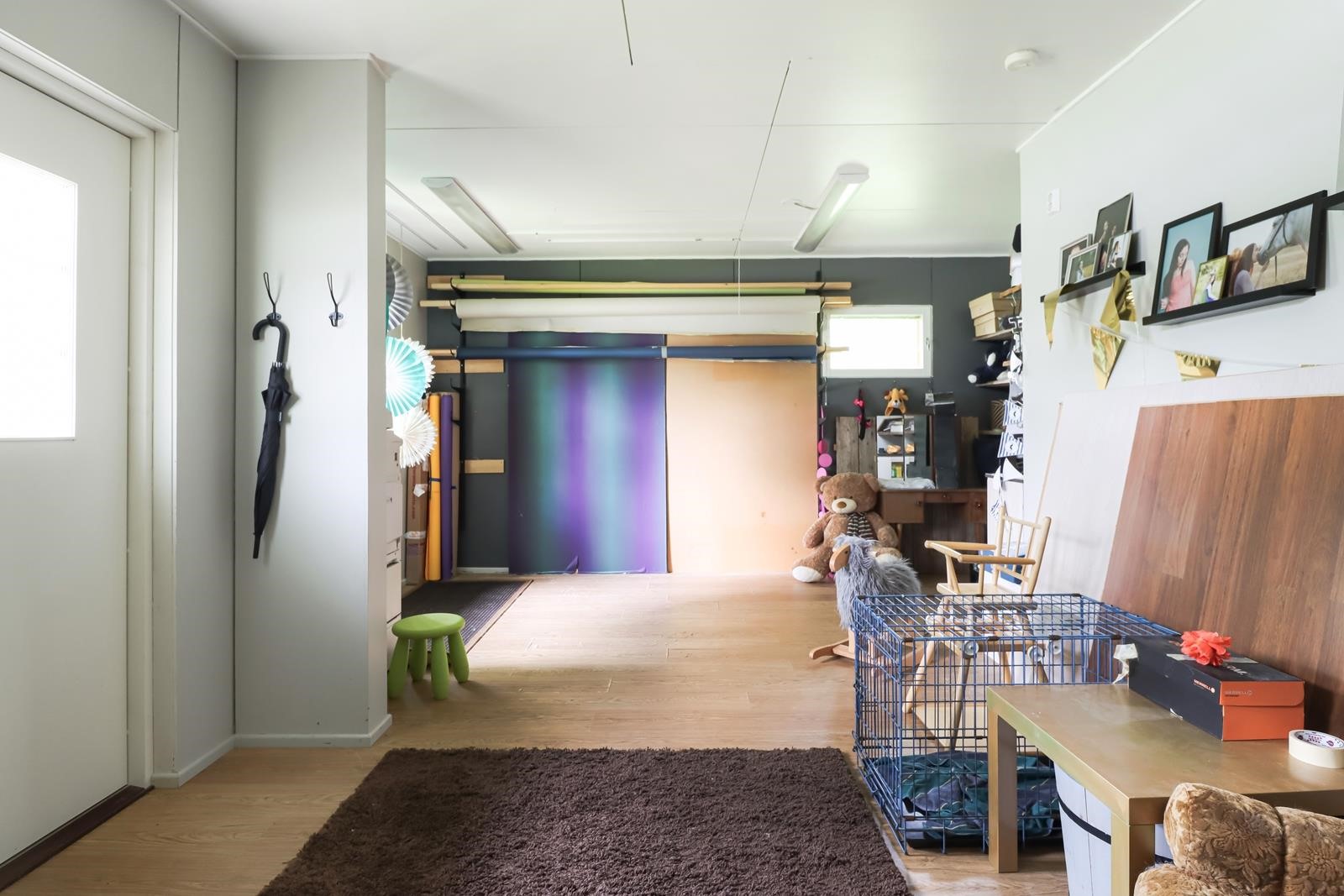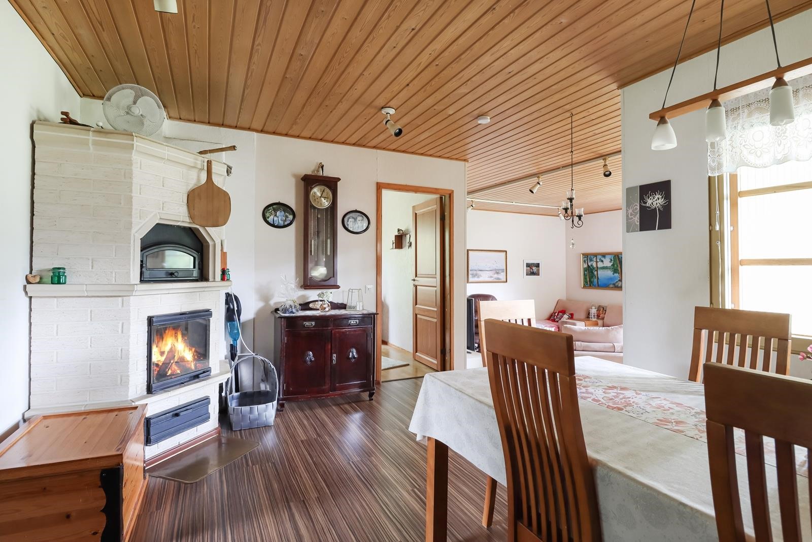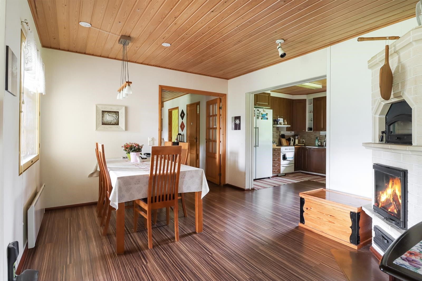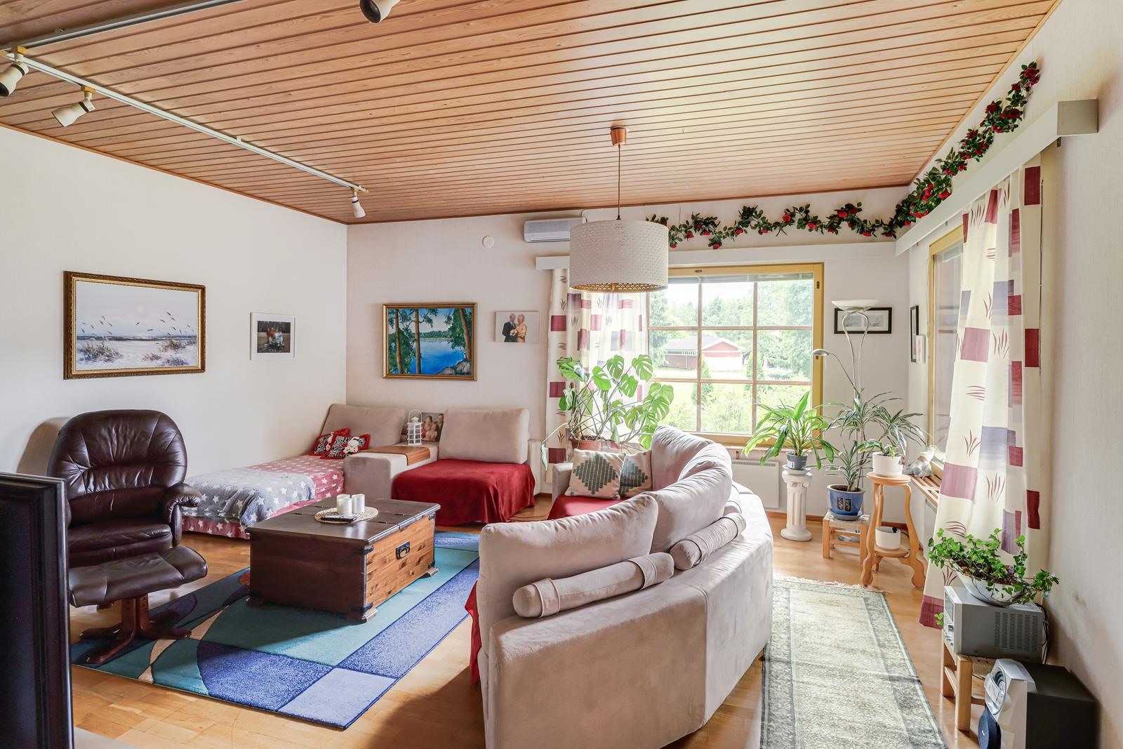 Asuinosassa peräti 5 makuuhuonetta. Siistit lattia- ja seinäpinnat läpi talon. Varaava takka ja ilmalämpöpumppu auttamassa lämmityskulujen kanssa. Pesu-, sauna- ja kodinhoitotilat remontoitu 2009, viihtyisät ja toimivat. Talon yhteydessä lämmin autotalli ja varasto.