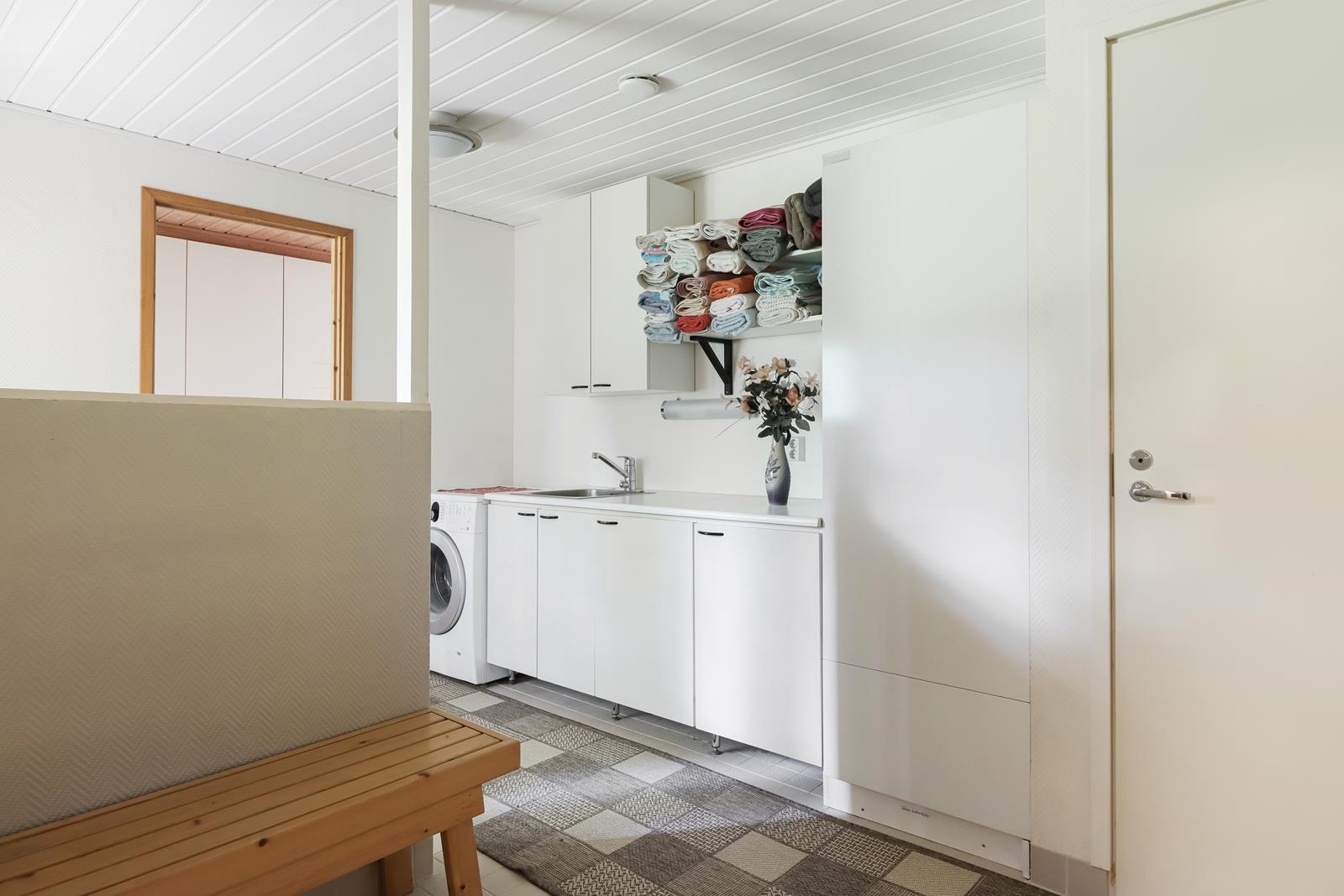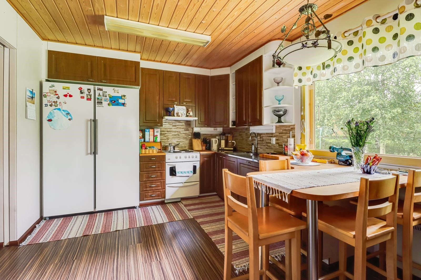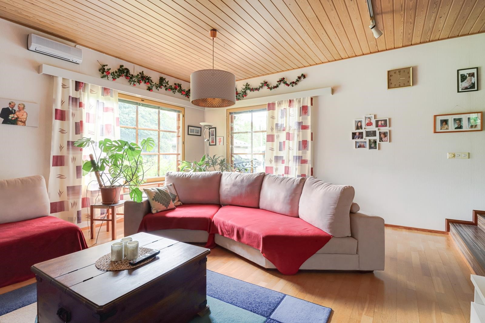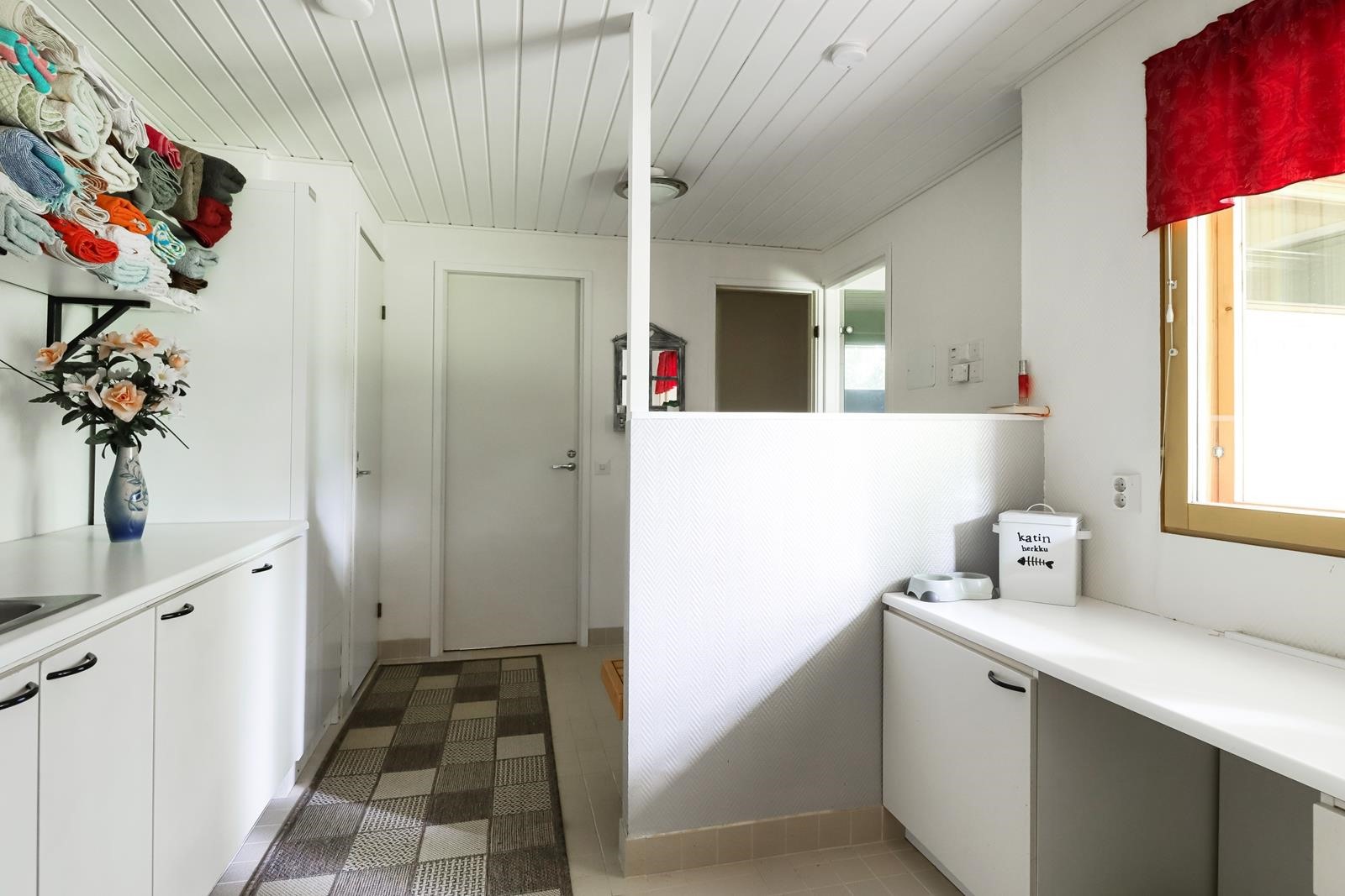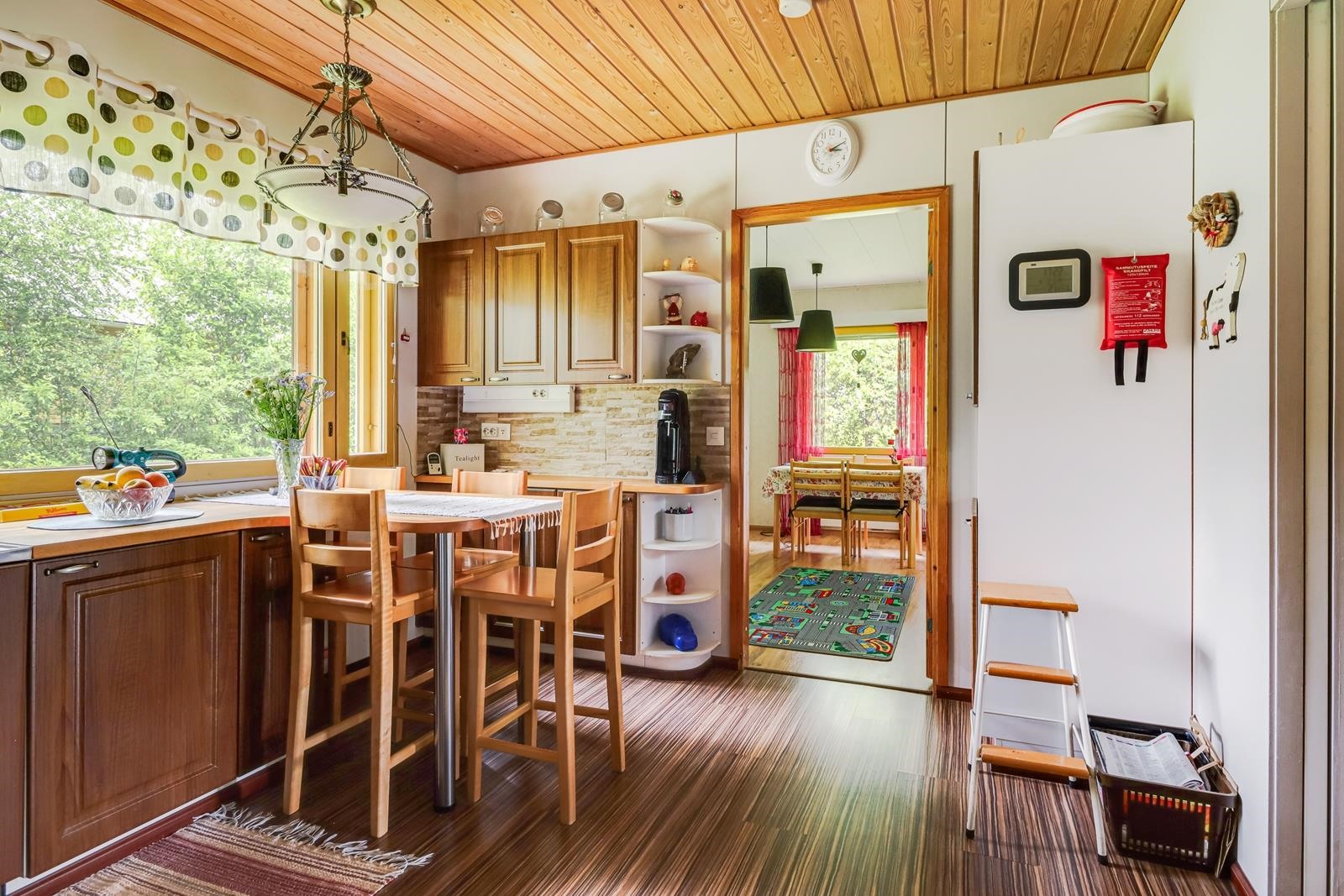 Asuinosassa peräti 5 makuuhuonetta. Siistit lattia- ja seinäpinnat läpi talon. Varaava takka ja ilmalämpöpumppu auttamassa lämmityskulujen kanssa. Pesu-, sauna- ja kodinhoitotilat remontoitu 2009, viihtyisät ja toimivat. Talon yhteydessä lämmin autotalli ja varasto.