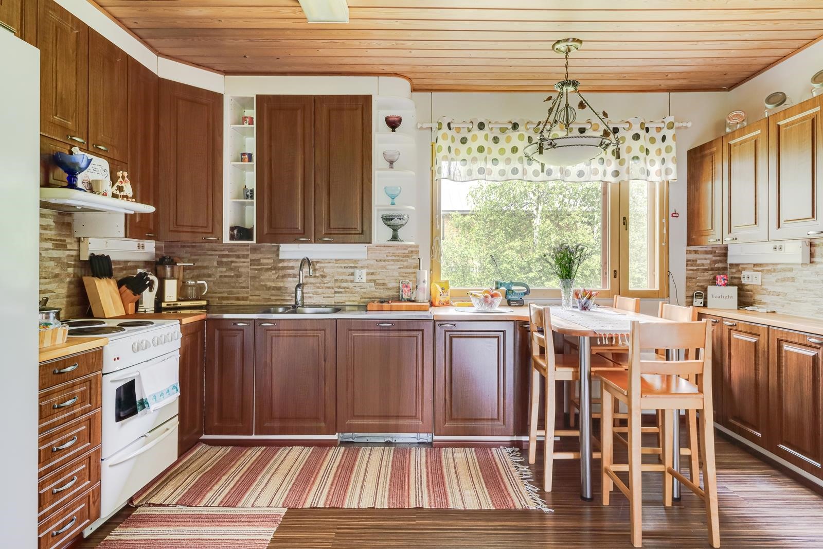 - Jääkaappi, pakastekaappi, sähköliesi, liesituuletin, leivinuuni takan yhteydessä, astianpesukone.