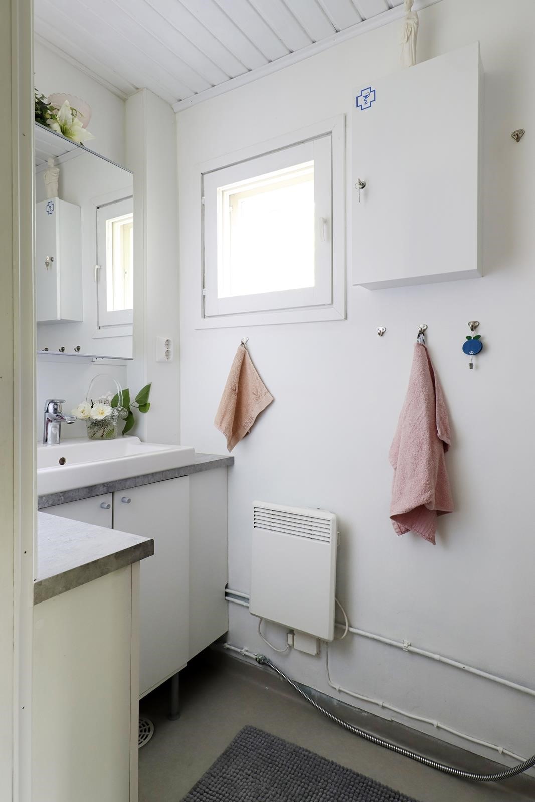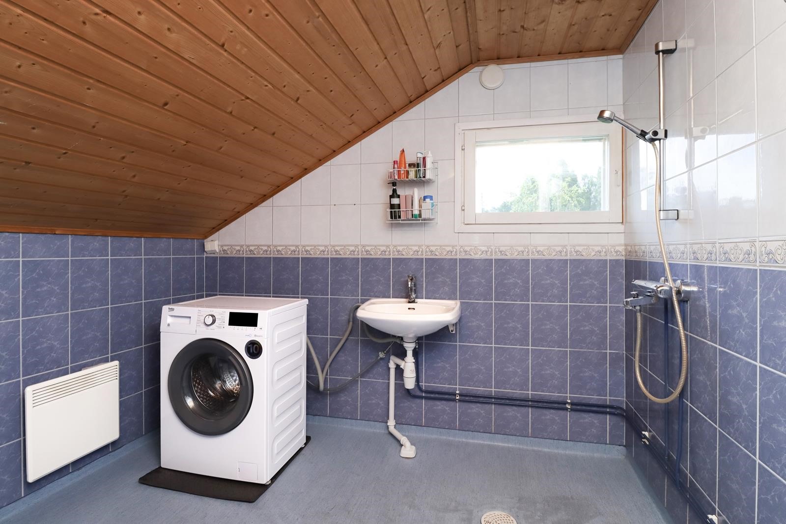 - Sauna, sähkökiuas, kylpyhuone, erillinen wc remontoitu 2020, suihku, peilikaappi uusittu 2020, allaskaappi, pesukoneliitäntä, kiinteät valaisimet.