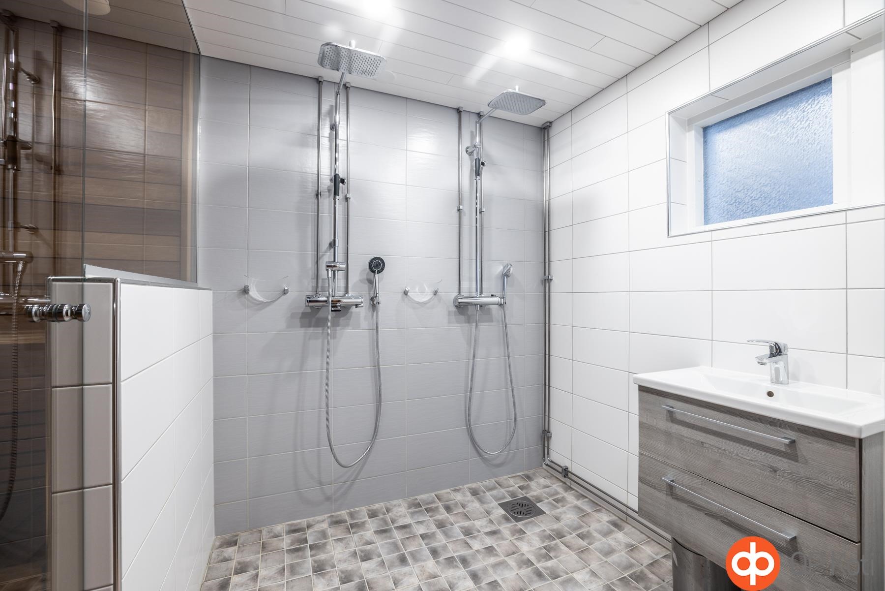 - Sauna, sähkökiuas, kylpyhuone, erillinen wc, suihku 2x, peilikaappi wc, allaskaappi wc ja kph ja khh, pesukoneliitäntä khh, lattialämmitys kph.