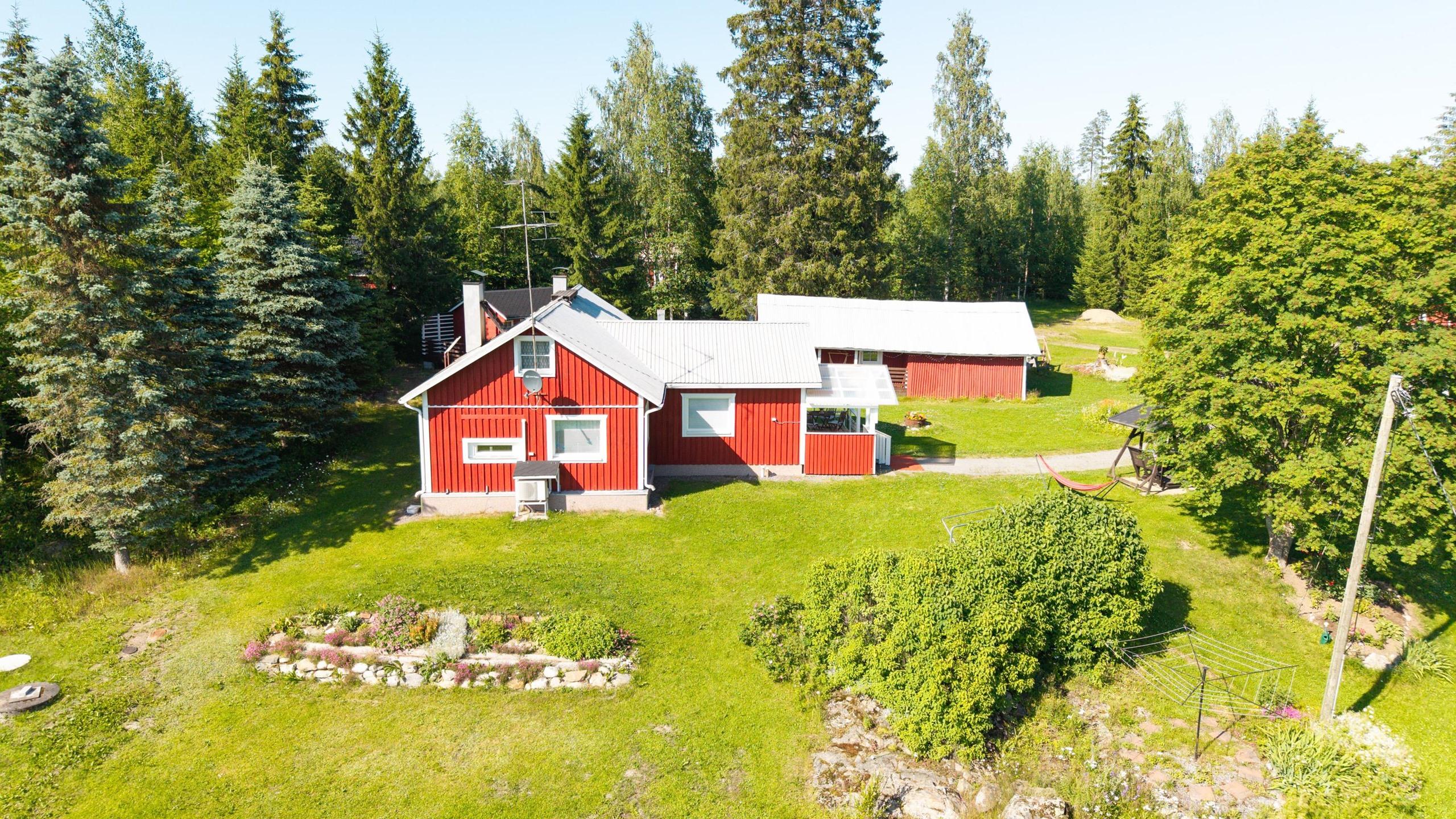 Ryhdikäs hirsirunkoinen päärakennus on valmistunut vuonna 1917. Kodin sydämenä toimii tilava ja valoisa tupakeittiö, josta on käynti molempiin makuuhuoneisiin. Vuonna 1991 tehty laajennus toi mukanaan sisävessan, kylpyhuoneen, saunan ja kodinhoitohuoneen, jotka tekevät asumisesta sujuvaa ympäri vuoden. Myös yläkerran ullakkotila on otettu hyötykäyttöön, ja sinne on vuonna 2020 rakennettu viihtyisä kesähuone, joka on varmasti lasten lempipaikka.