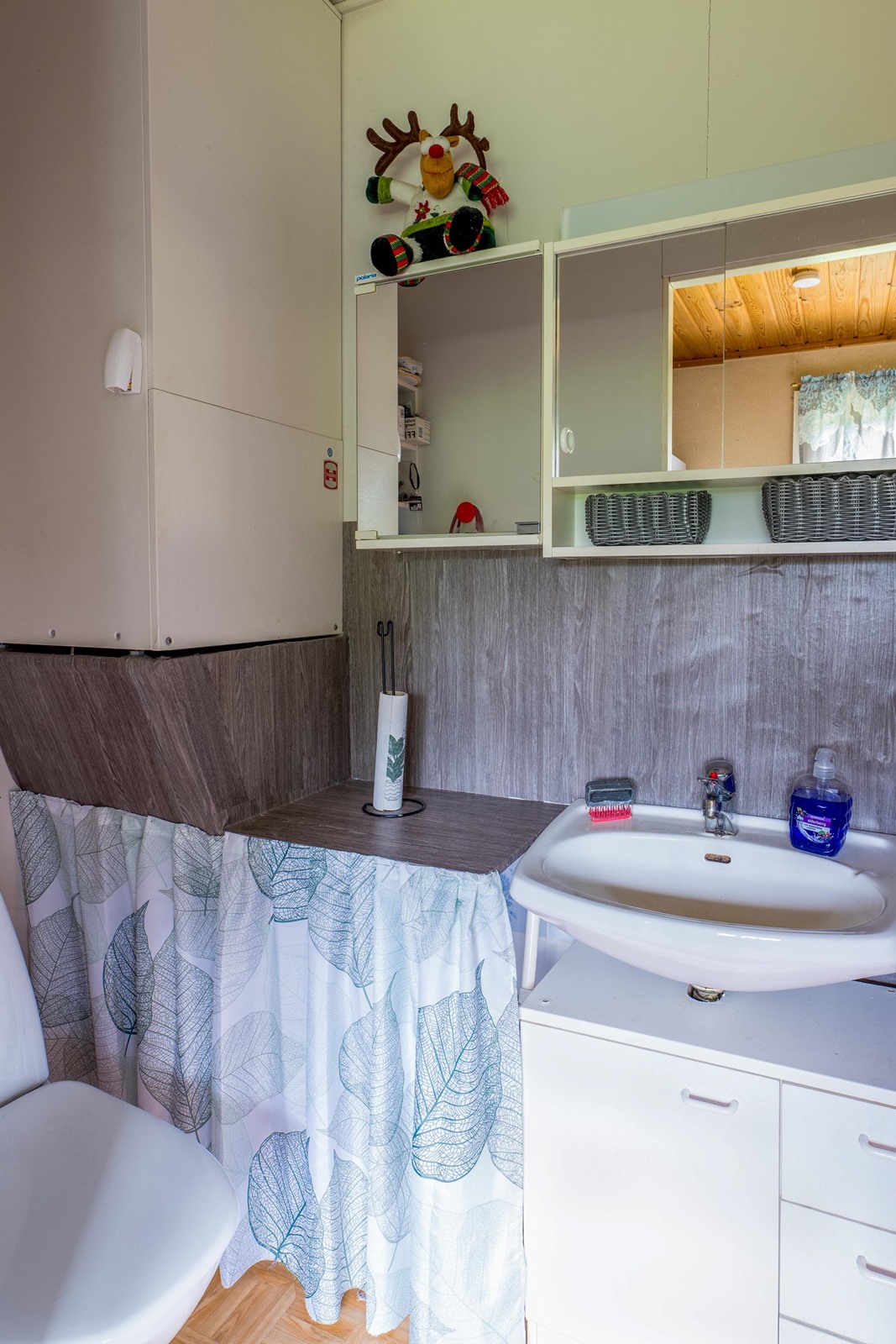 - Sähkökiuas, kylpyhuone, erillinen wc, suihku, peilikaappi, allaskaappi, lattialämmitys kph ja wc, kiinteät valaisimet.