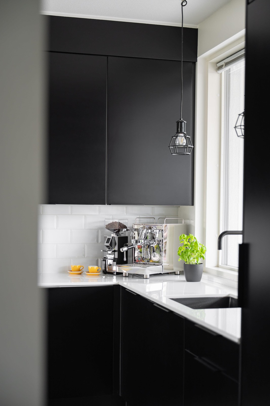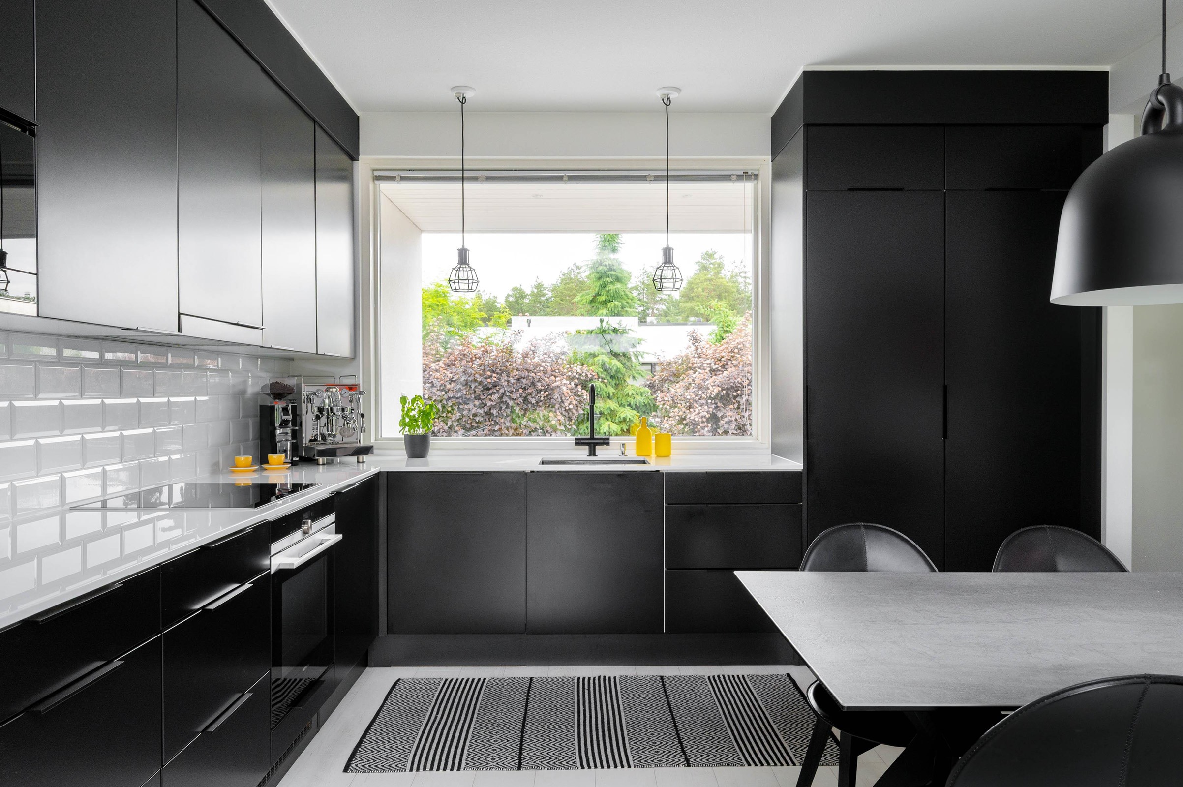 - Jääkaappi AEG, pakastekaappi AEG, erillisuuni Siemens, musta/teräs, liesitaso Siemens, induktio, liesituuletin Siemens, astianpesukone Siemens. Kvartsitasot. Hana Tapwell.