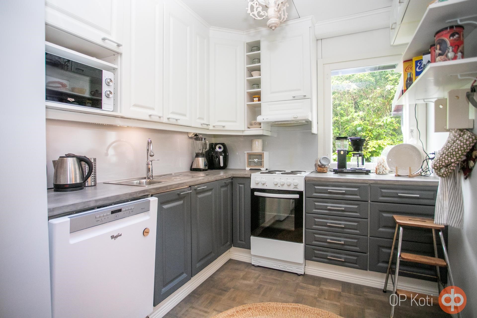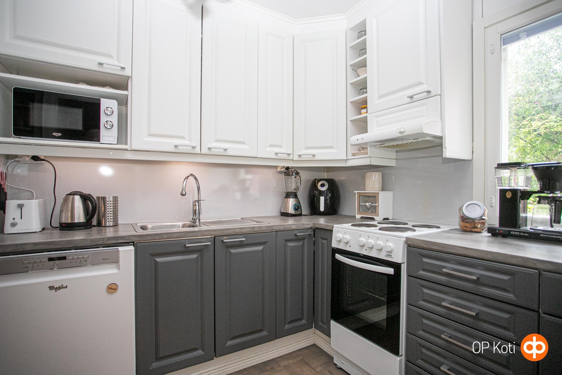 - Jääkaappi Uusittu 2023, lattialiesi, keraaminen liesi, liesituuletin, astianpesukone 2017, kaapistot, kiinteät valaisimet. Keittiö remontoitu 2017