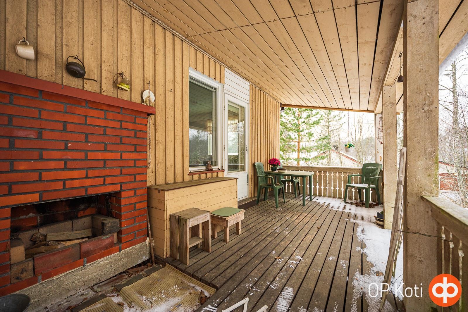 Omakotitalo hyvällä sijainnilla Heinolan kirkonkylässä. Rinnetontilla sijaitsevan talon asuintilat ovat ylemmässä kerroksessa. Talossa on potentiaalia moneksi, ja se tarjoaakin mahdollisuuksia remontointiin ja tilojen muokkaamiseen omaan tarpeeseen. Talossa kaksi makuuhuonetta, ruokailutila ja olohuone, jossa takka. Keittiö on tilava ja laajennuksen yhteydessä on siihen tehty apukeittiö, josta saisi nykyajan tarpeeseen esimerkiksi kodinhoitohuonetilaa. Takaterassilla mukavana lisänä ulkotakka, jolla luoda tunnelmaa vaikkapa pimeneviin syysiltoihin.