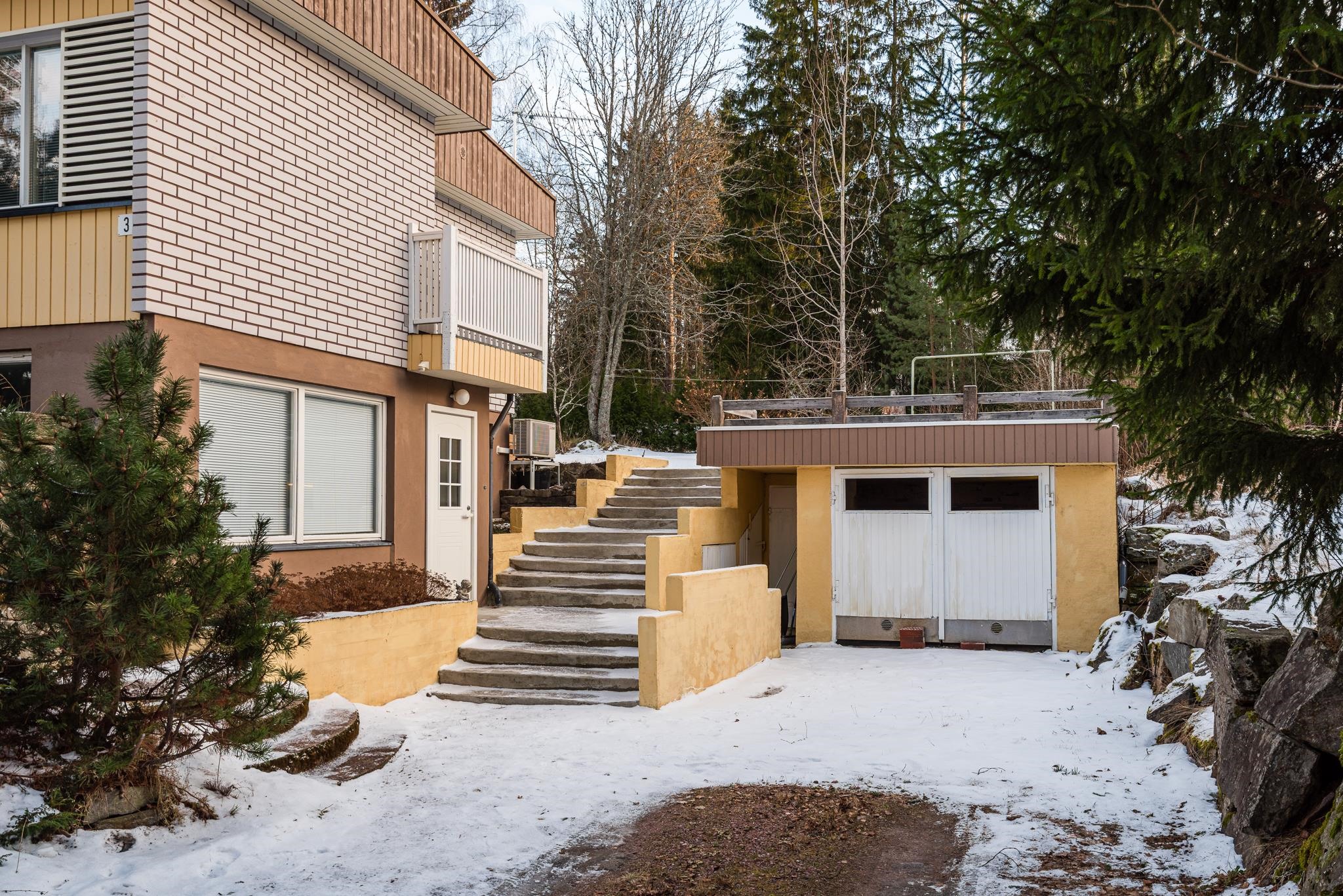 Kahdessa kerroksessa olevassa kodissa on sisäänkäynnit eri pihatasoilta. Pääsisäänkäynti tuo yläkertaan, jossa on miellyttävät puulattiat, kotoisan tyylikäs keittiö, avara olohuone ja kaksi makuuhuonetta. Väliseinän ja oven palauttamalla saat kolme makuuhuonetta yläkertaan. Olohuoneesta käynti aurinkoiselle takapihan terassille ja keittiöstä pääset kaffelle söpölle pikkuparvekkeelle.