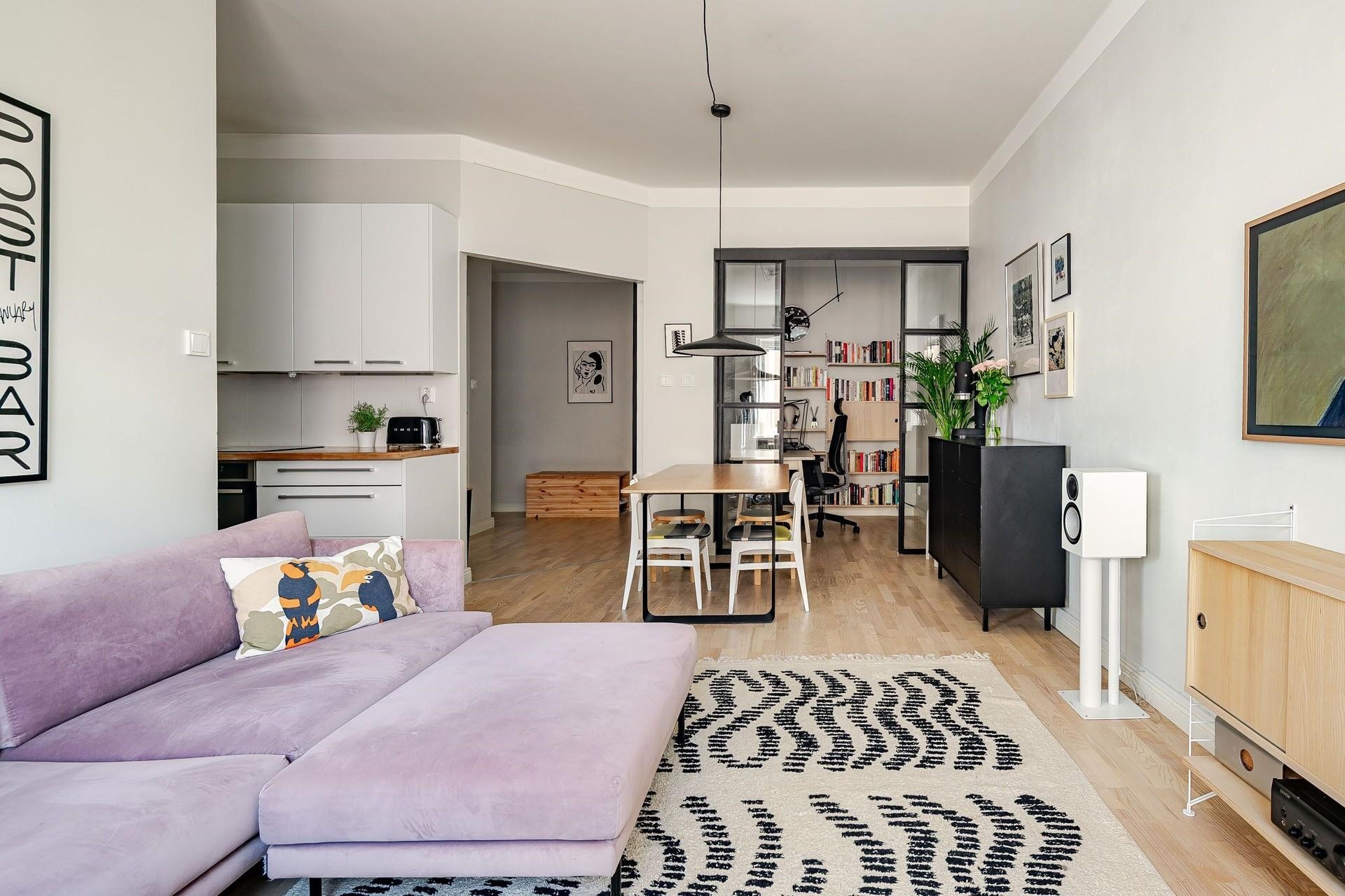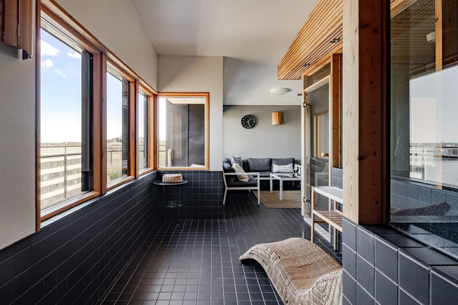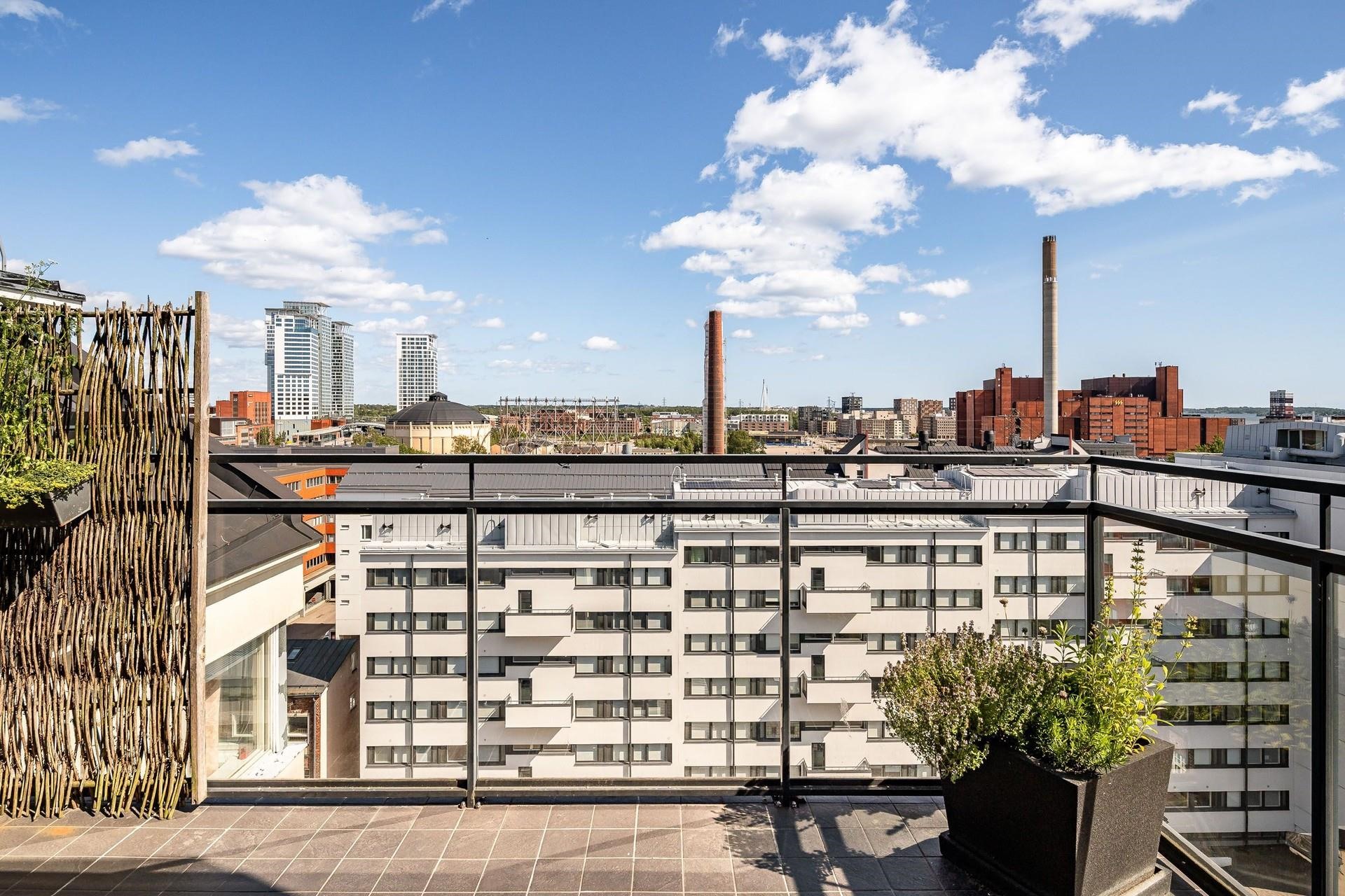 Olohuone-avokeittiö on tilava ja makuuhuoneen ja eteisen peililiukuovien taakse on saatu mahdutettua todella hyvin säilytystilaa. Alkovi on erotettu tyylikkäällä lasiseinällä omaksi tilakseen, joka toimii hyvin työtilana tai vaikka lapsen huoneena. Yhtiön 8. kerroksen saunaosasto terasseineen tuo asumiseen omaa lisäarvoaan. Kaikki on siis valmiina laadukkaaseen elämään.