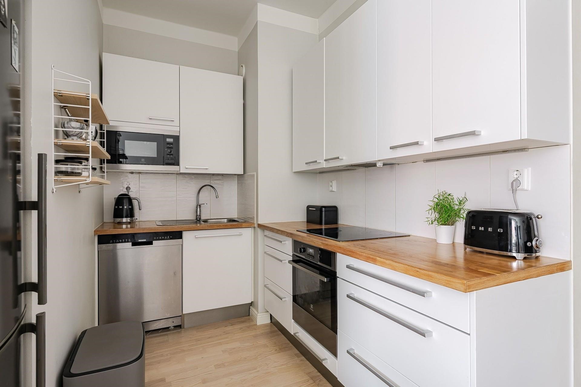 - Jääkaappipakastin, erillisuuni, keraaminen liesi, liesituuletin (aktiivihiili), mikroaaltouuni (int), astianpesukone (uusittu 2022), kaapistot, kiinteät valaisimet (ledinauhat). Keittiö uusittu 2014