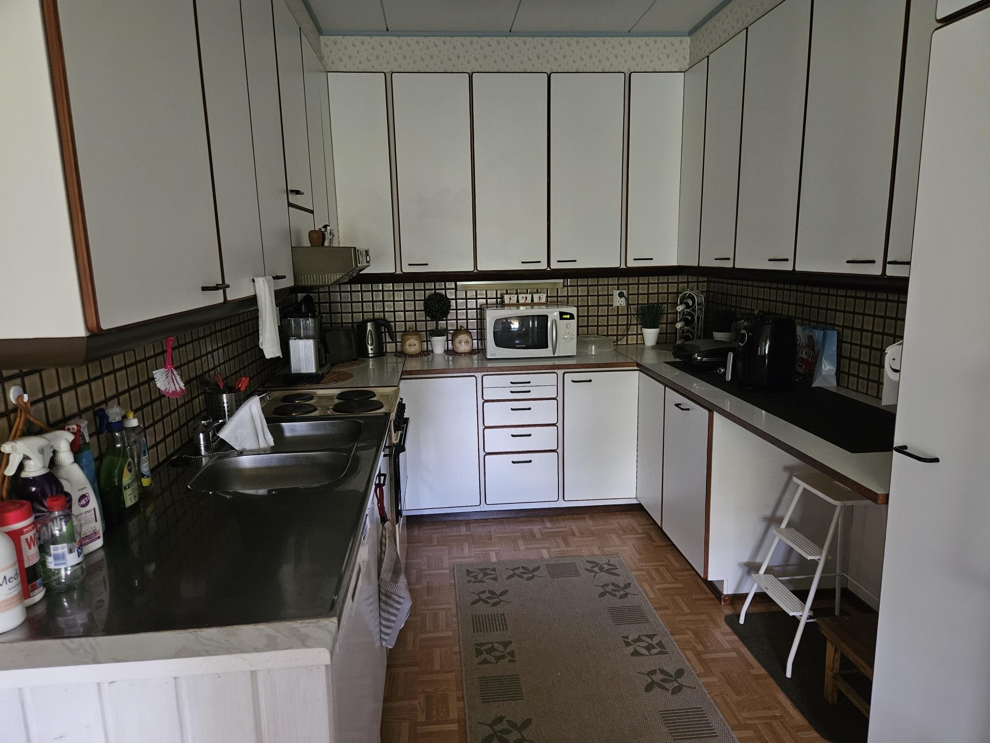 Keittiö on varusteltu monipuolisesti: useita kylmälaitteita, liesi, liesikupu, mikroaaltouuni ja astianpesukone. Kylpyhuone- ja saunatilat tarjoavat arjen rentoutumishetket, ja kodista löytyy runsaasti säilytystilaa vaatehuoneesta kellariin ja ulkovarastoihin.