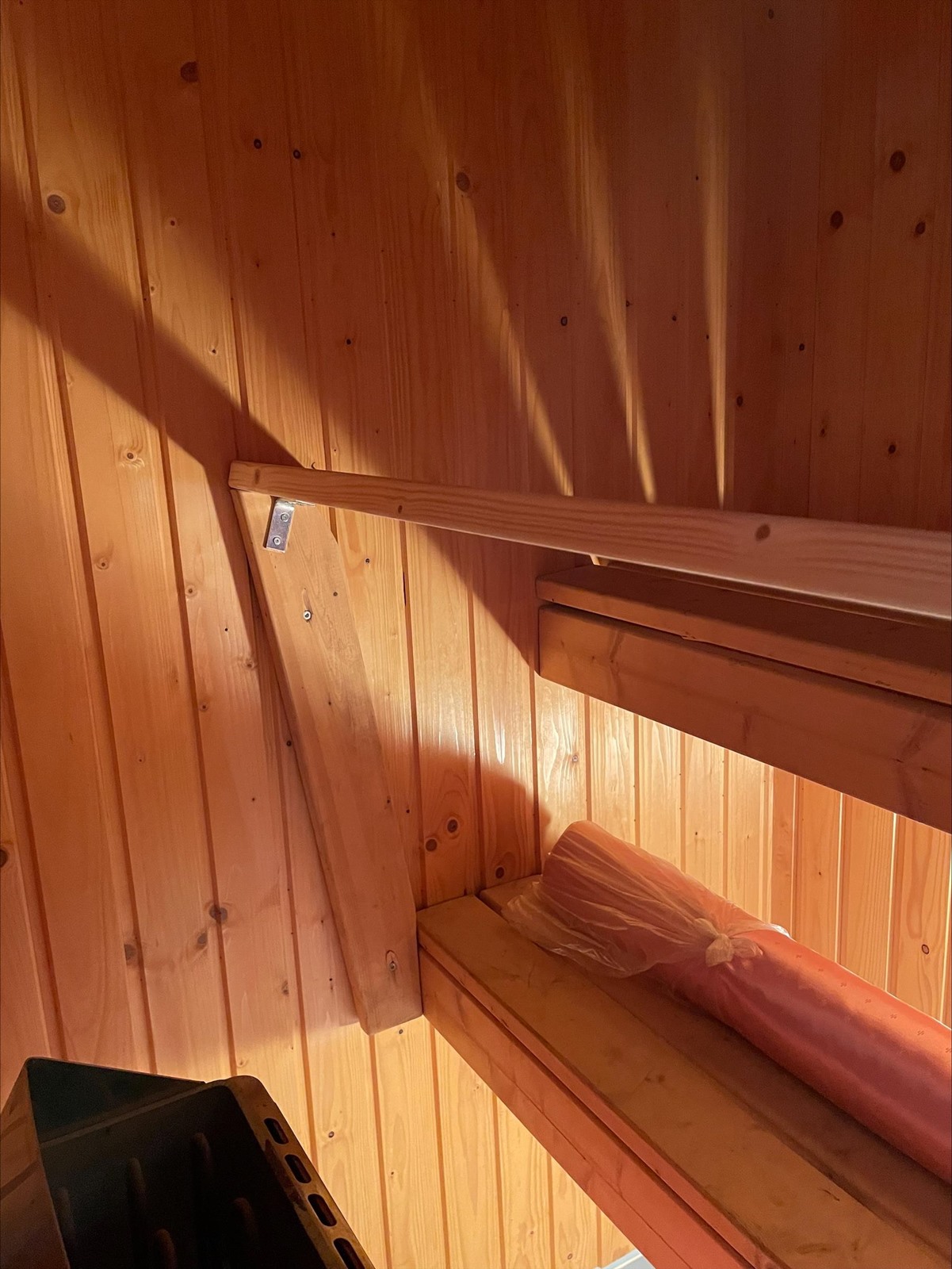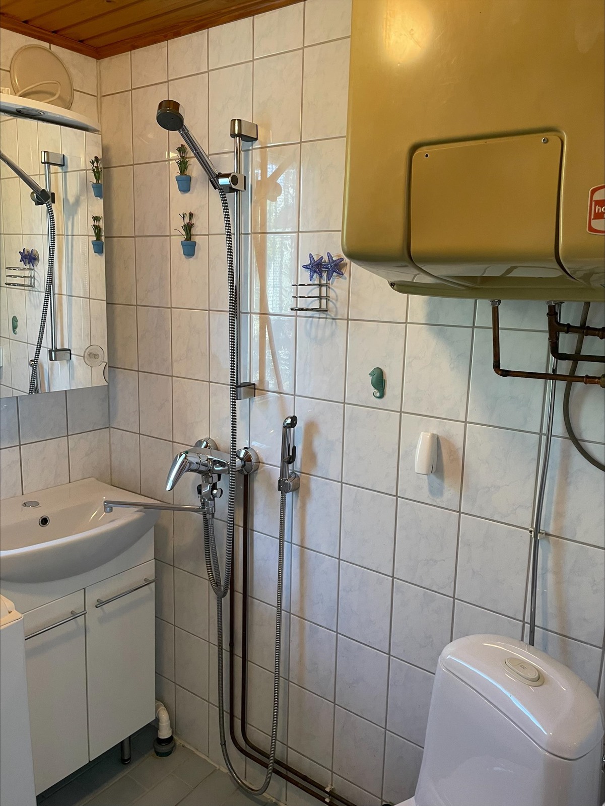 - Sauna, sähkökiuas, kylpyhuone wc, suihku, peilikaappi, allaskaappi, pesukoneliitäntä, kiinteät valaisimet. Kylpyhuone remontoitu 2002.