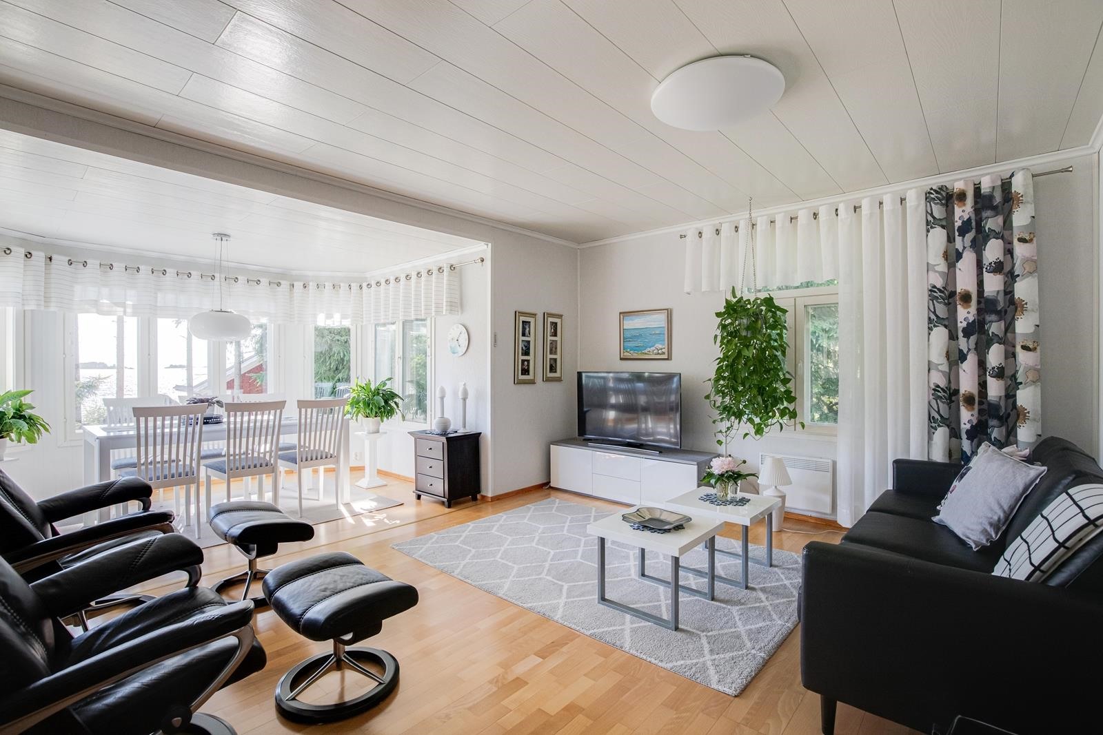 Merikarvialla, Alakylässä idyllinen ja kaunis kohde, joka soveltuu ympärivuotiseksi kodiksi. Vuonna 1946 rakennettu talo joka on remontoitu vuosina 2000-2005. Keittiö on remontoitu vuonna 2007 ja sieltä löytyy modernit kodinkoneet sekä puuhella. Alakerrassa on keittiön lisäksi olohuone, jossa on iso varaava takka. Lisäksi alakerrasta löytyy makuuhuone, jossa on Balladi-uuni sekä kylpyhuone/wc. Yläkerrassa on iso makuuhuone sekä siistit ullakkotilat, joissa paljon säilytystilaa. Pihassa on autotalli/varastorakennus, kaunis vierashuone kesävieraita varten sekä saunarakennus, jossa on kunnon puulämmitteinen kiuas. Nikkarointiin löytyy paikka niin saunarakennuksesta kuin autotallistakin. Oma ranta, josta pääsee uimaan, suppailemaan, kalastamaan tai veneilemään. Tähän rantaan pääsee isommallakin veneellä ja veneelle löytyy myös oma venesuuli säilytystä varten.