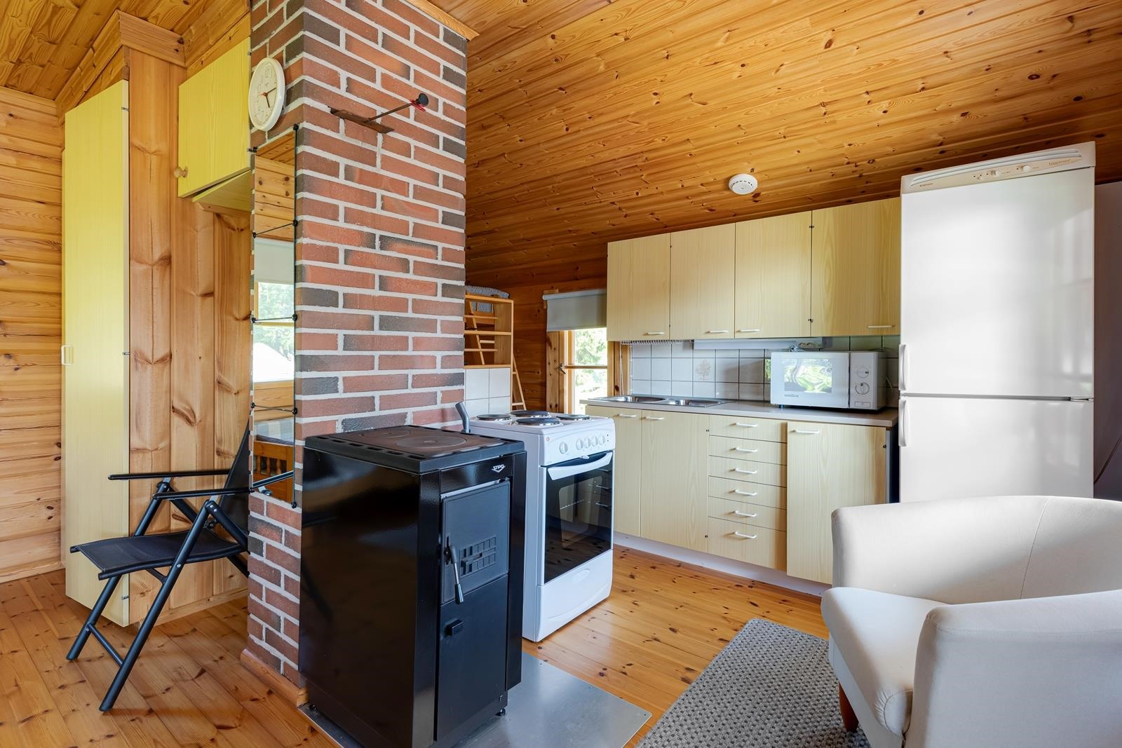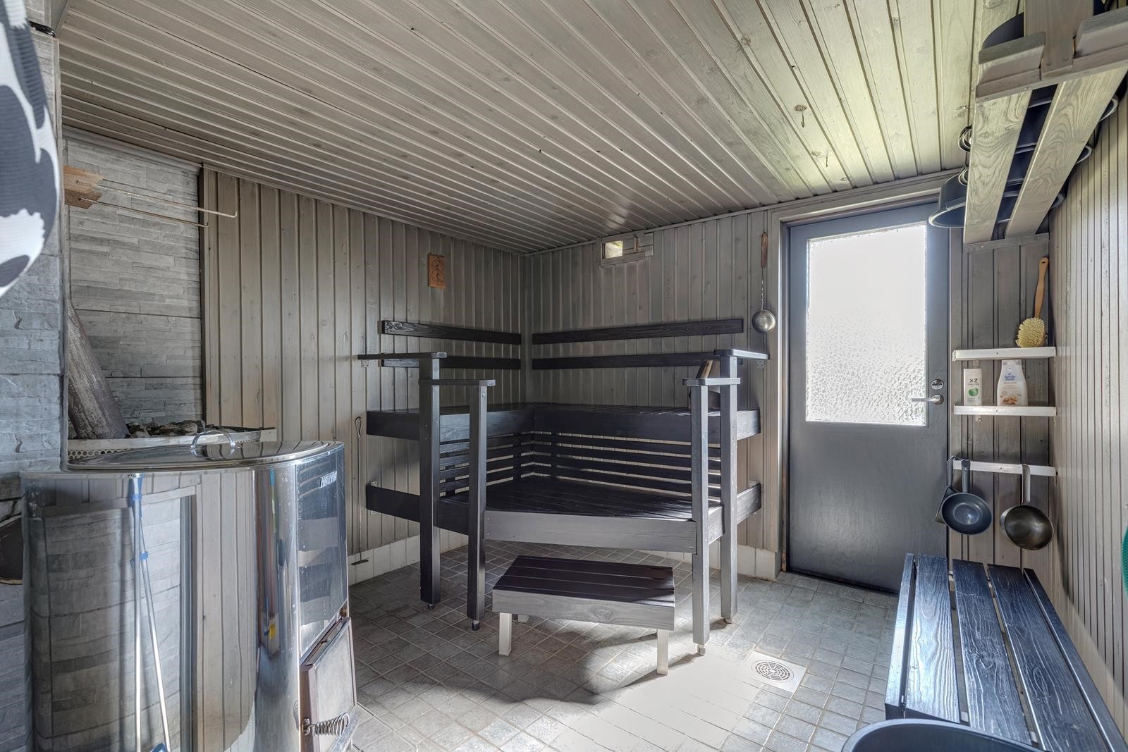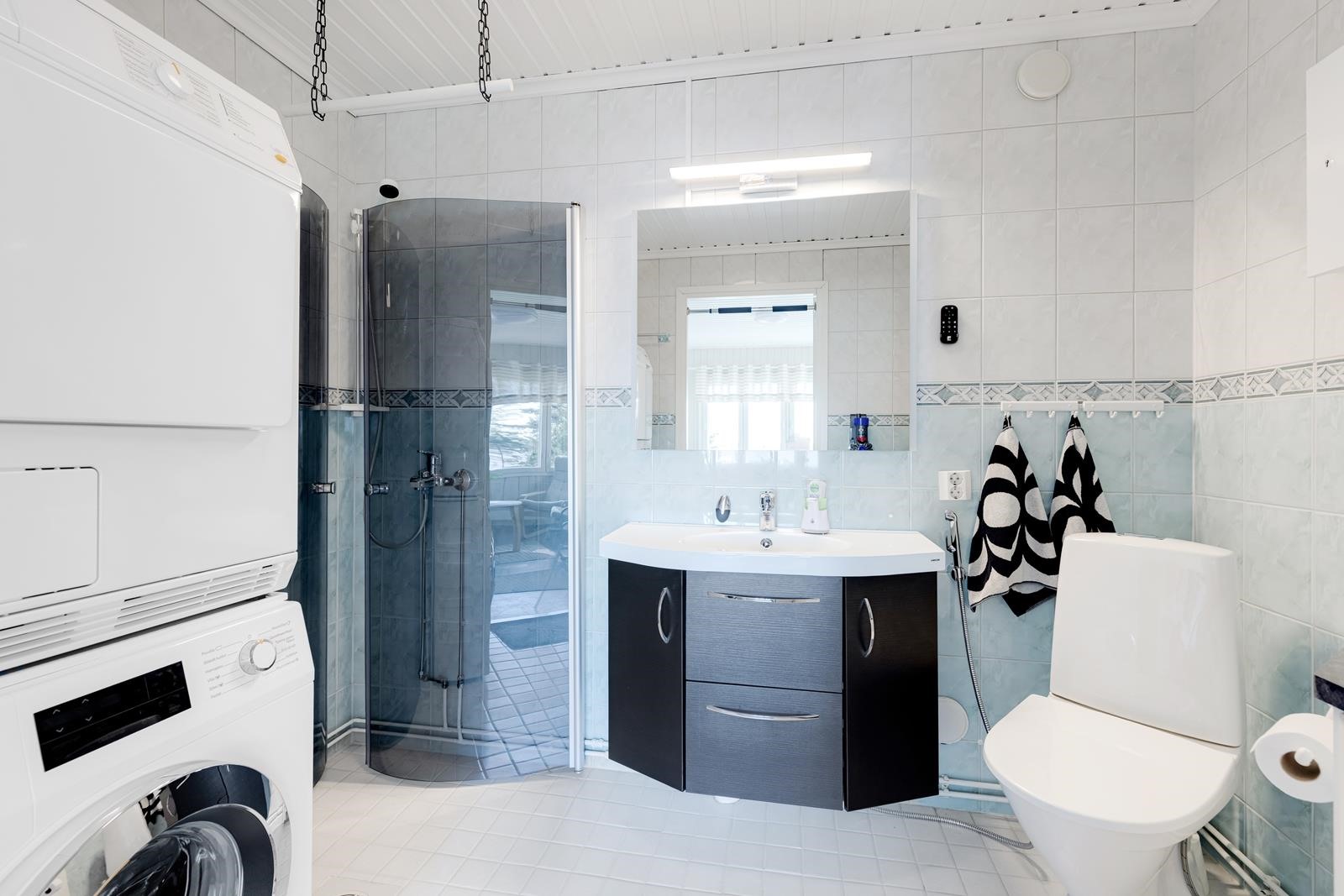 - Sauna Rantasauna, puukiuas, kylpyhuone /wc, suihku, suihkuseinä, peilit, kaapit, allaskaappi, pesukoneliitäntä, lattialämmitys kph/wc, kiinteät valaisimet.