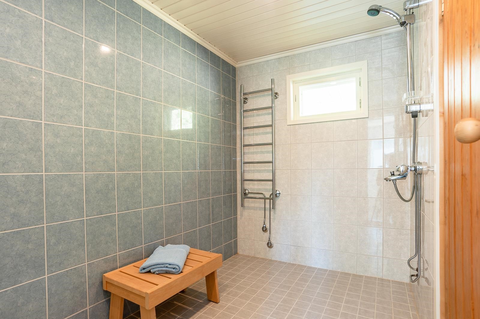 - Sauna, puukiuas, kylpyhuone, erillinen wc, suihku, peilit, peilikaappi, allaskaappi, pesukoneliitäntä, lattialämmitys, kiinteät valaisimet.