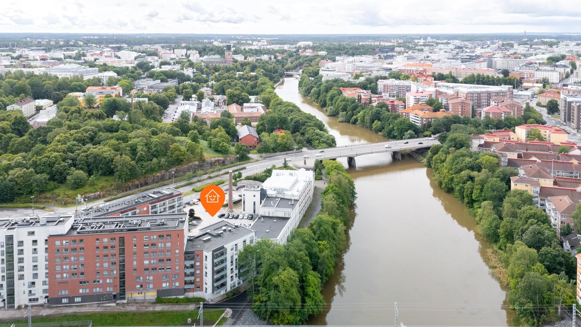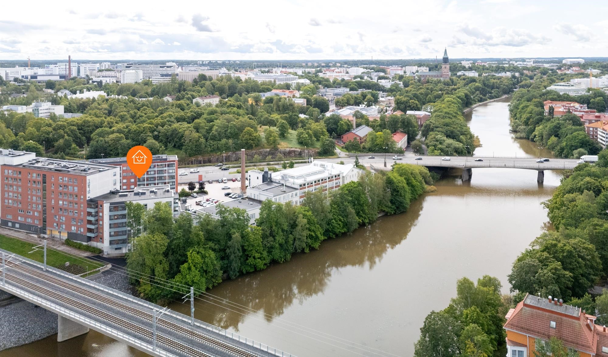 - Näkymät on Aurajoelle yli kevyenliikenteen väylän.