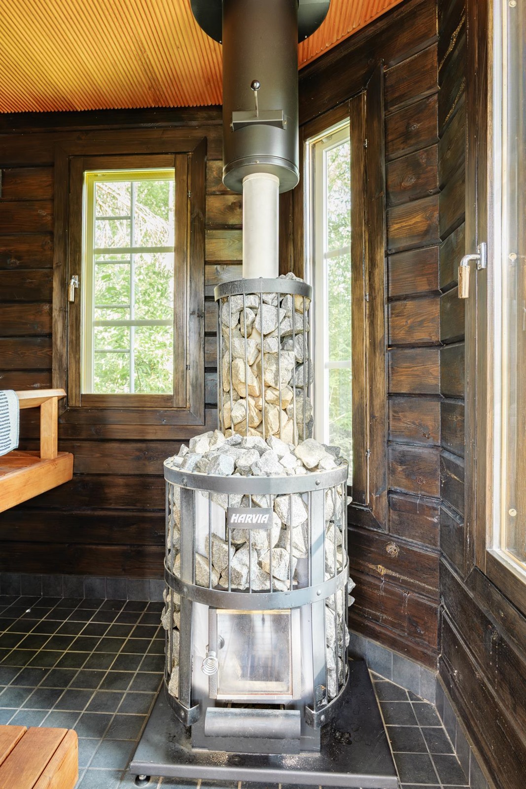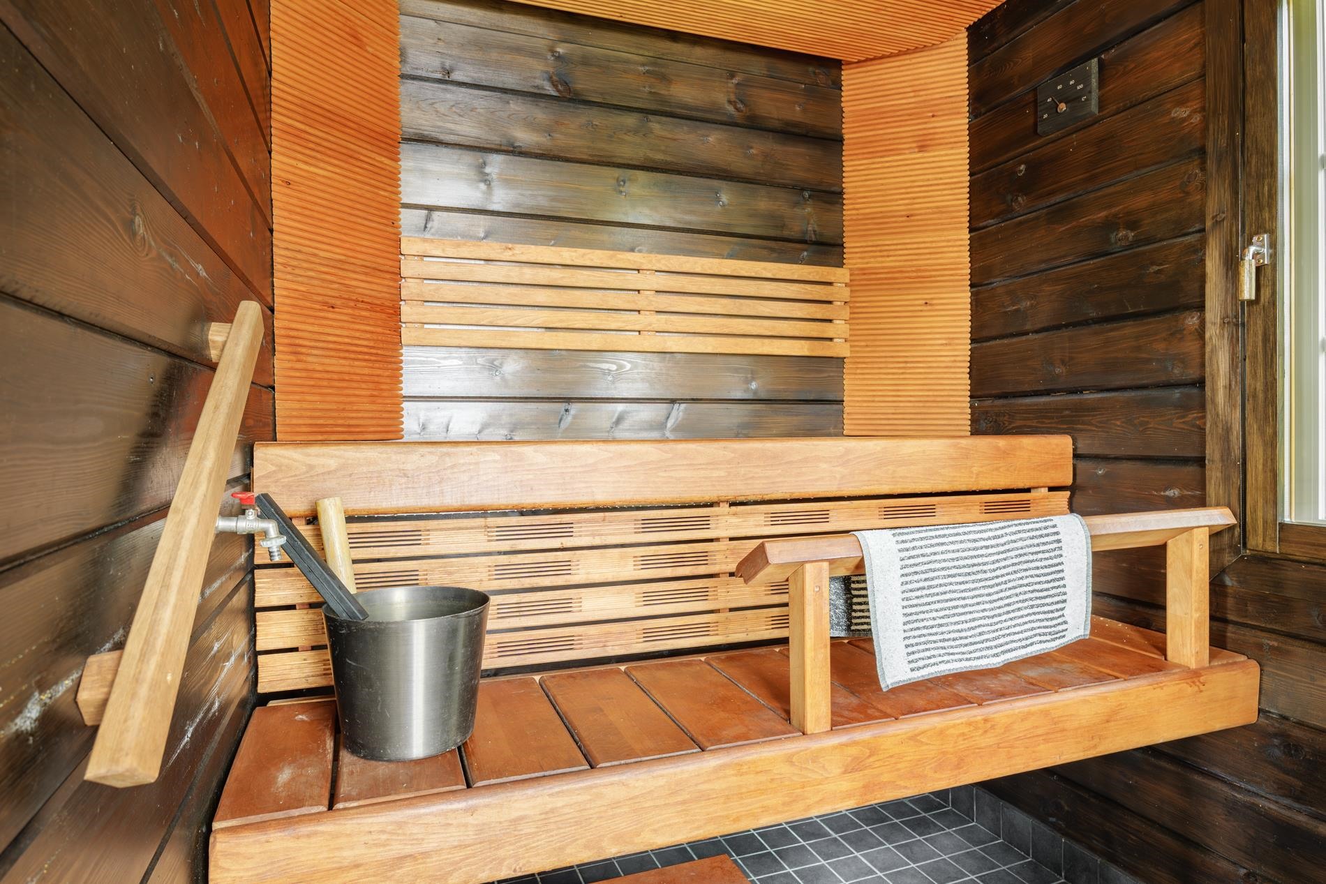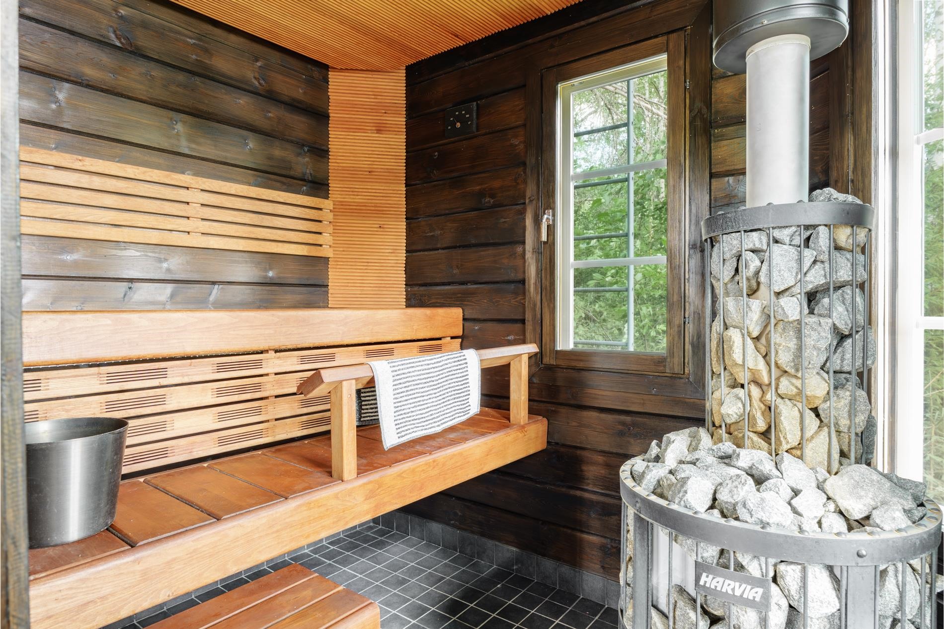 Sauna on tunnelmallinen ja parasta laatua niin materiaalien kuin näkymienkin osalta. Tietysti erillinen suihku, sekä iso terassi vilvoitteluun. Kovapohjainen, normaalisti syvenevä lapsillekin soveltuva ranta kutsuu pulahtamaan saunomisen välissä, saunan jälkeen on mukava viilentyä saunan terassilla ja ihailla kaunista näkymää. Tontin ilmansuunta on etelään päin, joten aurinkoa ja valoisuutta ei tule uupumaan.