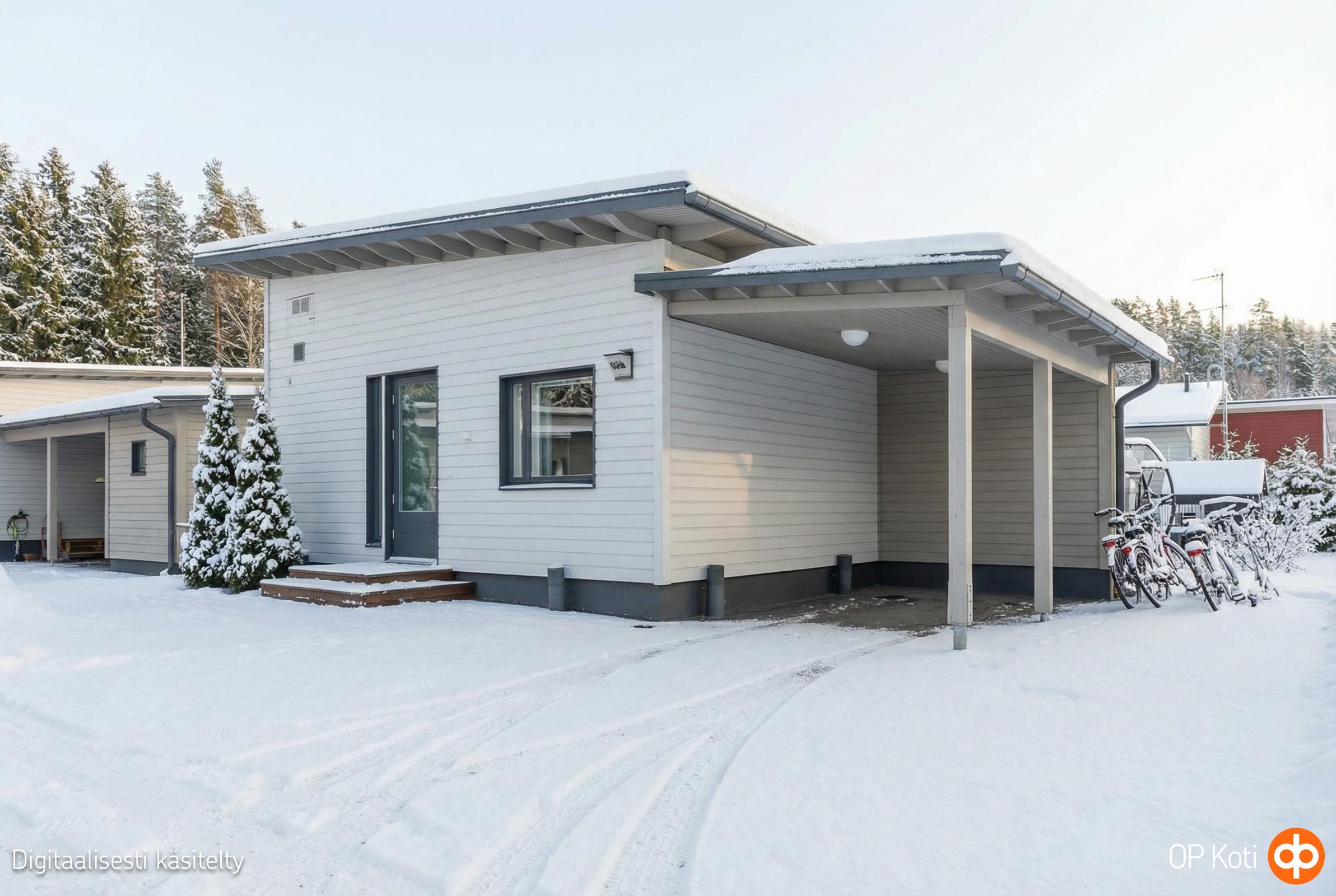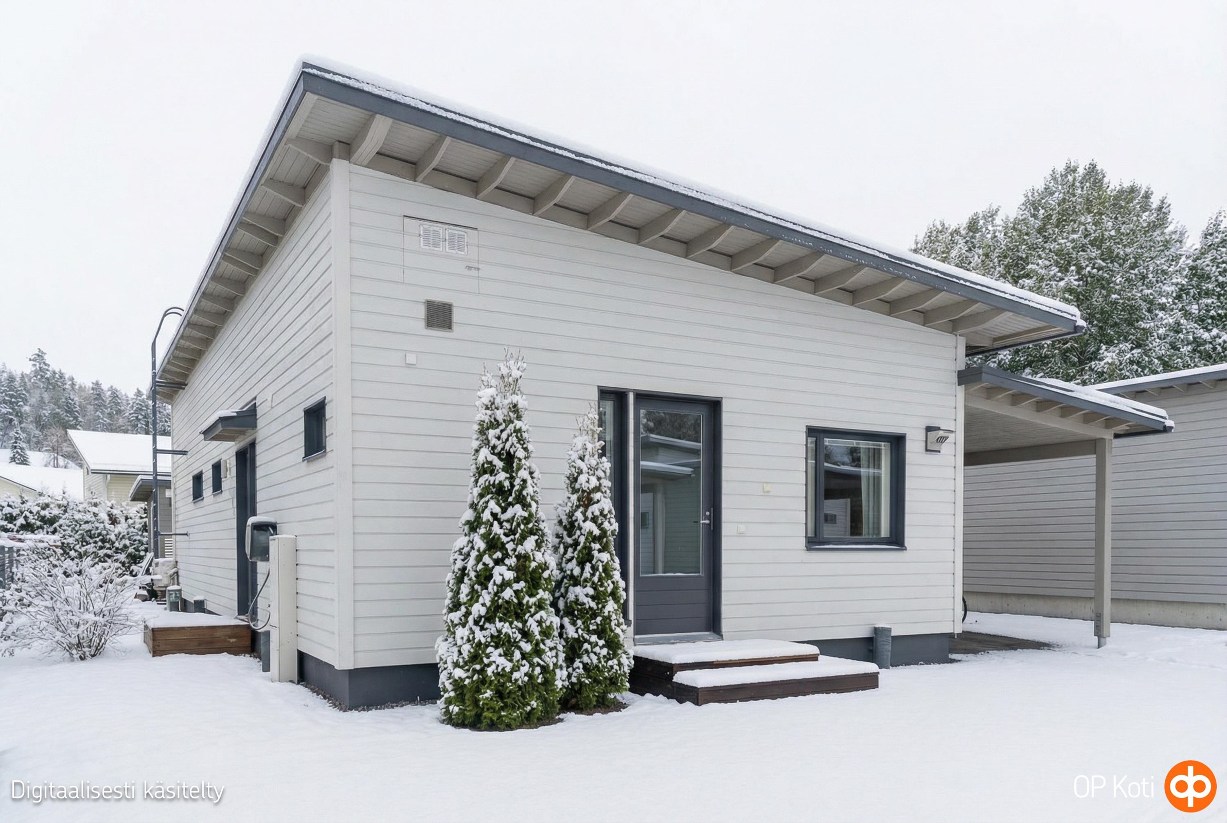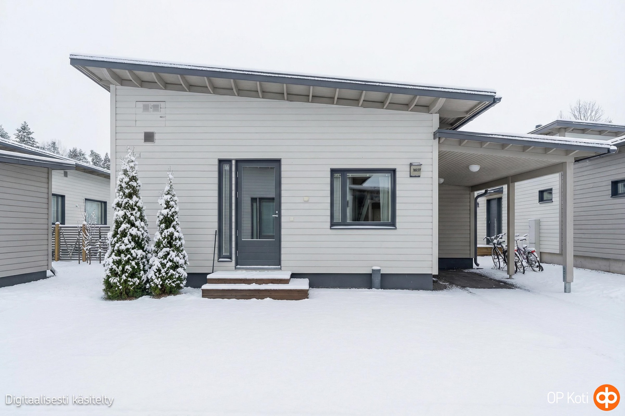 Vuonna 2018 valmistunut, Arkkitehtitoimisto Ponkala Oy:n suunnittelema Design-Talo-malliston omakotitalo sijaitsee kahdeksan talon modernissa pihapiirissä. Talot on rakennettu yhteiselle tontille hallinnanjakosopimuksella, ja jokaisella on oma, itsenäisesti hoidettava hallinta-alue. Autokatos ja pihavarasto kuuluvat talon yhteyteen, ja lisäautopaikat sijaitsevat katosten välissä. Tasainen tonttipiha tarjoaa loistavat puitteet niin lasten leikeille kuin viherpeukalon projekteille. Kodin varastohuoneen kautta pääsee suoraan pihalle - moni onkin muokannut noin 7 m² varastotilasta kolmannen makuuhuoneen tai työhuoneen.