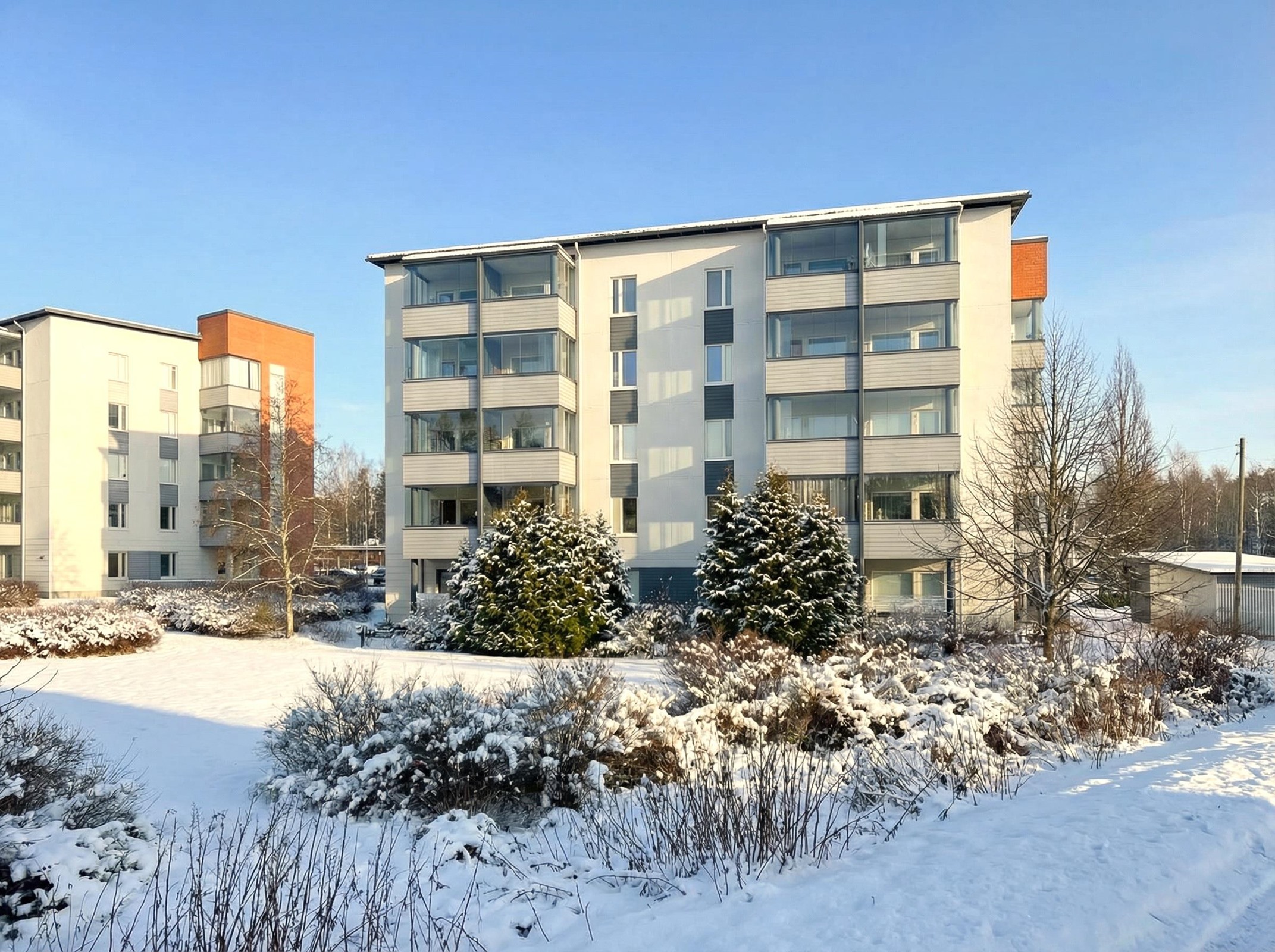 Asunnon tilava pohjaratkaisu on suunniteltu toimivuutta silmällä pitäen. Kodissa on kaksi makuuhuonetta, olohuone, keittiö, kylpyhuone ja sauna. Kylpyhuoneessa on tilaa pesukoneelle, ja oma sauna kutsuu rentoutumaan. Upealla lasitetulla kulmaparvekkeella nautit olostasi aina aikaisesta keväästä pitkälle syksyyn. Asunnon ilmalämpöpumppu (asennettu 2023) takaa miellyttävän sisäilman ympäri vuoden.