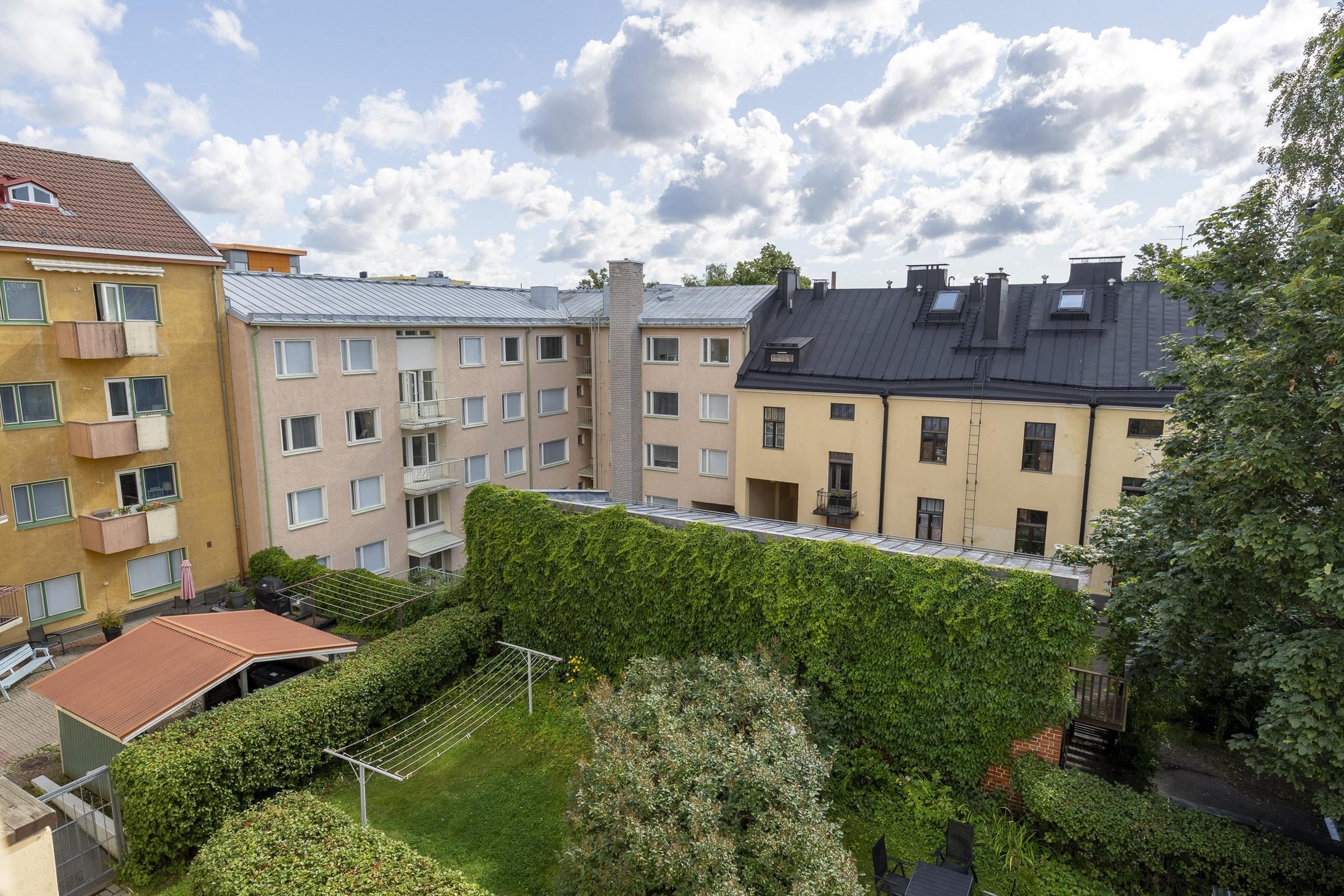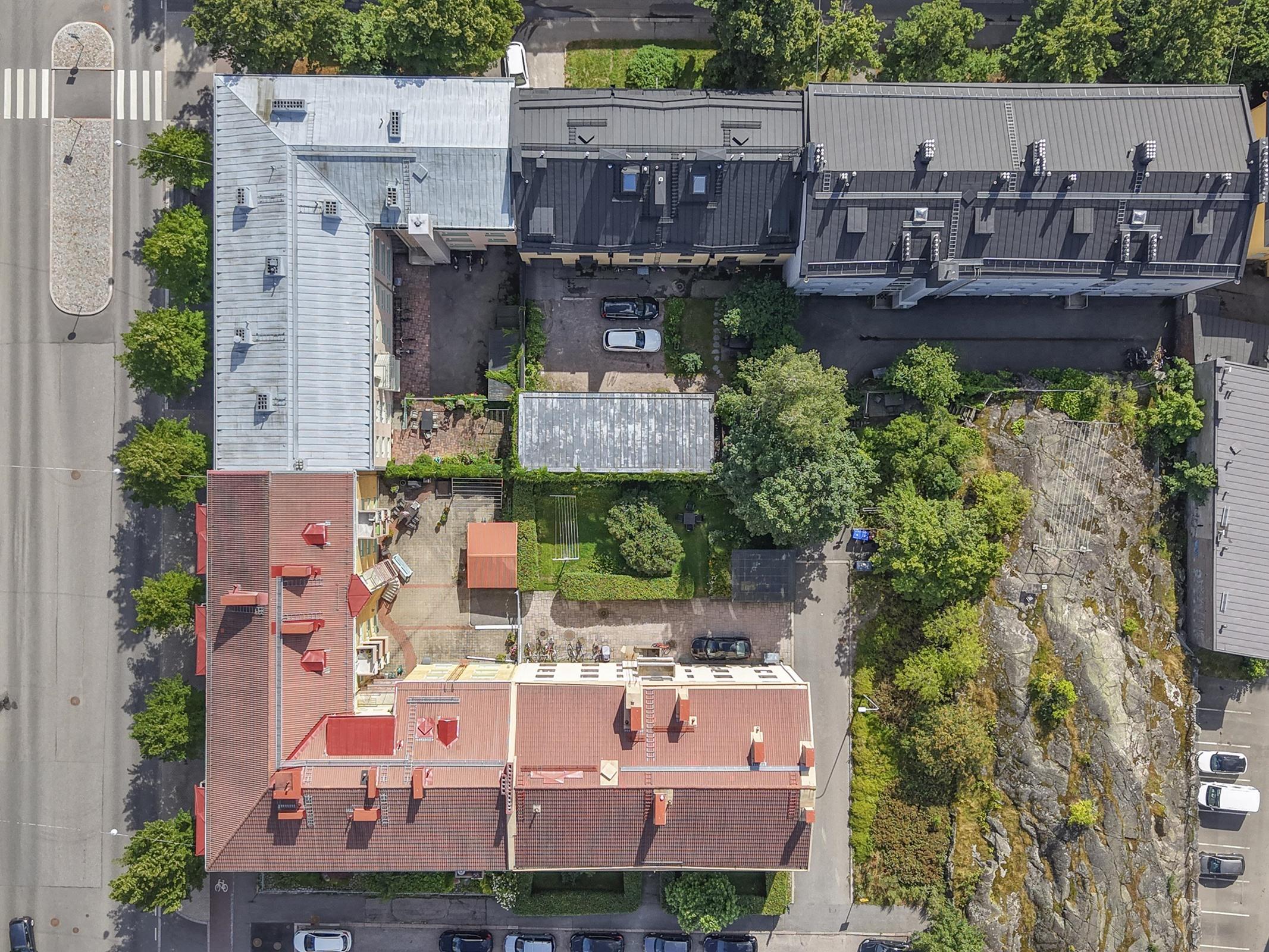 Taloyhtiöllä on viihtyisä piha-alue. Vehreä ja hyvin hoidettu sisäpiha tarjoaa asukkaille mahdollisuuden rentoutua, viettää aikaa ulkona tai vaikka nauttia aamukahvit kesäauringossa.