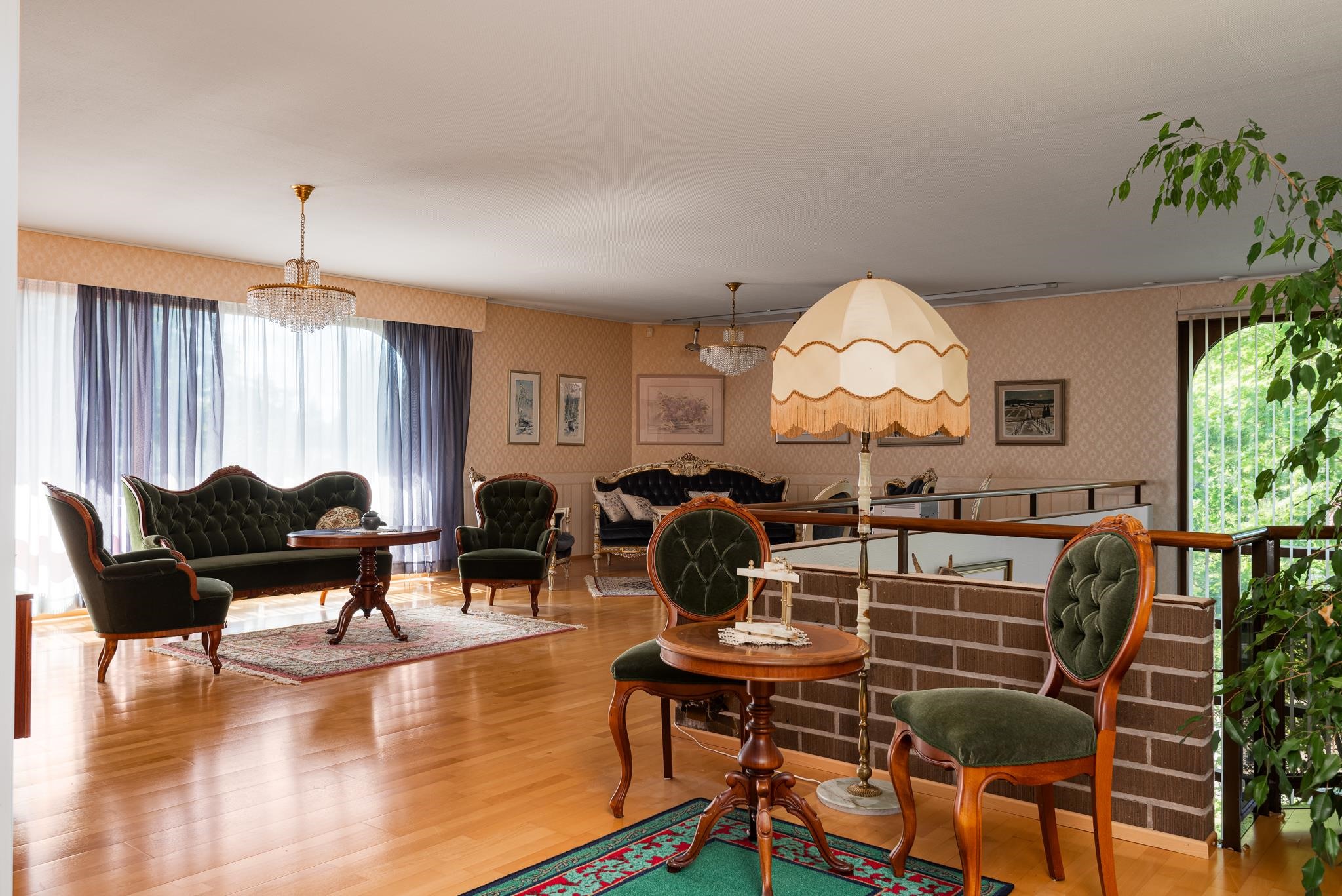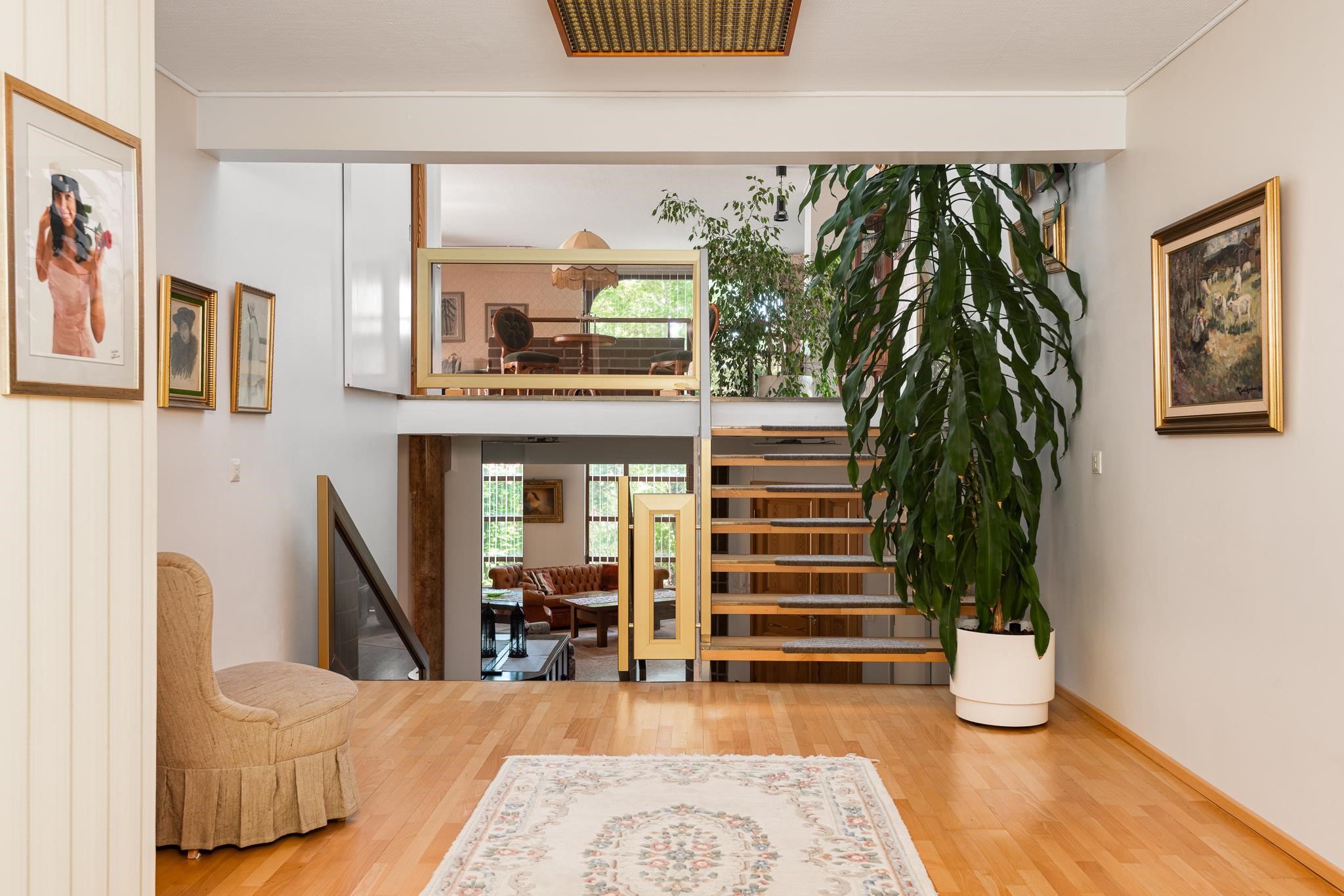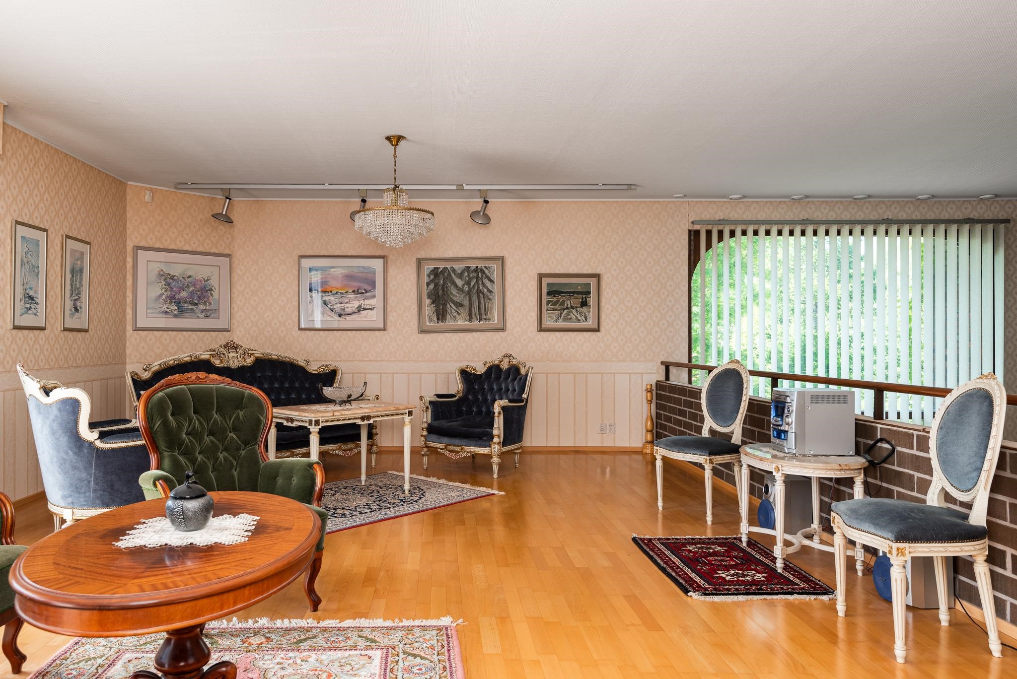 Arkkitehti Kaj Nordmanin suunnittelema suuri kivitalo, jossa on upeita tiloja, uniikkeja yksityiskohtia ja paljon huoneita. Avaran talon eri tasot luovat vaikuttavaa tunnelmaa ja yksityisyyttä suuremmankin perheen asumiseen tai yritystoimintaan kotona.