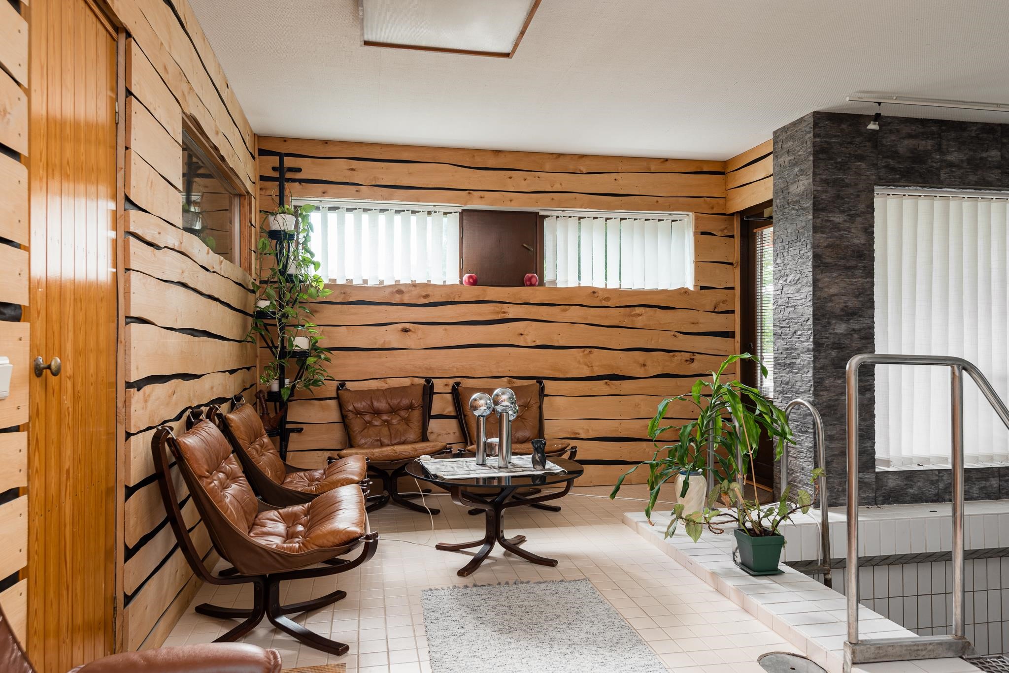Pesuhuone ja keittiö on remontoitu muutama vuosi sitten. Viihtyisä uima-allashuone oleskelutiloineen ja allasbaareineen. Varsinainen allastila on tällä hetkellä kätevästi kuntosalina.