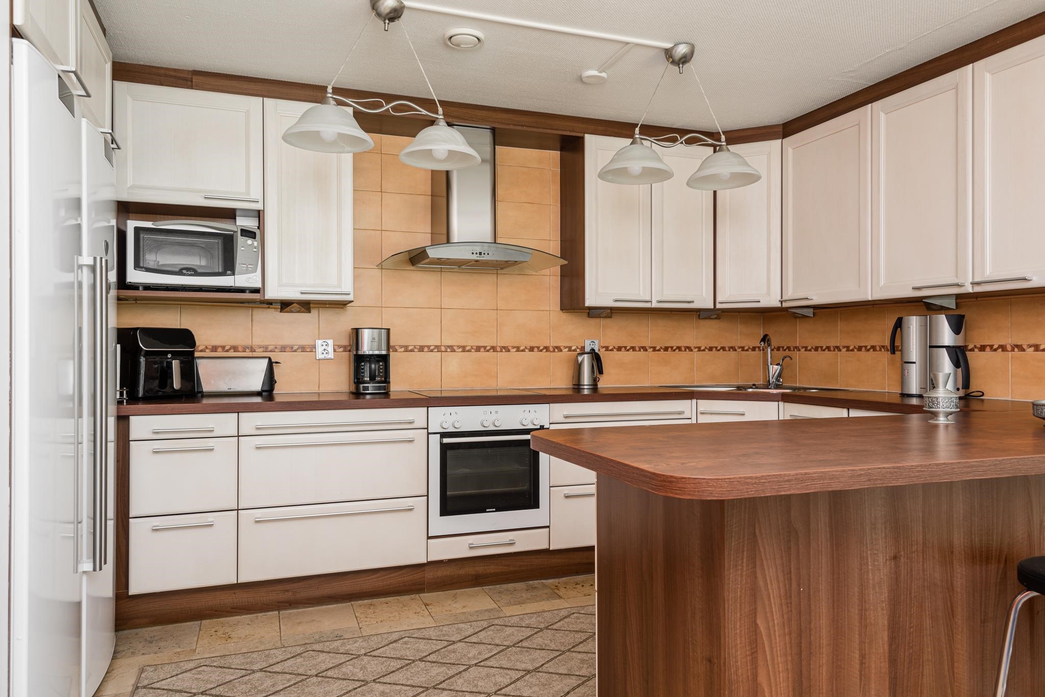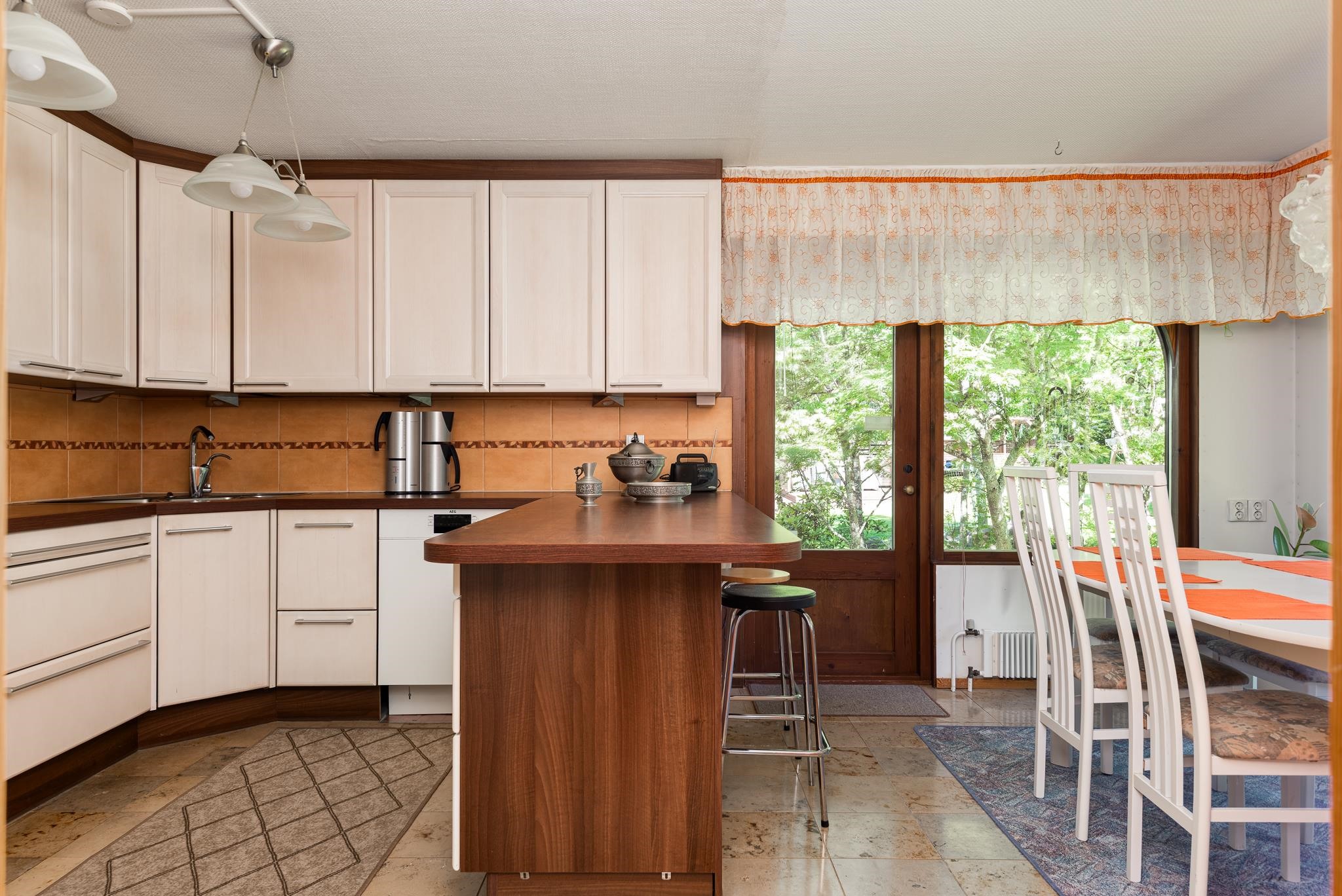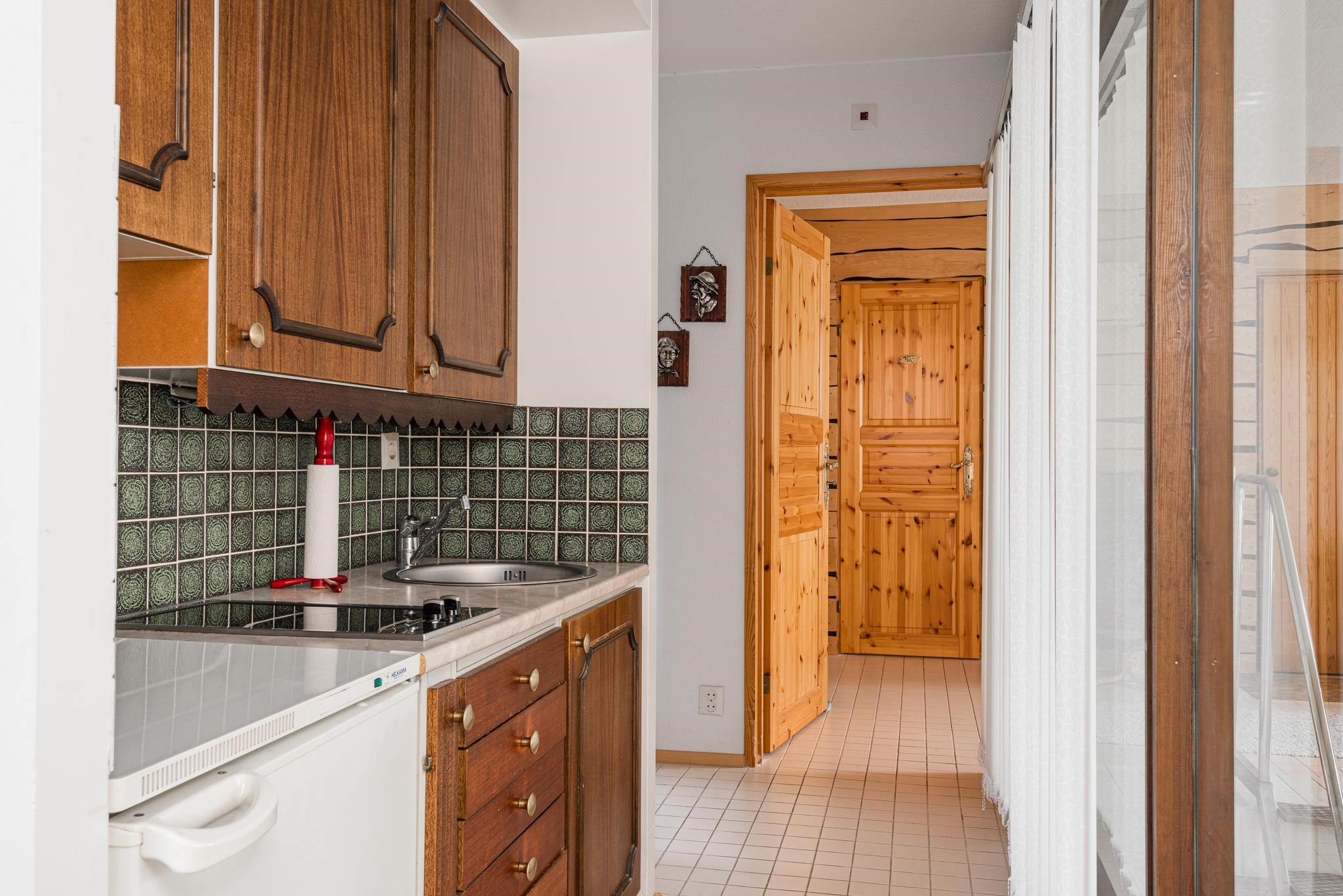 - Jääkaappi, pakastekaappi, erillisuuni, liesitaso, keraaminen liesi, liesituuletin, astianpesukone, kaapistot Puustelli, kiinteät valaisimet, pöytätasojen materiaali laminaatti.