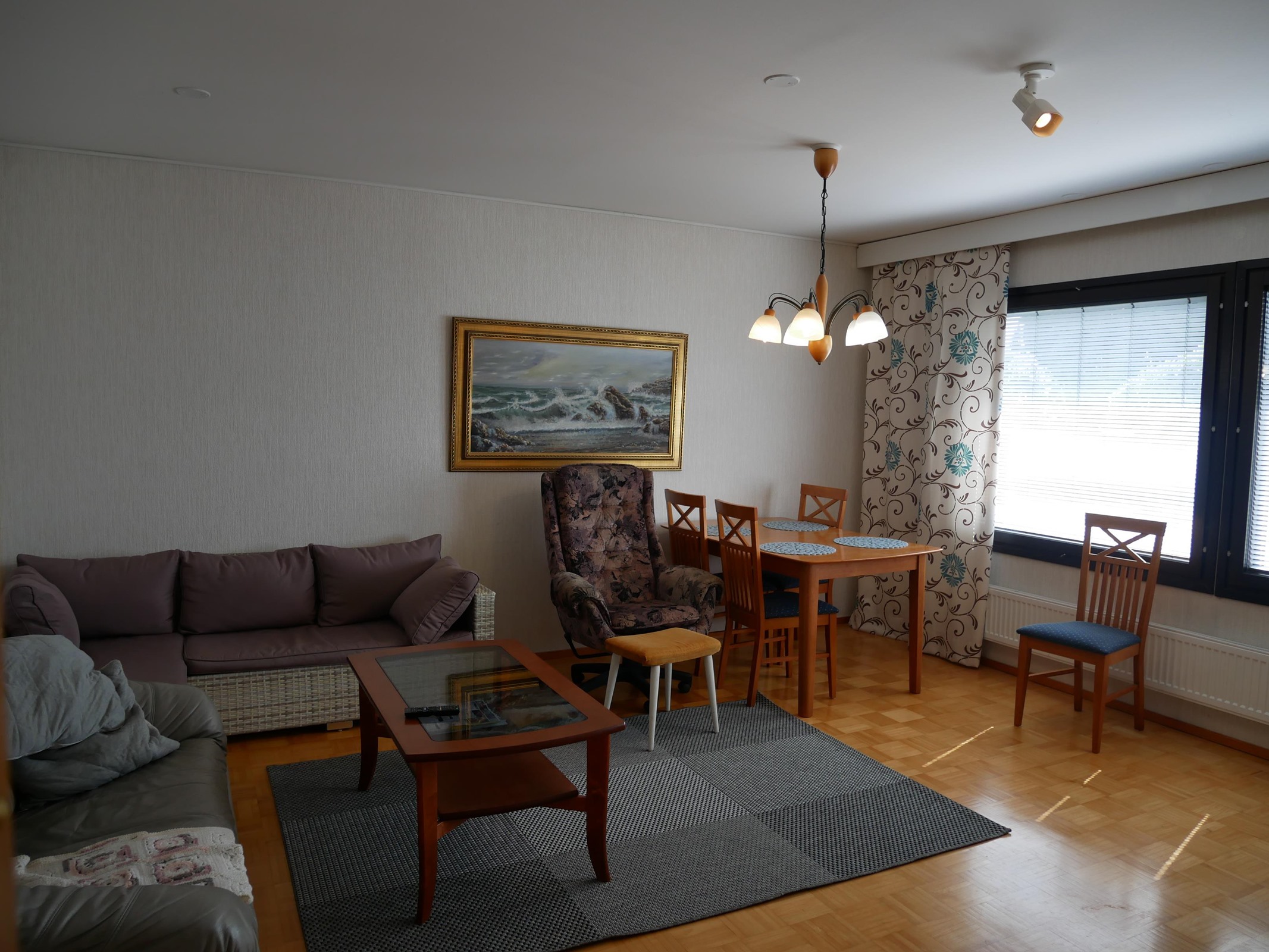 Keittiö: parketti, puolipaneeli tapetti. Olohuone: parketti, tapetti. Makuuhuone 1: parketti, tapetti. Makuuhuone 2: parketti, tapetti. Kodinhoitohuone: laatta, laatta/maali. Sauna: laatta, paneeli. Kylpyhuone: laatta, laatta. Wc: laatta, laattal.