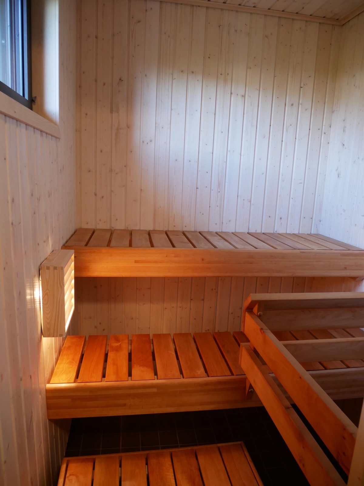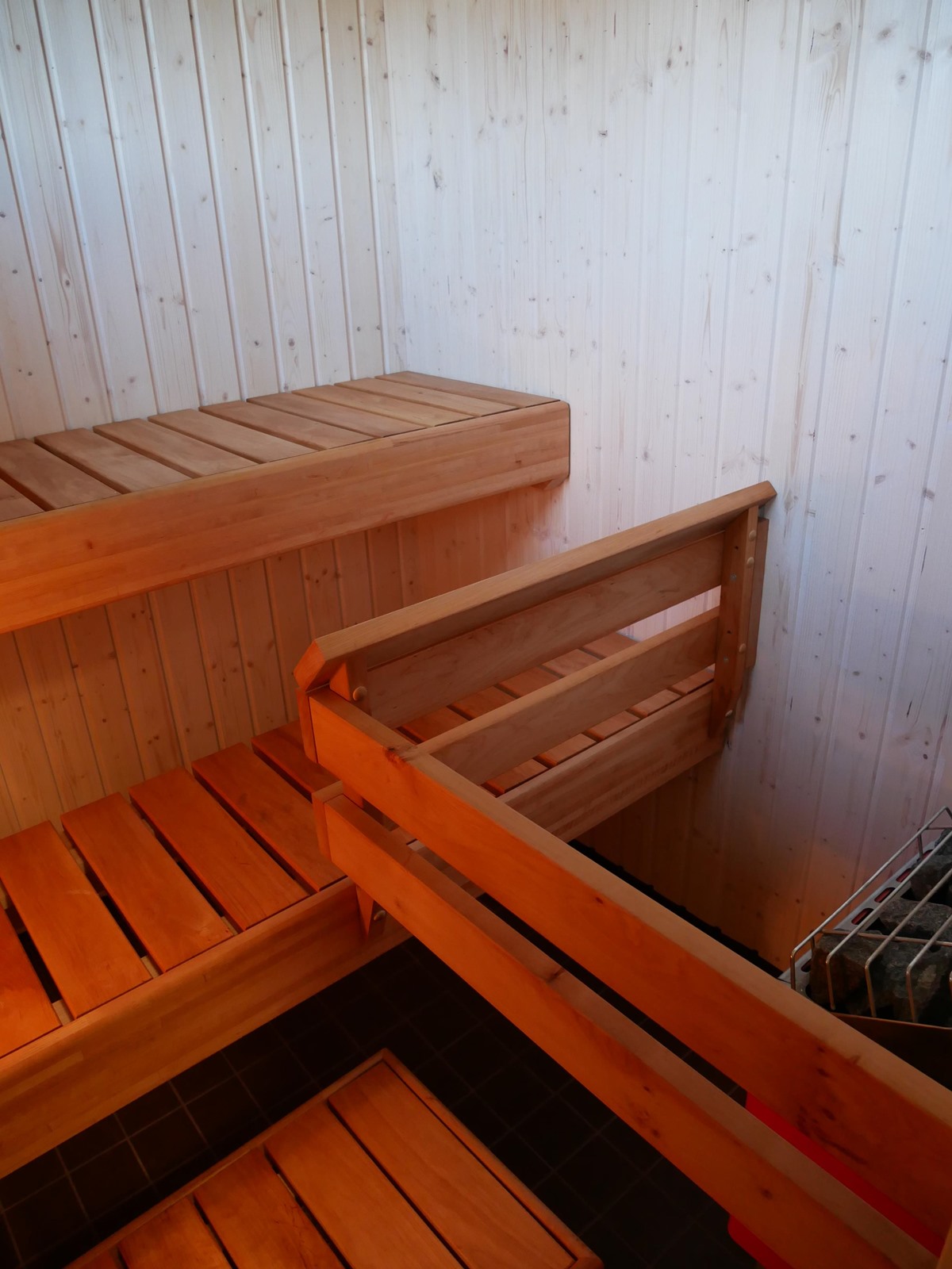 - Sauna, sähkökiuas, kylpyhuone, erillinen wc, suihku, peilikaappi, allaskaappi, pesukoneliitäntä khh, kiinteät valaisimet.