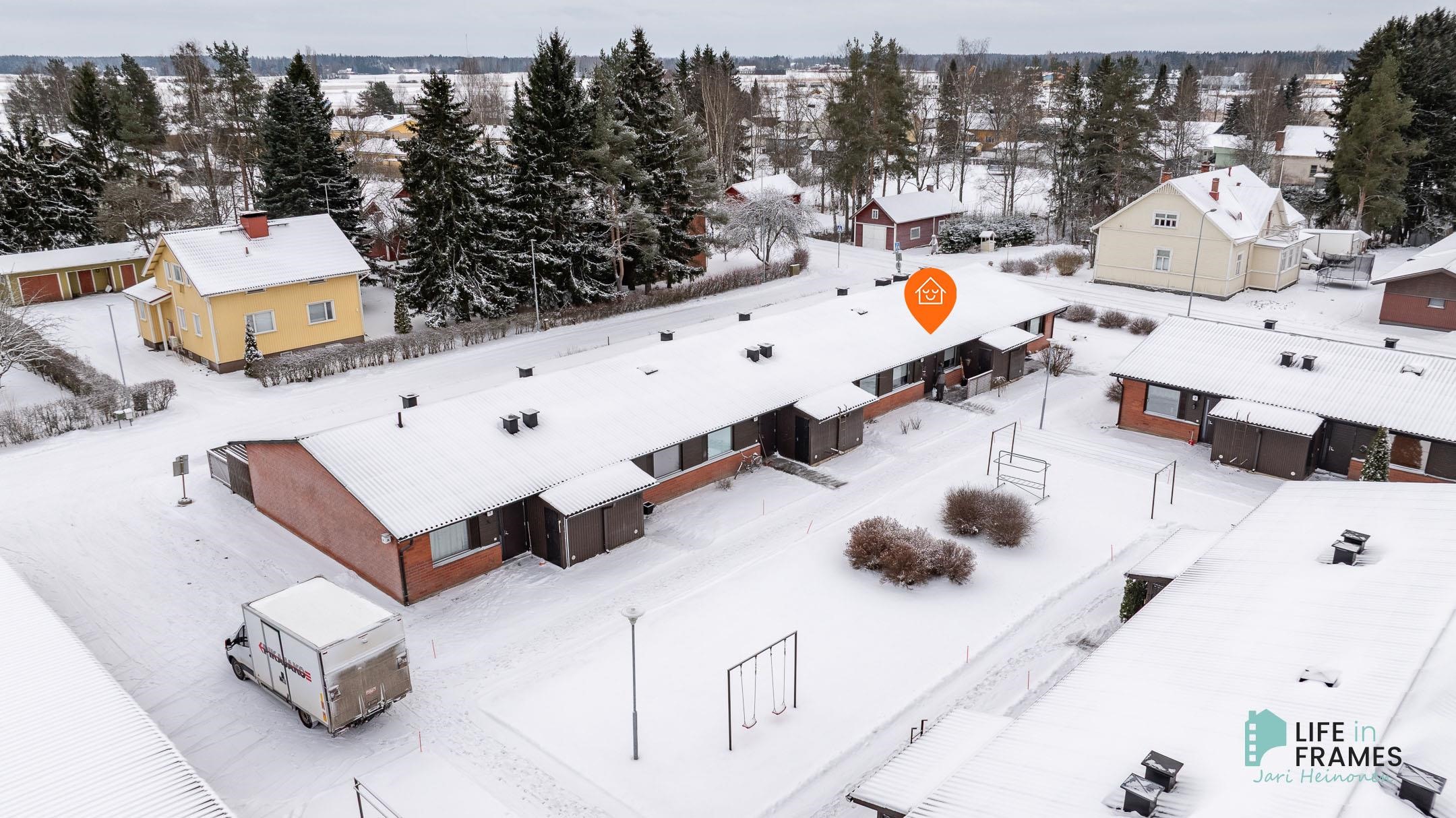 Osittain remontoitu saunallinen rivitalokaksio lähellä Huittisten palveluita. Viihtyisä ja aidattu takapiha, jossa hyvänkokoinen terassilaidoitus, nurmialue sekä perenna. Yhtiössä on tehty muun muassa vuonna 2020 käyttövesiputkiremontti sekä liitytty valokuituverkkoon sekä vuonna 2002 uusittu ulko- ja terassiovet. Lisäksi vuoden 2009 jälkeen on suoritettu kattava määrä esimerkiksi julkisivujen huolto- ja kunnostustöitä. Lämmitysmuotona kaukolämpö. Asunnolle kuuluu lisäksi autokatospaikka ja ulkovarasto.