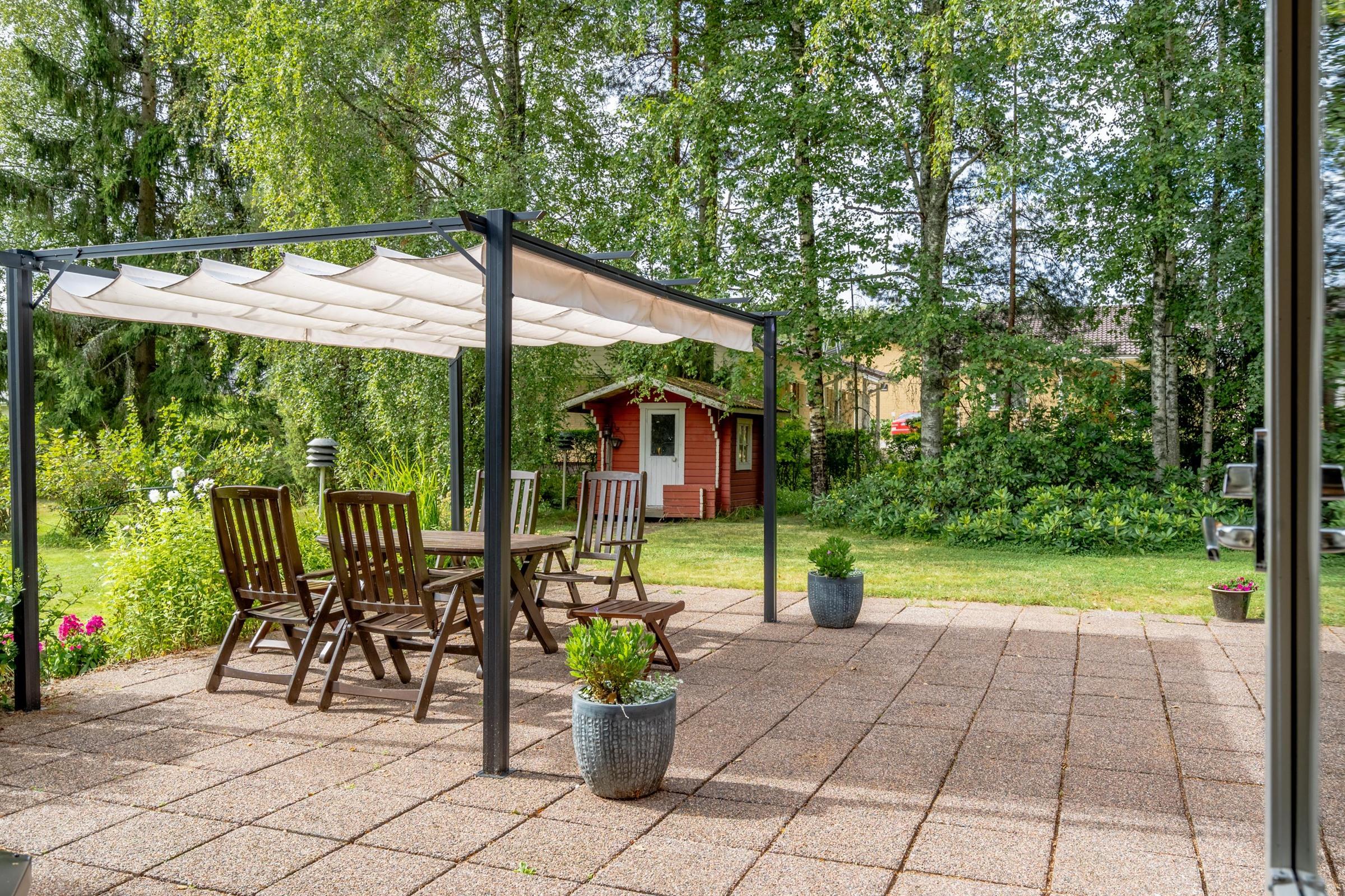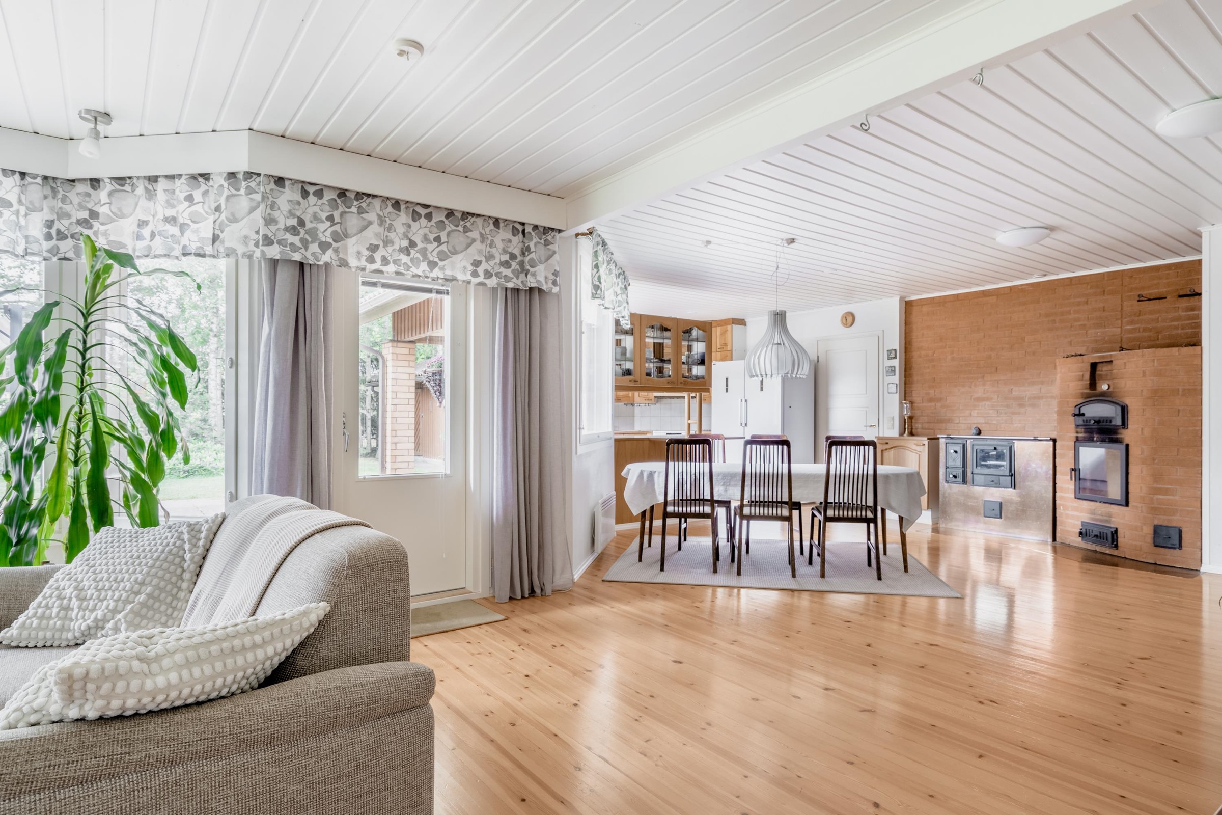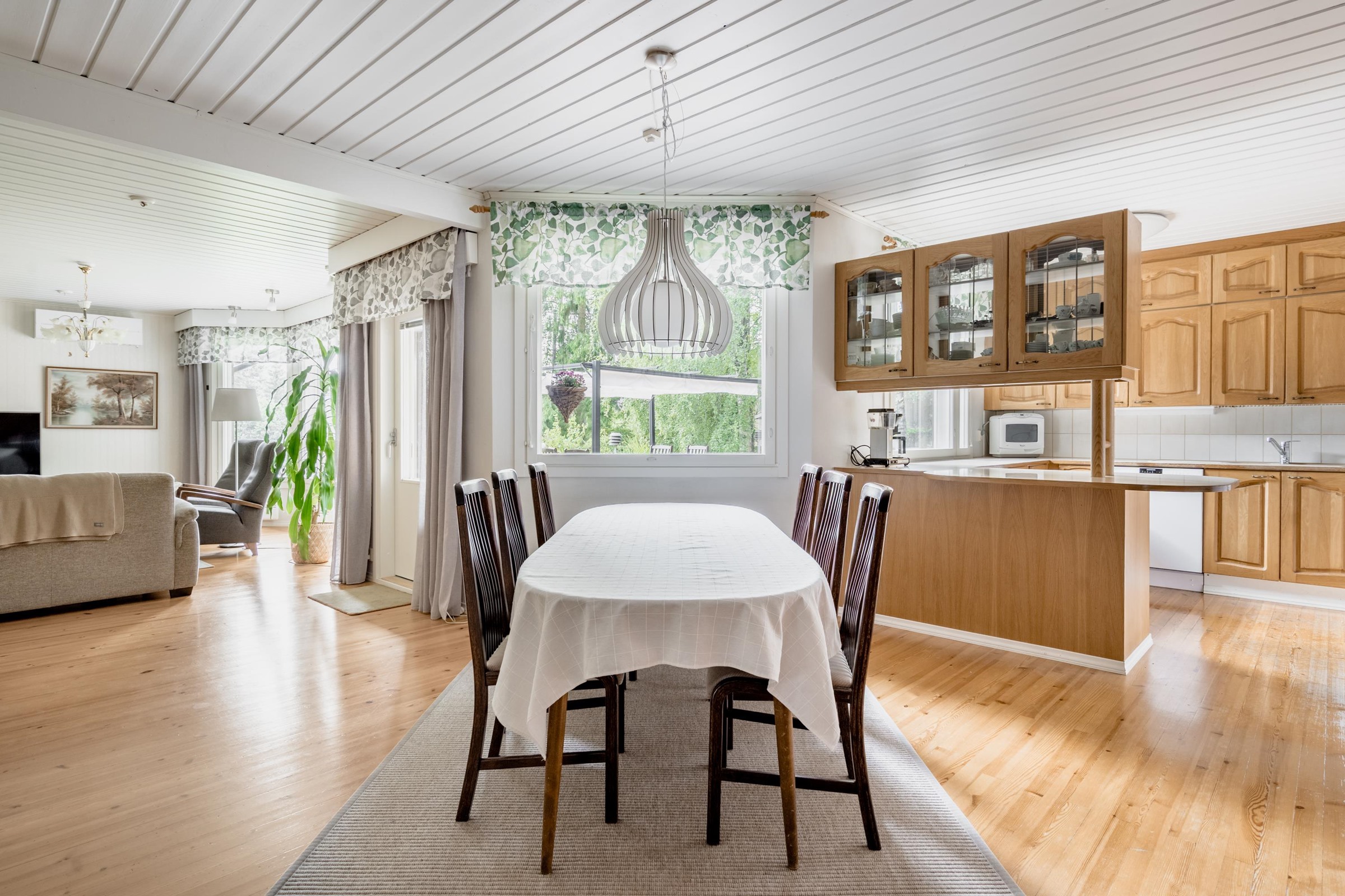 Upean avara neljän makuuhuoneen talo isolla tontilla Tässä kodissa on huomattavan avaraa yhtenäistä tilaa yhdessä tasossa, jo sisään astuessa huomaat kuinka hyvin tilat on suunniteltu perheen arkeen ja juhliin. Sisääntulon tilava laatoitettu eteinen on helppohoitoinen, kaappitilaa on riittävästi isommallekin vierasmäärälle. Eteisestä avautuu näkymät kodin yhteisiin tiloihin jossa keittiö yhdistyy ruokailutilaan ja olohuoneeseen luoden viihtyisän ja avaran kokonaisuuden. Keittiö on toimiva, kotikokille löytyy lisäksi mainio puuhella ja leivinuuni jonka vieressä varaava takka tuo olohuoneeseen tunnelmaa Olohuone on myös mahtavan kokoinen ja valoisa, suuret ikkunat tuovat hienosti esiin suuren ja suojaisen takapihan johon onkin hienot näkymät, pihalle pääset suoraan olohuoneesta ja tilavan kodinhoitohuoneen kautta. Hyvin suunniteltu makuuhuoneiden sijoittelu mukautuu perheen ja tarpeen mukaan, kaappitilaa löytyy kaikista makuhuoneista ja yhdessä makuuhuoneessa on lisäksi vaatehuone. Tilava on myös kodinhoitohuone, johon mahtuu kaikki tarvittava ja enemmänkin. Kodinhoitohuoneesta pääset kylpyhuoneeseen ja saunaan sekä viihtyisälle laatoitetulle takapihalle. Sauna ja kylpyhuone on päivitetty 2005, saunaan on jätetty mahdollisuus puukiukaalle. Tontti ja piha-alue on hurmaava, takapihalla on valmiiksi suuri laatoitettu alue jossa valmiina pergola, sekä runsaasti tilaa istutuksille sekä hyötykasveille. Asfaltoidulle etupihalle mahtuu hyvin kaikki kulkupelit, autokatoksen alle kaksi autoa. Katoksen yhteydessä on lämmin varasto josta saat tarvittaessa virtaa sähköautollesi, varastossa bonuksena pieni maakellari. Taloon tulee valmiiksi valokuitu, lämmityskuluja madaltaa 2022 asennettu ilmalämpöpumppu ja tarvittaessa varaava takka. Sijainti on myös erinomainen, Riihikallion ja kasvavan Hyrylän palvelut ovat lähellä, samoin upouusi Riihikallion uusi koulu noin 200 m päässä kuten myös päiväkoti. Harrastuksiin täällä on myös hyvät mahdollisuudet, lähellä ovat mm. upea Hyrylän urheilupuisto, uimahalli, urheilusalit, kuntorata ja ulkoilumaastot. Hyvät liikenneyhteydet Helsingin ja muun pääkaupungin suuntaan tekevät arjesta sujuvaa niin julkisilla kuin omalla autolla liikkuville. Täällä asustelet omassa rauhassa, aurinkoinen tontti on hyvin suojaisa ja rauhallinen. Talo on suunniteltu tälle isolle tontille niin että toisellekin talolle jää tarvittaessa hyvät tilat, rakennusoikeutta on hyvin jäljellä ja toiselle talolle on valmiina oma sisäänkäynti. Kiinteistöön on tehty Susteran kuntotarkastus 2025.