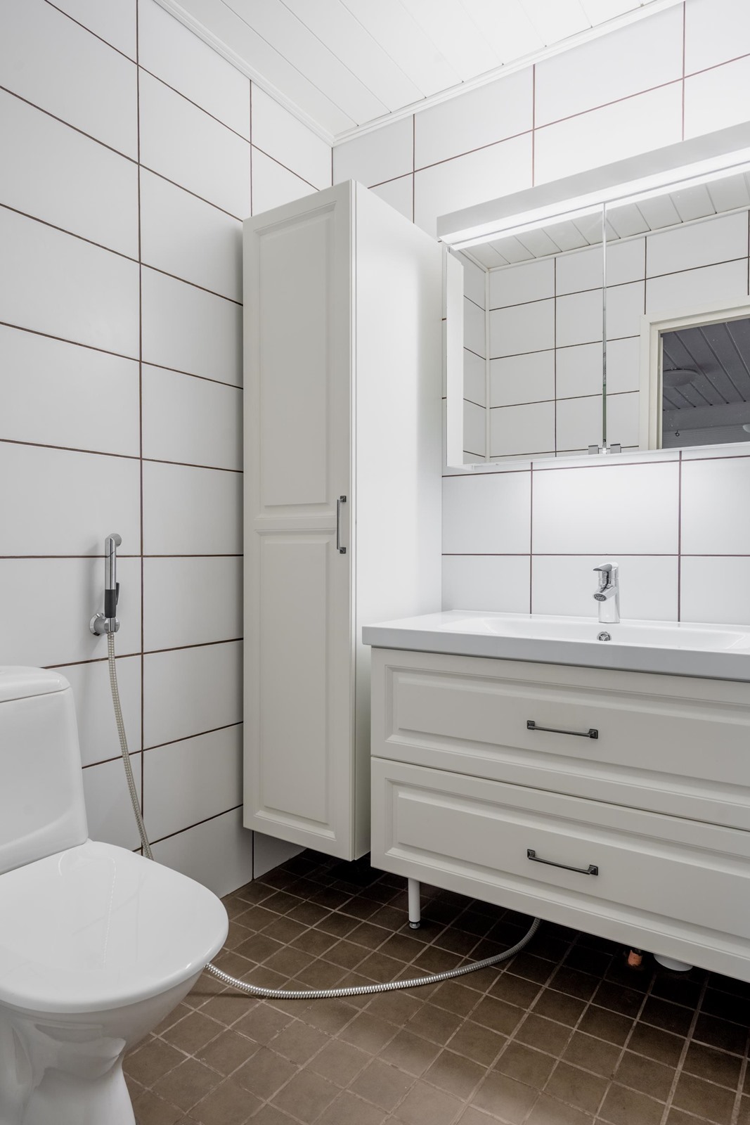 - Sauna Uusittu 2005, sähkökiuas Mahdollisuus myös puukiukaalle, kylpyhuone Uusittu 2005, lattialämmitys, erillinen wc Uusittu 2021, lattialämmitys, suihku, suihkuseinä Uusittu 2005, lattialämmitys Kylpyhuone, wc, eteinen.