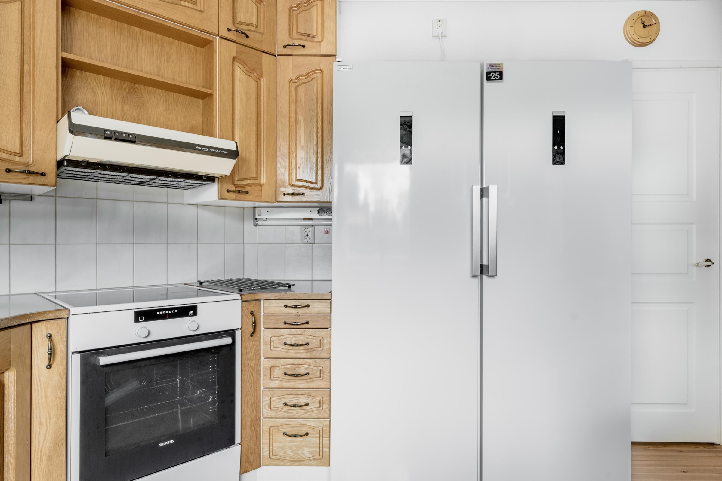 - Jääkaappi 10/ 2024, pakastekaappi 10/ 2024, induktioliesi, leivinuuni Takan yhteydessä, astianpesukone. Puuliesi Vuolukivihella ja uuni. Tilava ja avara keittiö