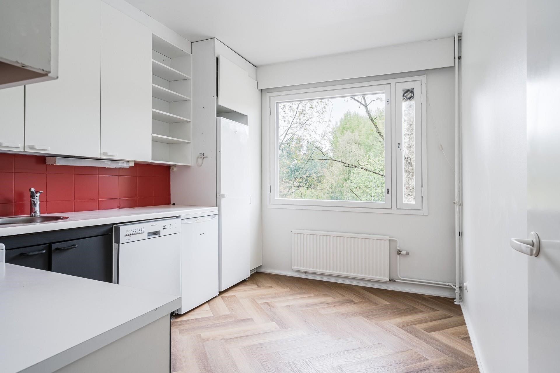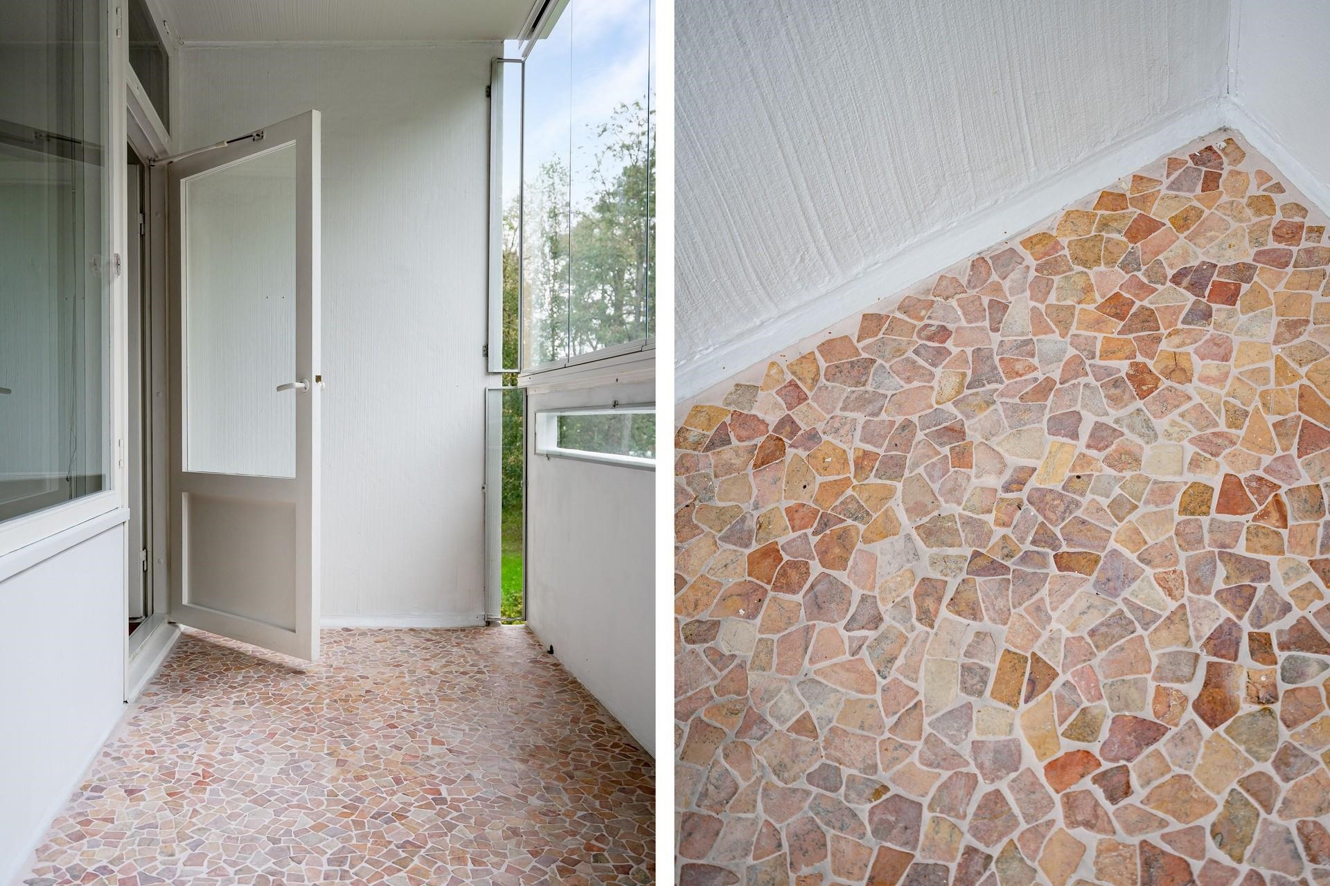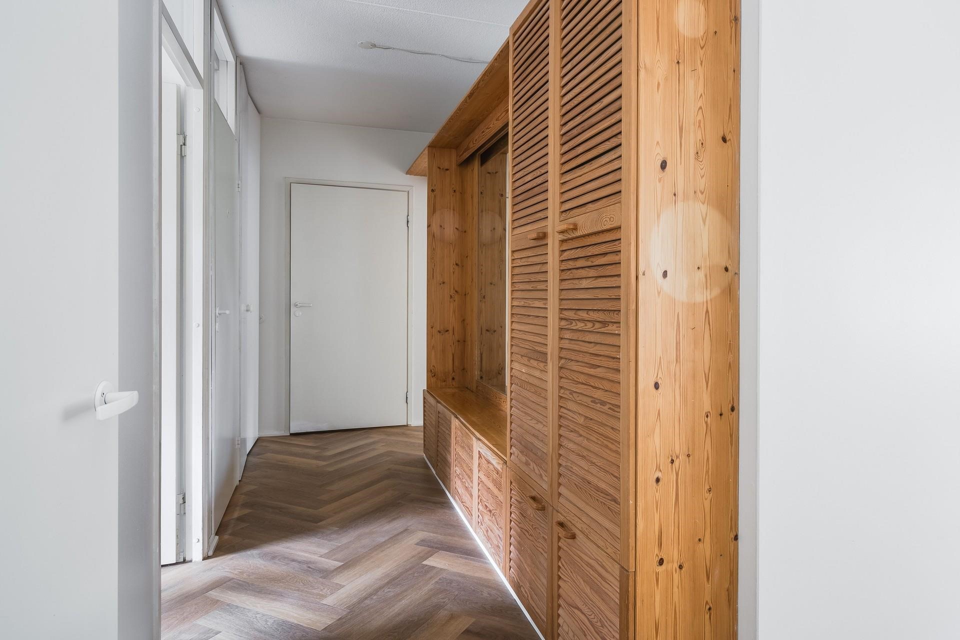 Asunnossa on tilava vaatehuone, joka sijaitsee kätevästi eteisen yhteydessä. Etelään suuntautuva lasitettu parveke tarjoaa miellyttävän paikan rentoutua ja nauttia päivänvalosta. Asunnon pintoja on juuri kunnostettu kattavasti: Katot ja seinät on maalattu. Keittiöön ja eteiseen on asennettu tyylikäs vinyylilattia. Keittiön kaapinovet ovat saaneet uuden maalipinnan ja välitilan kaakelit uusittu, tuoden raikkaan ilmeen koko tilaan.