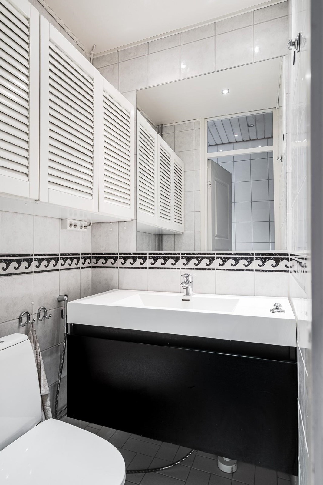 - Kylpyhuone, suihku, peilikaappi, kaapit, allaskaappi, lattialämmitys sähköinen (vessa ja kylpuhuone), kiinteät valaisimet.