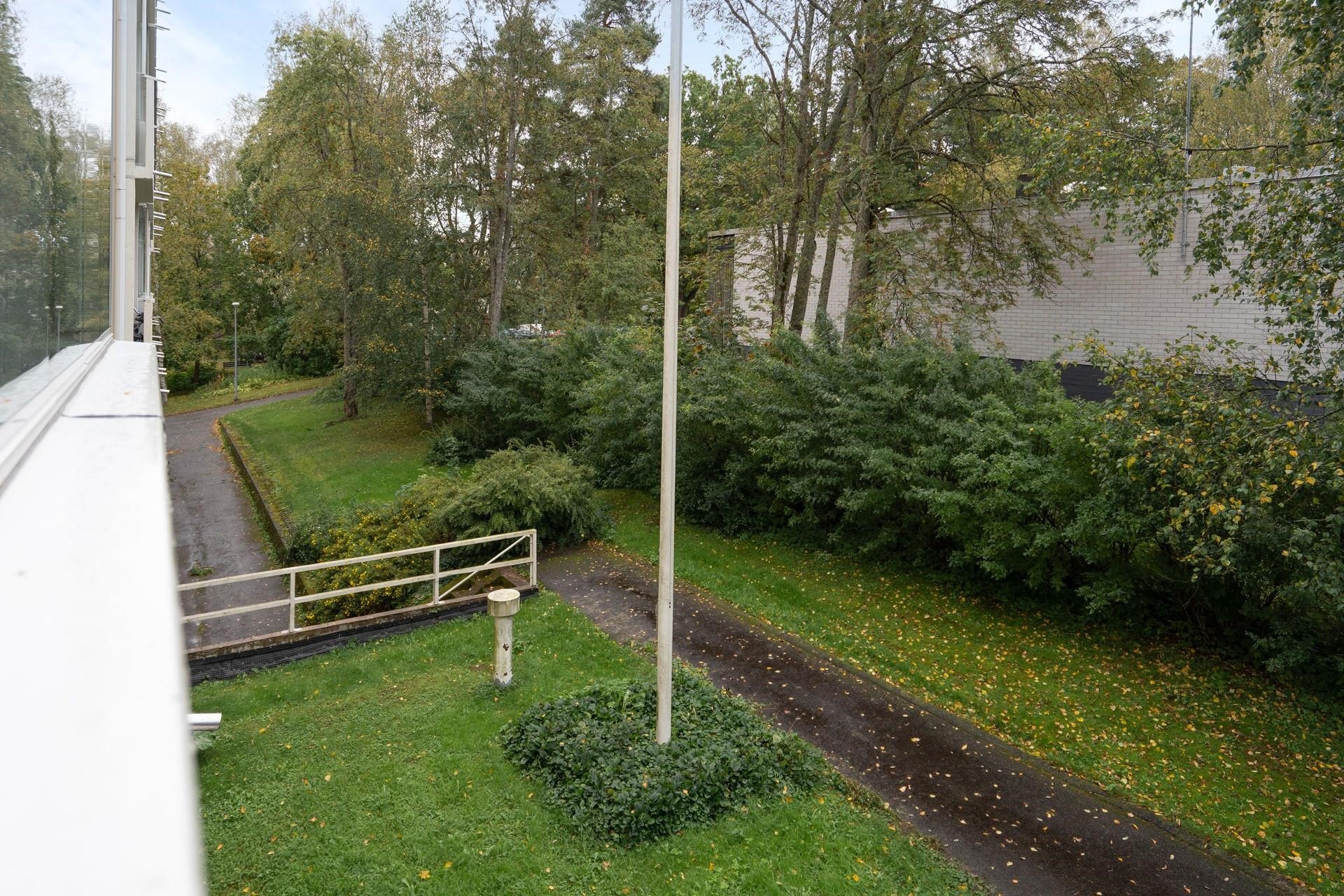 - Kahden makuuhuoneen ja olohuoneen ikkunoista näkymät takapihalle (etelään). Keittiön, yhden makuuhuoneen ja kylpyhuoneen ikkunoista näkymät Parkkipaikalle.