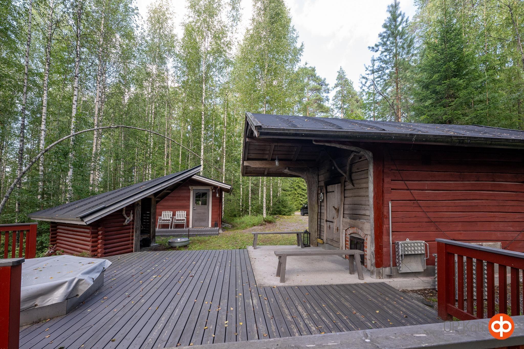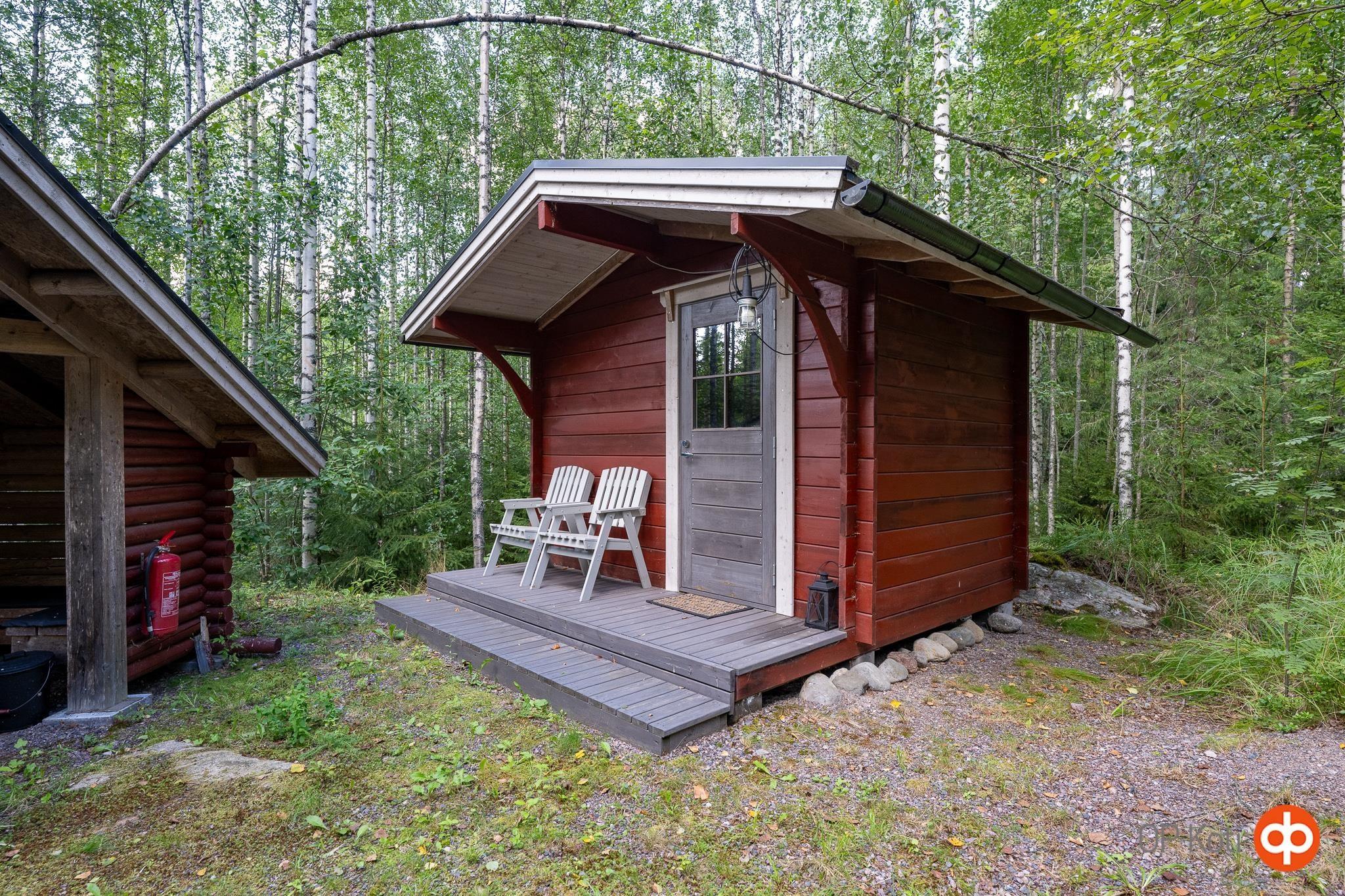 Kesäkallion puolella mm. savusauna, laavu, palju, aitta sekä uudehko tallirakennus sekä metsää luonnon antimineen ja polttopuuta.