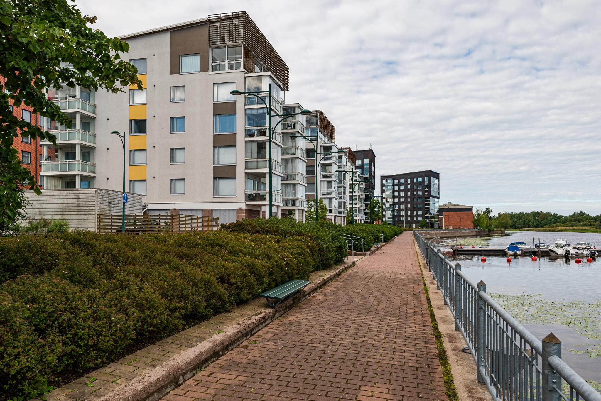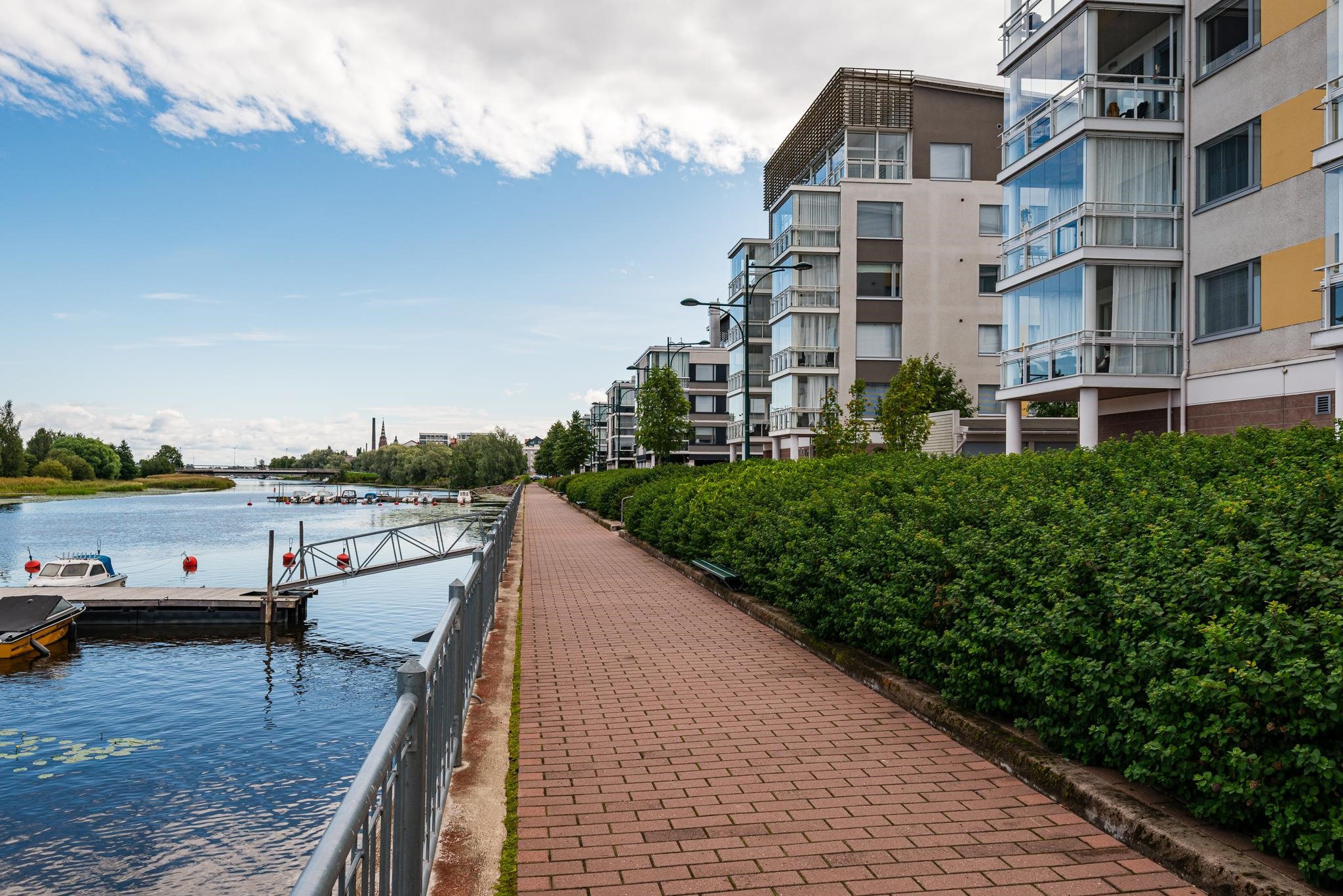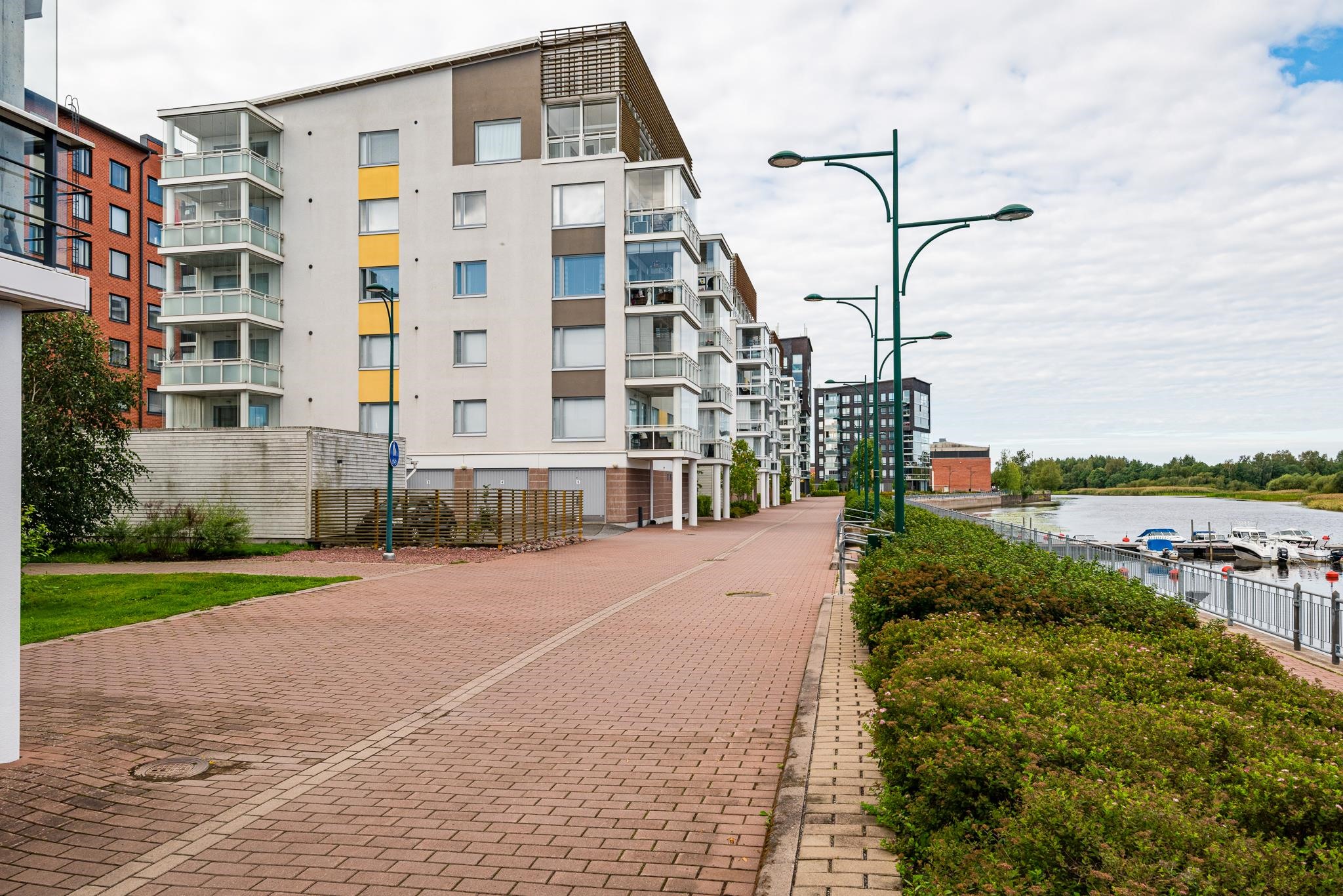 Vaalea, kaunis asunto jokirannan tuntumassa