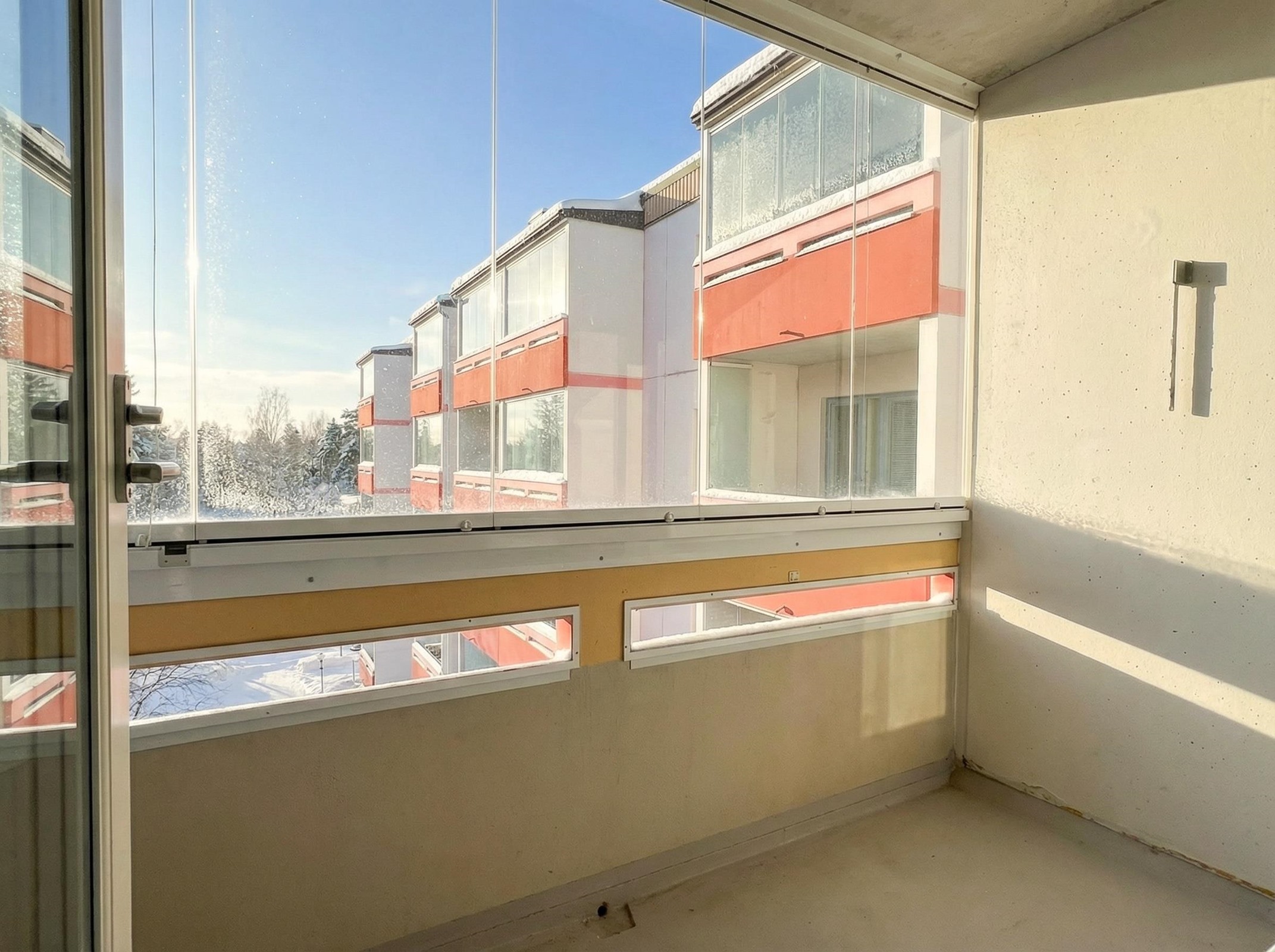 - Parveke etelään. Olohuoneen ja toisen makuuhuoneen ikkunat etelään Keittiö ja toisen makuuhuoneen ikkunat pohjoiseen.