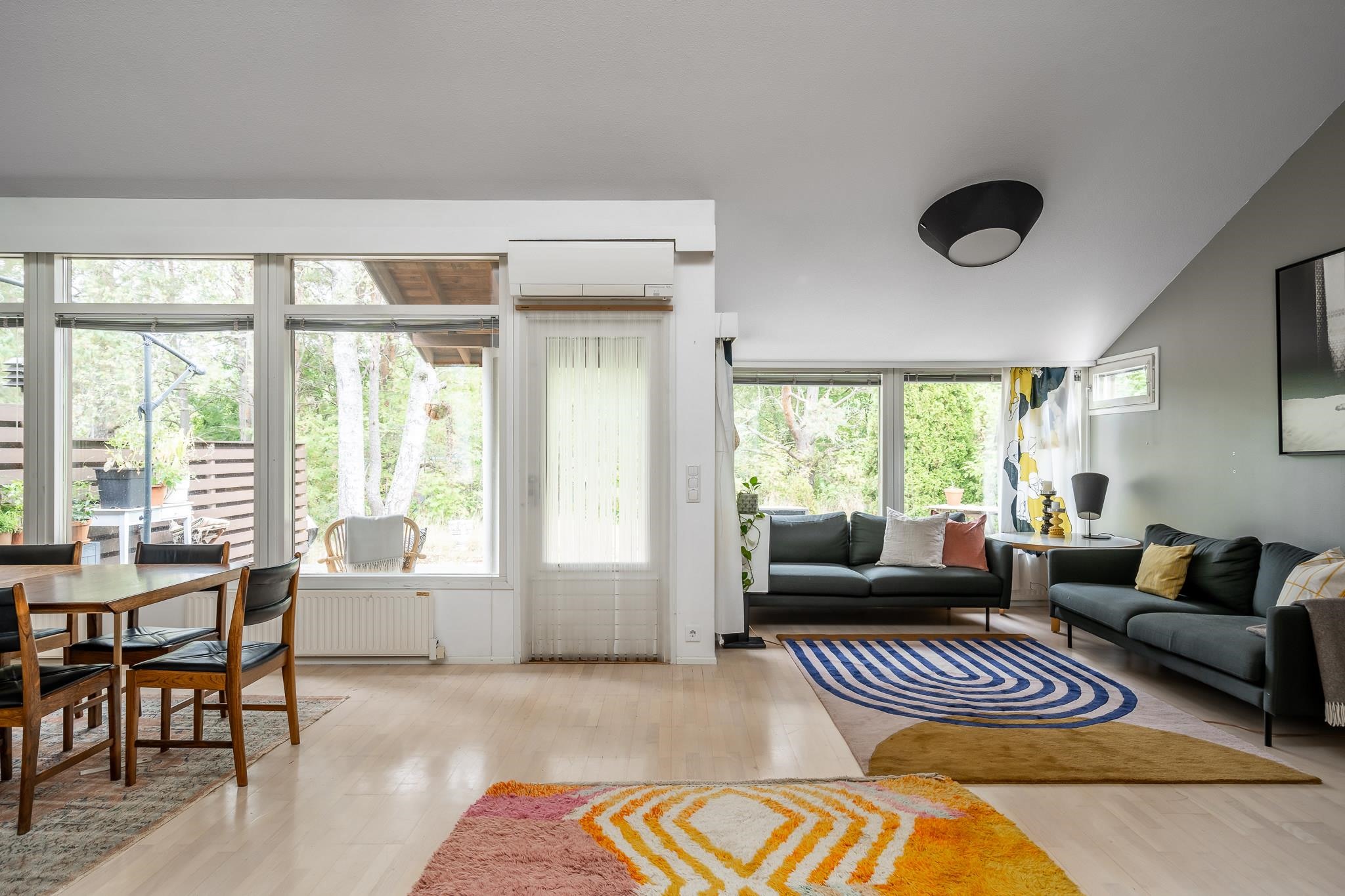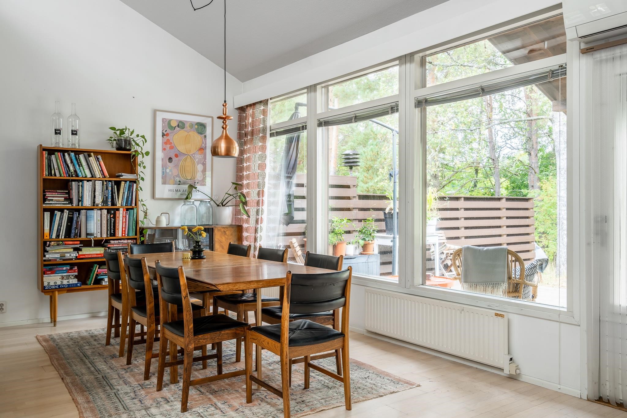 Tilava rivitalokoti rauhallisessa Pitkämäessä! Merikulmantien 188 m²:n rivitalohuoneisto tarjoaa väljyyttä ja monipuolisia tiloja kolmessa tasossa jonka suojaisa takapiha ja terassi tekevät asumisesta helppoa ja viihtyisää. Jo muutenkin hulppeiden neliöiden lisäksi on käytössäsi yläkerran aulatila, jota ei ole laskettu virallisiin asuinneliöihin, ja josta voit tehdä arkiolohuoneen tai vaikka joogahuoneen! Kodin sydän on keskikerroksen avara, korkea olohuone ja moderni keittiö. Keittiö on remontoitu 2012 ja varusteltu laadukkailla kodinkoneilla, kuten induktioliedellä, erillisuunilla ja viinikaapilla. Keskikerroksessa on myös kaksi makuuhuonetta, vaatehuone, wc ja ruokailutila, jossa kodin toinen takka. Alakerran takkahuone, saunaosasto, kodinhoitohuone ja askartelutila tarjoavat joustavat puitteet perheellesi ja hyvät mahdollisuudet etätyöhön. Oma sauna viimeistelee kokonaisuuden. Lisäksi autotalli ja kylmä varasto lisäävät entisestään asunnon käytännöllisyyttä. Pitkämäessä asut rauhallisella sijainnilla, mutta lähellä kaupungin palveluita. Koulut, päiväkodit ja lähikaupat löytyvät läheltä, ja Turun keskustahan on vain lyhyen ajomatkan päässä. Alueella on hyvät ulkoilumaastot ja toimivat liikenneyhteydet, jotka helpottavat arjen kulkemisia. Taloyhtiö on rakennettu 1989 ja sitä on hoidettu suunnitelmallisesti. Tontti on oma ja asunto-osakeyhtiön energialuokka on E2018. Tämä koti on vuokrattu tällä hetkellä, varaa oma esittelyaikasi: Kirsi Kivimäki, puh. 050 478 3158, kirsi.kivimaki@op.fi.
